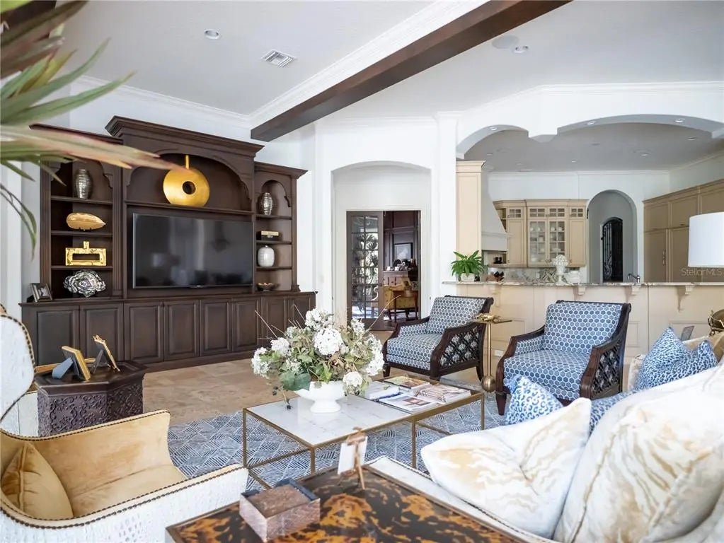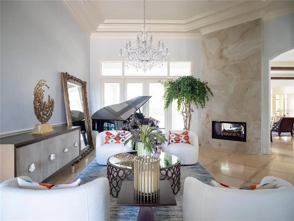 ACCEPTING BACKUP OFFERS*** MAJOR PRICE IMPROVEMENT | EXCEPTIONAL VALUE Now offered at a compelling new price, 15008 Pendio Drive represents a rare opportunity to own nearly 11,000 square feet of custom estate living in Bella Collina—paired with seller-provided credits equal to one year of HOA fees and one year of Sports Membership fees at closing. Set on a 1.49-acre homesite, this grand yet livable residence delivers scale, flexibility, and timeless craftsmanship that would be extraordinarily costly to replicate today. Designed for both everyday comfort and elevated entertaining, the home offers six private bedroom suites, including two true primary suites—one on each level—ideal for multigenerational living or long-term guests. A third, hotel-style suite includes its own sitting area, creating exceptional versatility. Architectural details throughout include tray and coffered ceilings, double crown molding, hardwood and marble flooring, dramatic onyx accents, fireplaces, and custom millwork, creating a refined backdrop that feels substantial yet warm. The layout flows effortlessly, with expansive gathering spaces balanced by private retreats. The main-level primary suite is a destination of its own, featuring a rotunda-style vestibule, fireplace, sitting area, morning bar, gym or flex space, and a spa-inspired bath with circular jetted tub and dual onyx vanities. Upstairs, a second primary suite anchors the private upper level, joined by additional bedrooms, an executive office, bonus space, and a striking bridge-style architectural element. An elevator shaft was thoughtfully included in the original design, allowing for future installation if desired. At the heart of the home, the chef’s kitchen is fully equipped for serious cooking and entertaining with Wolf and Sub-Zero appliances, including a 6-burner gas range with grill and double ovens, two full-size refrigerators, freezer drawers, dual Miele dishwashers, wine refrigeration, custom cabinetry, and a butler’s pantry with beverage fridge. Indoor living opens seamlessly to the outdoors, where pocketing sliders lead to a covered summer kitchen, fire pit lounge, and heated saltwater pool with dual spas, all surrounded by mature landscaping and enhanced privacy. The expansive lot offers room to further customize—whether additional outdoor living, recreation space, or a future structure. Significant updates and improvements include: 2014 major renovation and addition 2024 updates: four HVAC systems, pool equipment, lighting, landscape lighting, interior and exterior paint 2025 updates: new alarm system and refreshed landscaping front and rear Located just moments from the Club at Bella Collina, residents enjoy access to championship golf, resort-style amenities, dining, spa services, fitness programming, tennis, pickleball, and a vibrant year-round social calendar. With its new pricing, flexible layout, and closing cost incentives, this estate presents one of the most compelling values currently available in Bella Collina. Schedule your private tour today and experience the scale, quality, and opportunity this home offers.