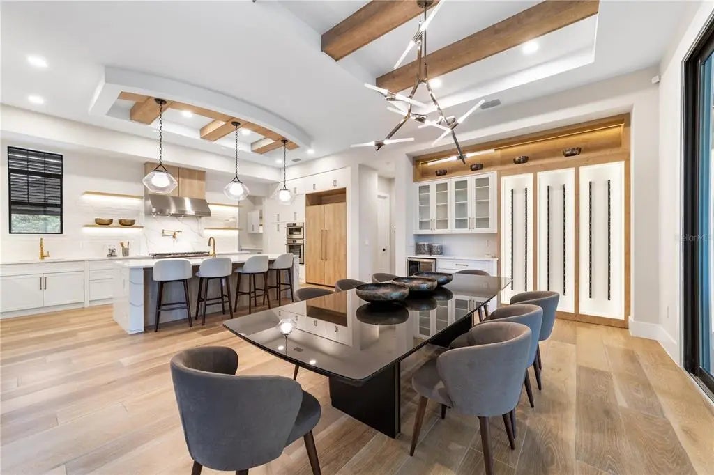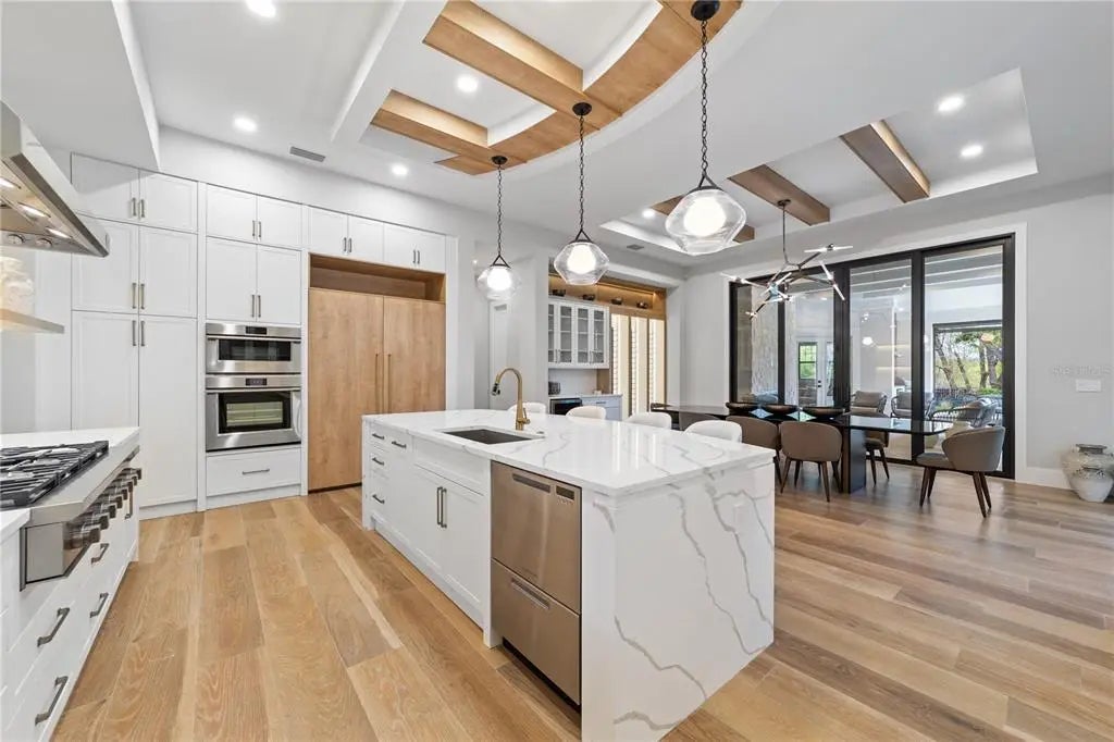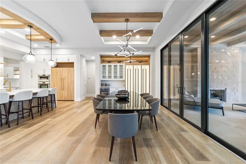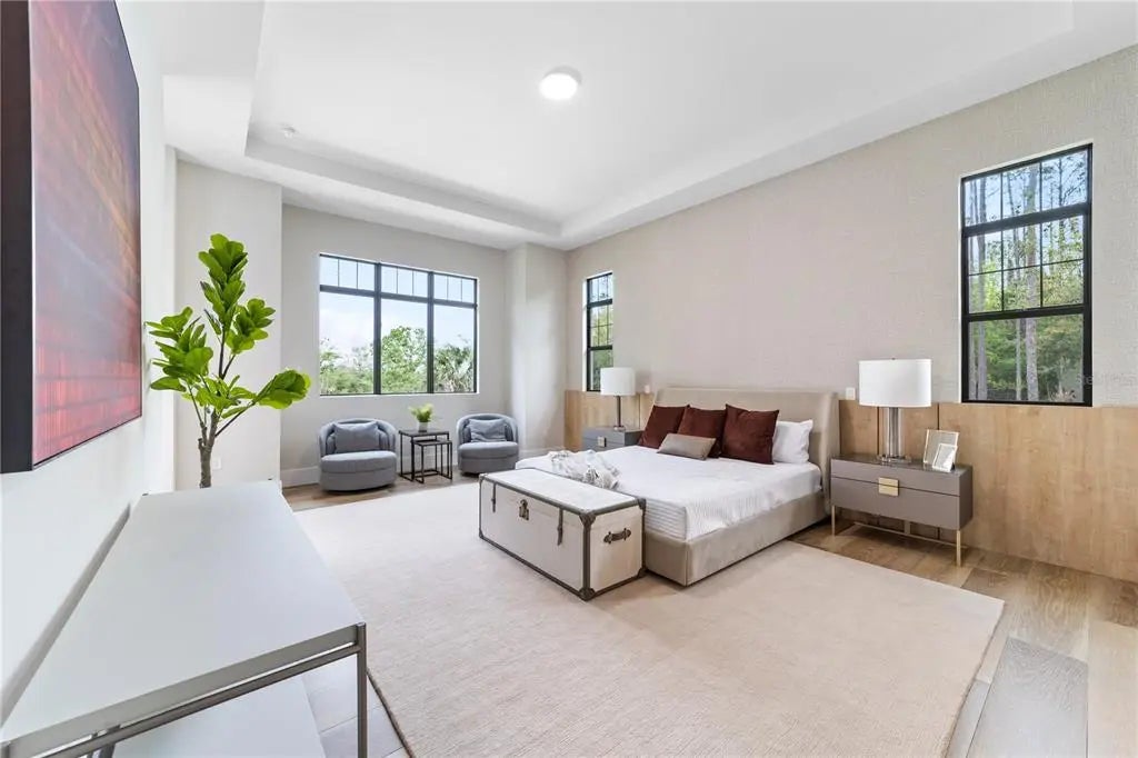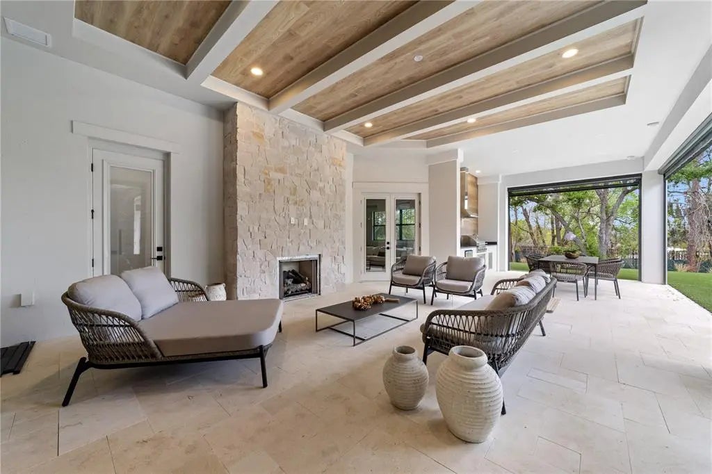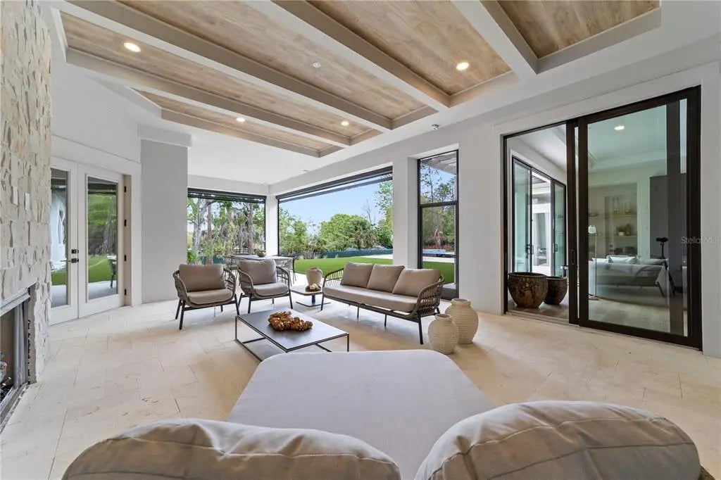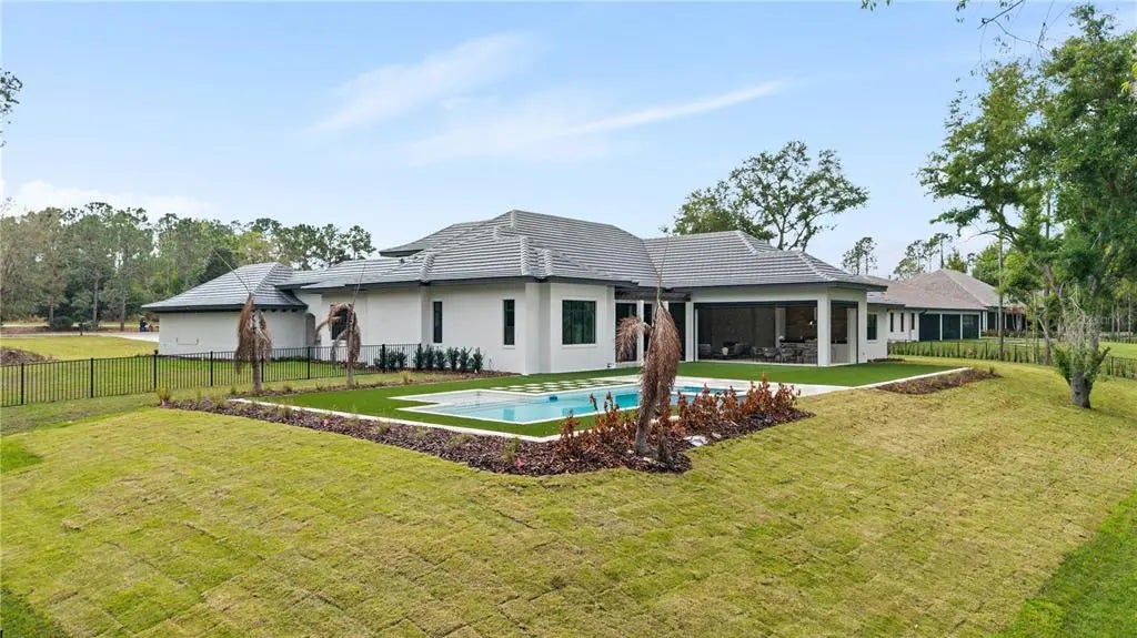 Discover the Savannah, a brand-new single-story residence by Davila Homes, nearing completion in the private gated community of Bella Collina. Designed with an open, flowing layout, this home blends timeless elegance with modern comfort. The expansive great room connects seamlessly to the chef’s kitchen and dining areas, highlighted by a dramatic tray ceiling in the living room and a drop-down soffit with beams that define the kitchen space with architectural character. The private owner’s suite showcases dual walk-in closets and a spa-inspired bath, both accented with elegant tray ceiling details. Secondary bedrooms each include en-suite baths and generous storage, creating a thoughtful layout for family and guests. Step outside to a private backyard oasis where a tray-ceiling lanai with wood beams frames the sparkling pool and spa. Additional features include a custom fire pit, low-maintenance artificial turf, and Myra stepping stones that connect the entertaining spaces with beauty and ease. Set within Bella Collina’s iconic Tuscan-inspired hillsides, residents enjoy world-class amenities including the Sir Nick Faldo–designed championship golf course, resort-style pool, fitness center, tennis, pickleball, dining, and a 75,000-square-foot clubhouse overlooking Lake Siena. With designer finishes already selected and construction nearing completion, the Savannah model is nearly ready to welcome you home. Schedule your private tour today and experience luxury living in Bella Collina.