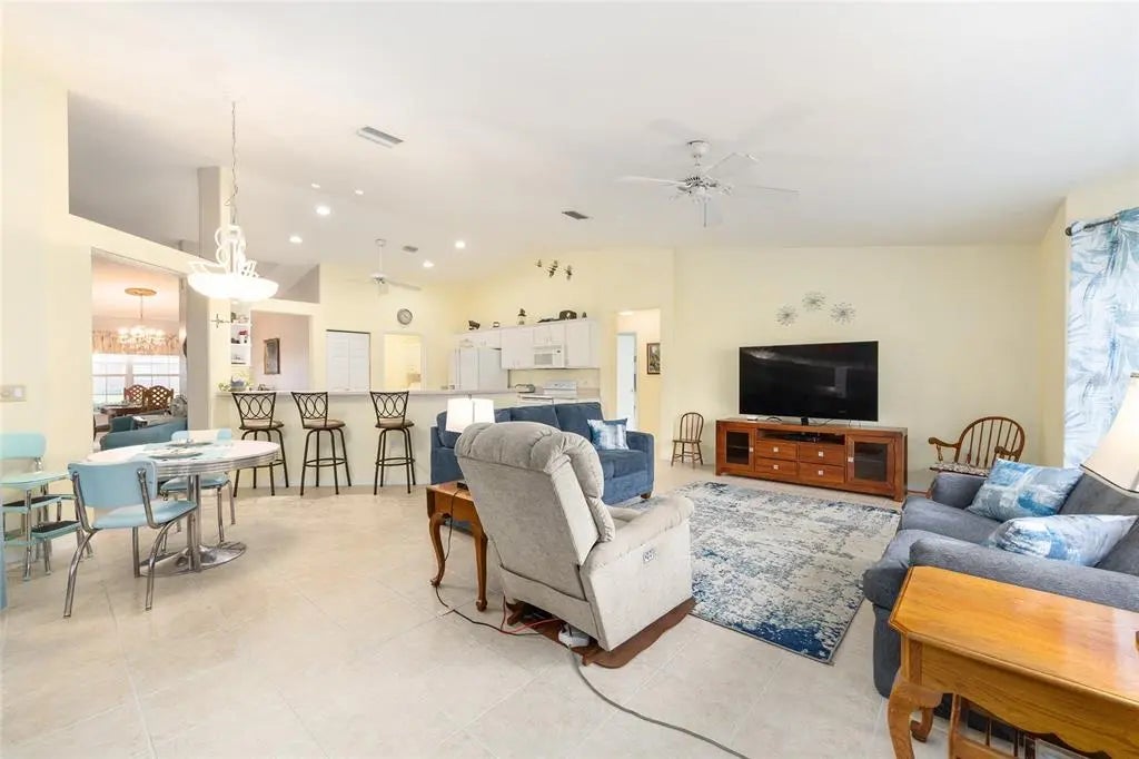Here is a fantastic opportunity for a new owner! This spacious Providence Model offers over 2,000 sq. ft. of comfortable living space, featuring a 3-bedroom, 2-bath split floor plan for added privacy. The primary ensuite includes dual vanities, while the large kitchen opens seamlessly to the family room—perfect for everyday living. You’ll also find a formal dining room and living room, ideal for entertaining. One of the highlights of this home is the 24' x 18' enclosed lanai, providing year-round enjoyment and direct access to a brick patio, perfect for grilling or relaxing at sunset. The extended 26-foot garage with privacy screen offers ample room for two cars, a golf cart, and a workshop. Major updates include: • New roof (2025) • New HVAC (2024) • New hot water heater (2025) No big-ticket expenses on the horizon! Located in a vibrant Del Webb community offering 36 holes of golf, 10 pickleball courts, tennis courts, 3 pools (including an indoor pool), a state-of-the-art fitness center, softball, bocce, and much more. With 70+ clubs and activities, you’ll enjoy an active and social lifestyle. Come see it today!