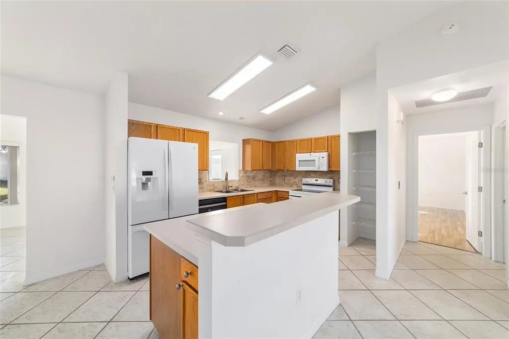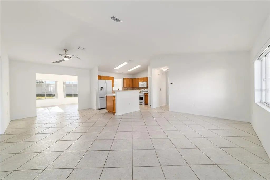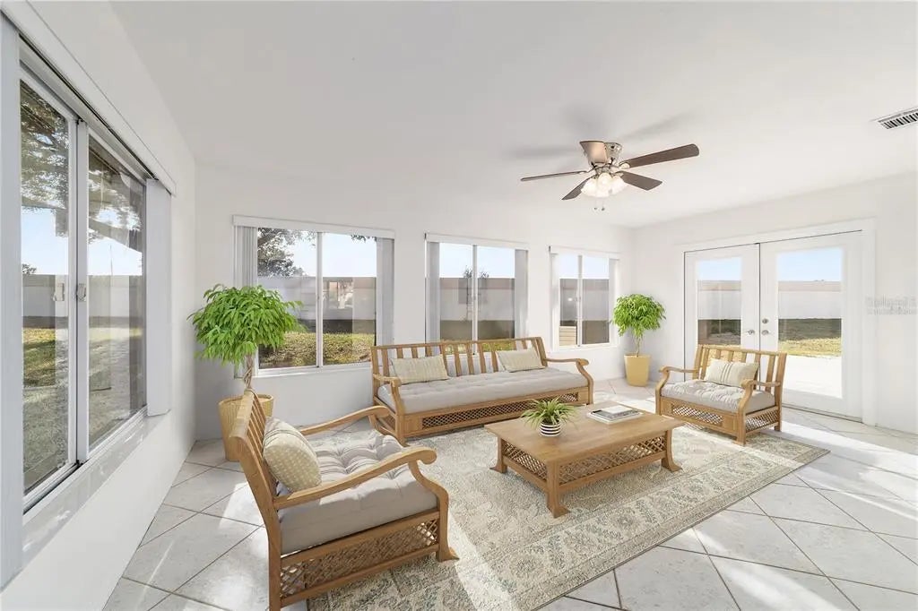 One or more photo(s) has been virtually staged. Discover exceptional value in this popular Chesapeake 2-bed/2-bath model featuring a bright, open floor plan and an expansive family room. Situated on a quiet cul-de-sac, this well-maintained home offers privacy, low-maintenance landscaping with attractive rock beds, and the added peace of mind of a whole-house Generac generator installed in 2020, vaulted ceilings and a split-bedroom layout create an inviting sense of space. The kitchen features an island with a breakfast counter, newer appliances, and flows seamlessly into both the formal dining and living rooms—ideal for everyday living and entertaining. No carpet anywhere—tile and laminate flooring run throughout the home for easy care and a clean, modern feel. The heated and cooled Florida room extends your living space year-round and leads to a generous 12' x 20' outdoor patio perfect for grilling, sunning, or simply relaxing. The ensuite primary bath includes a walk-in tub with jets and a shower. Laundry is conveniently located inside and equipped with a newer washer and dryer.This home is priced to sell—don’t miss your chance to see it today. Best of all, Solar Panels for reduced energy costs THAT ARE PAID FOR.. All photos showing furniture are virtual. NEW ROOF 2021. HVAC 2011