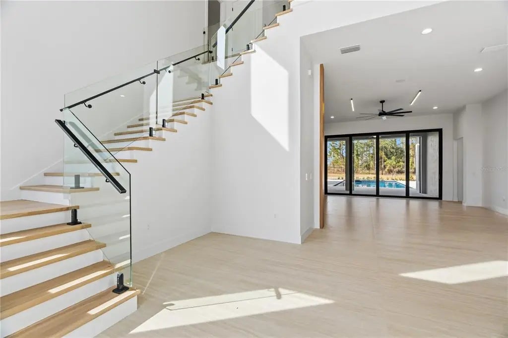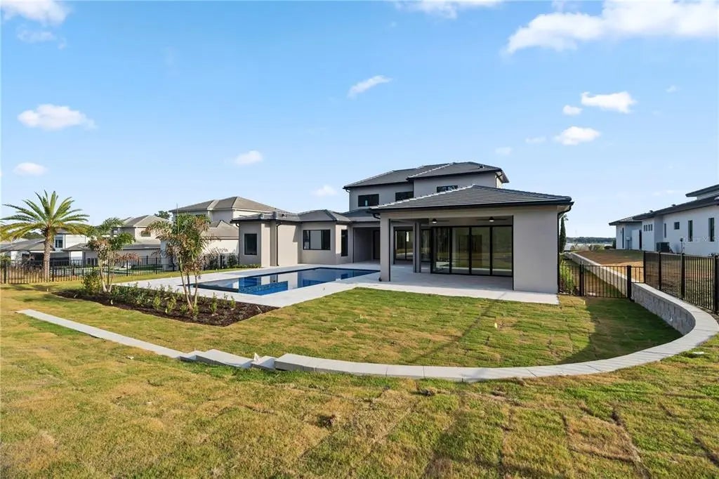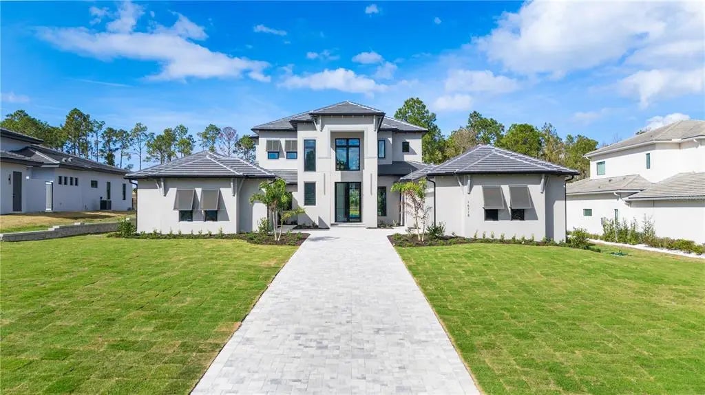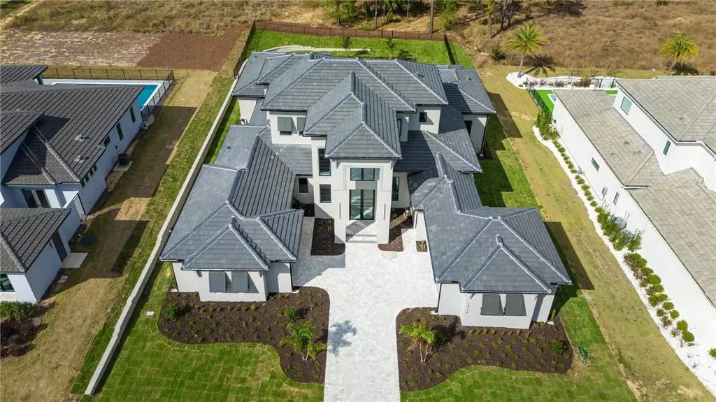 Move-In Ready * New Construction * this striking two-story custom residence on Lot 220 in Bella Collina by Delpupo Unique Homes delivers a bold architectural presence paired with thoughtful, modern livability. From the moment you enter, a dramatic two-story foyer sets the tone, anchored by a statement staircase featuring sleek glass-panel railings that draw the eye upward and flood the home with natural light. The main living level is designed for both everyday comfort and elevated entertaining. An expansive open floor plan connects the living room, dining space, and chef’s kitchen, where a generous island, abundant cabinetry, and seamless flow create the heart of the home. Oversized 10-foot sliding glass doors - including mitered sliders in the game room - open wide to the outdoor living area, blurring the line between indoors and out. The first-floor primary suite is a true retreat, offering privacy and flexibility with an adjoining bonus room ideal for a home gym, study, or quiet lounge. Also on the main level is a second bedroom, thoughtfully positioned with a Jack-and-Jill bath shared with a versatile third bedroom or office. A large, well-appointed laundry room adds convenience with extensive cabinetry, a utility sink, and a secondary refrigerator. Upstairs, three additional bedroom suites each feature their own en-suite baths and walk-in closets, complemented by a spacious loft that provides the perfect setting for a media lounge or additional gathering space. Outdoor living is nothing short of exceptional. The backyard showcases a resort-style pool and spa, a fully equipped summer kitchen, and motorized screens enclosing the entire lanai - creating a year-round extension of the home. Smart home features and multi-room audio enhance comfort and functionality throughout select living spaces. Residents of Bella Collina enjoy a private, guard-gated lifestyle centered around a Sir Nick Faldo–designed championship golf course, a Tuscan-inspired clubhouse with fine and casual dining, a full-service spa, state-of-the-art fitness center, tennis and pickleball courts, and an active social calendar. Conveniently located just west of Orlando, Bella Collina offers the perfect balance of privacy, luxury, and accessibility. Developer will defer the $40,000 Sports Membership deposit at closing, offering immediate value and enhanced access to the community’s premier amenities. This completed residence is ready for immediate move-in and an exceptional Bella Collina lifestyle.
