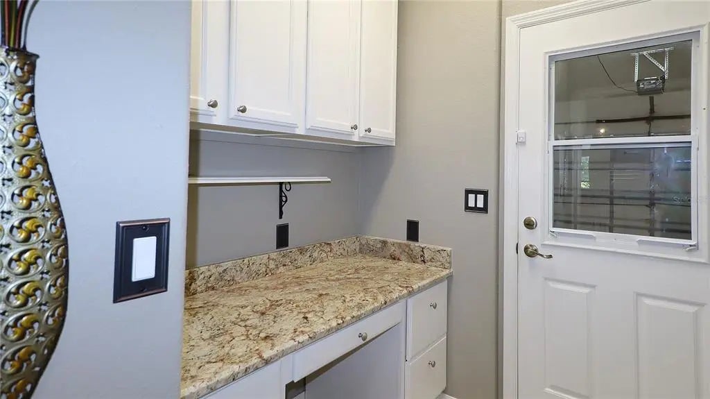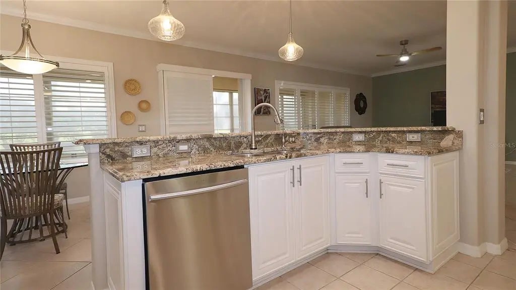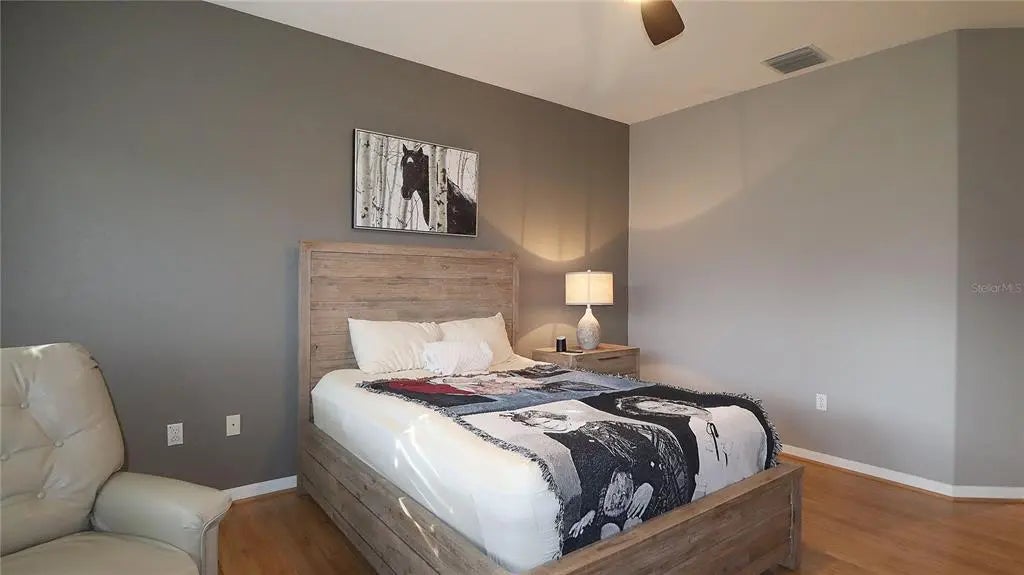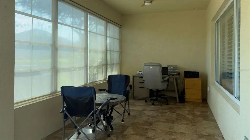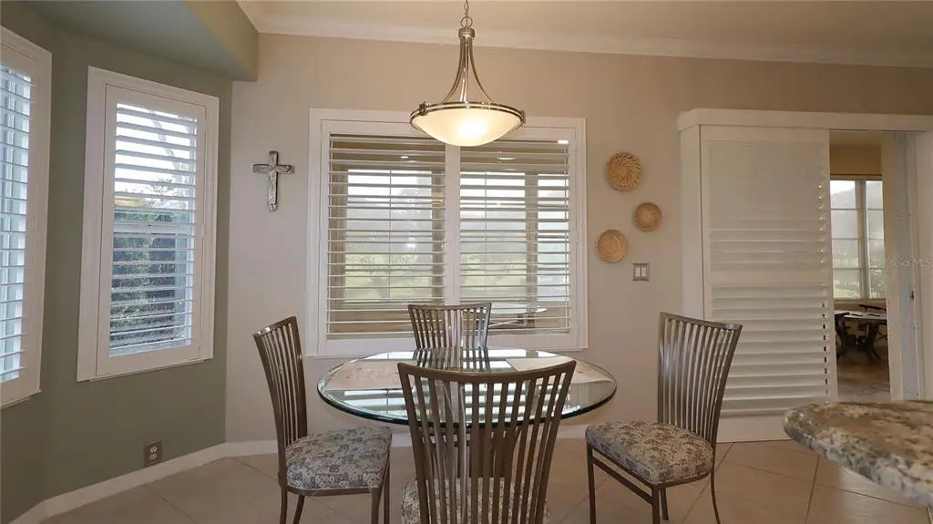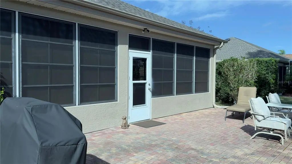 This home shows like a model. Change in plans and the sellers are needing to sell their forever home. Located in the gated 55+ Community of Del Webb's Spruce Creek Golf & Country Club in Summerfield, Florida with a park-like setting and close to The Villages. This gated community offers so much; (4) 9-hole golf courses, softball, pickleball, tennis, bocce, horseshoes, state-of-the art Fitness Center with indoor pool, restaurant and pro-shop. Two outside heated pools. Community Center w/meeting rooms and a large ballroom. Many clubs and activities to numerous to mention here. This immaculate home is not too big and not too small. Great curb appeal w/professional landscaping. Paver drive, walkway and patio. Designer glass leaded entry door w/phantom screen. Foyer has designer medallion on the floor and let's visitors know this is no ordinary home. Home has tile on the diagonal & laminate flooring throughout, no carpeting. All lighting and fans have been replaced recently. Island shutters throughout! Open floor plan. Kitchen features breakfast bar w/pendent lights, closet pantry, granite counter tops, newer stainless steel appliances, a solar tube for natural lighting and stacked cabinetry. Nook has bay windows overlooking lush landscaping and the lanai/patio area. Florida lifestyle at your finger tips. The enclosed climate controlled lanai offers another 340 square feet of living area not reflected in the property appraiser's website. The floor has tile and roll-up blinds on the windows. Adjacent is a paver patio ((14'x30') with a great eastern exposure to enjoy the weather and grillin' & chillin'. Privacy is at a premium here with a planting island equipped with electrical hook-ups for lighting or a waterfall feature. Create your own Zen Garden. The living area also overlooks the backyard and is open to the kitchen and nook. It also has room for a formal dining area if you so desire. Bonus room between garage entry and the kitchen and is used for a home office. Primary suite has laminate flooring and also feature the bay window like the breakfast nook. Large walk-in closet. Primary bath has water closet, large shower and makeup station included in the sink and vanity. Guest bedroom/bath very ample for visiting guests. The oversized garage (the mancave) is perfect for golf cart parking and a workshop area (9'x21'). Features keyless entry for both doors, pull-down stairs and attic storage, laundry, window, gas water heater and remote screen. Architectural shingle (2022), HVAC (2011), water heater (2019), exterior paint (2018). Private irrigation well saving you money monthly. This home is located in the quiet area of Torrey Pines and close to the fitness center and Peninsula Park.