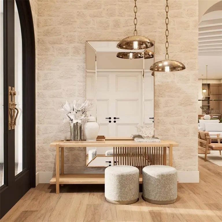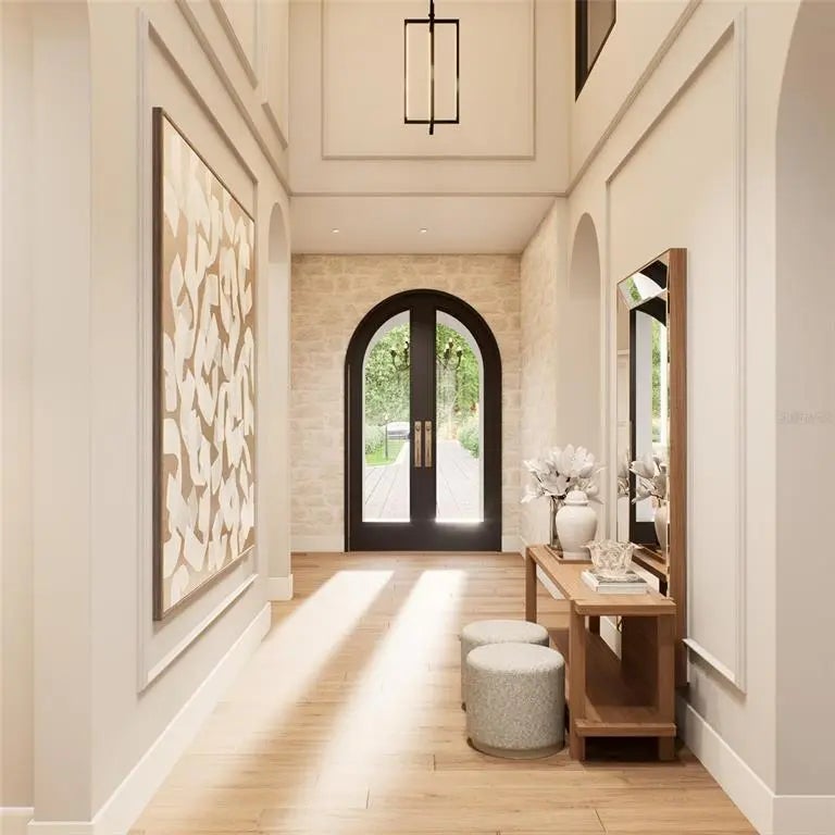 Under Construction. Introducing an exceptional J.Drewes Signature Model Home within the guard-gated community of Bella Collina. This remarkable residence reflects architectural excellence, refined craftsmanship, and a thoughtfully curated lifestyle designed for comfort, beauty, and everyday enjoyment. The home showcases expansive indoor and outdoor living spaces, seamlessly blending elegance and livability throughout. Upon entry, soaring ceilings and a dramatic open-concept Great Room create an immediate sense of arrival, where the kitchen, dining, and living areas flow effortlessly together - ideal for both relaxed daily living and elevated entertaining. Outdoor living is designed as a true extension of the home, offering a resort-inspired setting for year-round enjoyment. Generous covered spaces and thoughtfully designed gathering areas invite relaxed evenings and memorable entertaining, all within a private, landscaped environment. A detached casita adds exceptional versatility, offering a private retreat ideal for guests, extended family, or flexible use. This unique feature enhances both lifestyle options and long-term value. The residence features custom-designed furnishings curated exclusively for this property. Every detail has been thoughtfully selected to reflect timeless design, elevated finishes, and contemporary luxury. A furnished purchase option is available, allowing for a turnkey experience. Additionally, a leaseback opportunity may be offered, providing potential income while the home continues to serve as a showcase model. Located within Bella Collina, residents enjoy access to championship golf, scenic lake views, and world-class amenities in a setting that feels like a private resort. This home is a signature expression of design, lifestyle, and distinction. Developer will Defer the $40,000 Sports Membership Deposit at Closing.