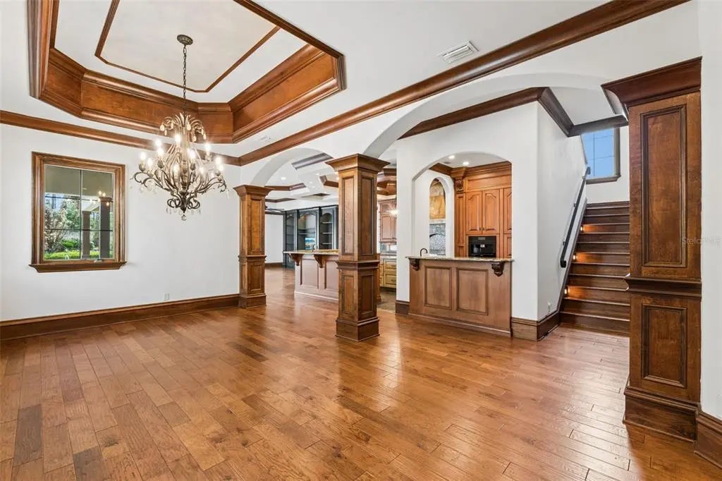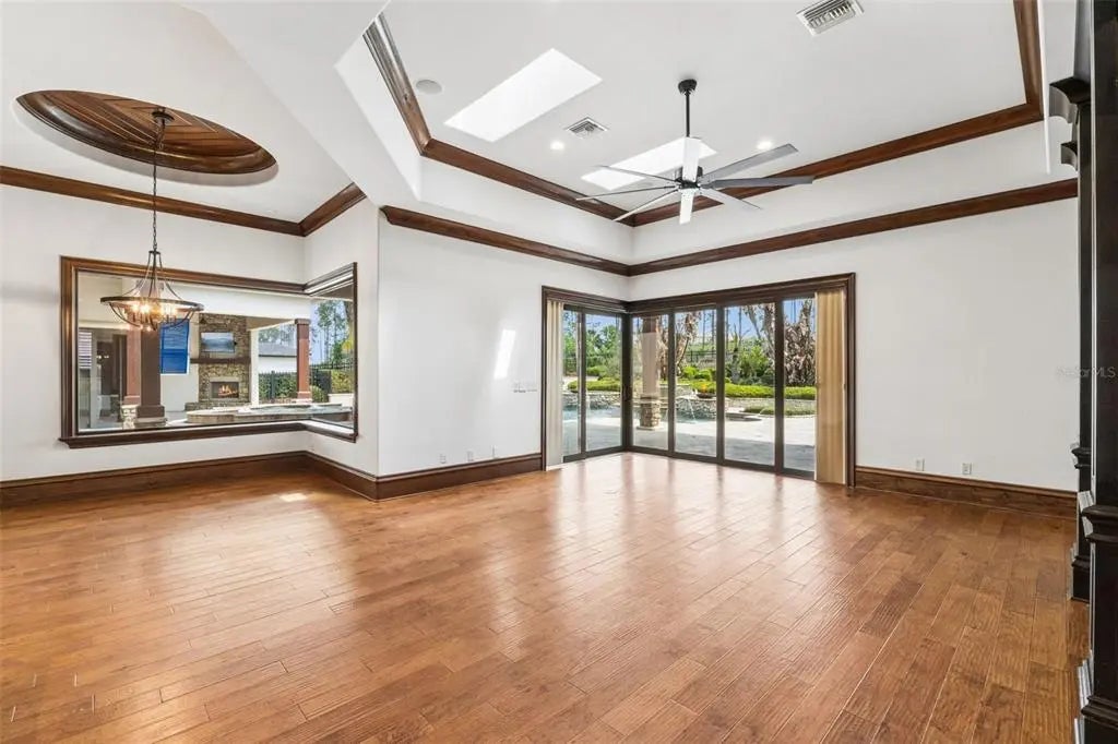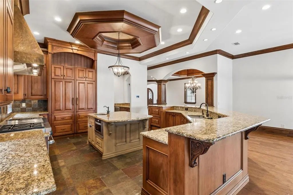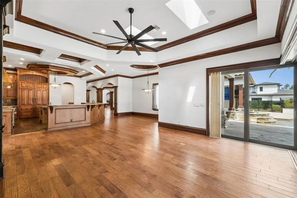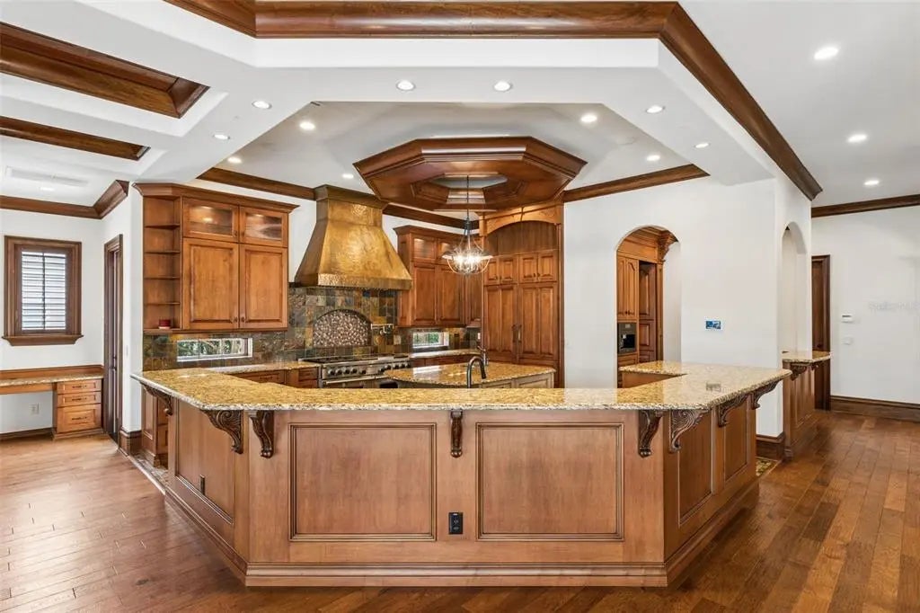- Built-in Features, Cathedral Ceiling(s), Ceiling Fan(s), Central Vacuum, Coffered Ceiling(s), Crown Molding, Eating Space In Kitchen, Elevator, High Ceilings, Kitchen/Family Room Combo, Open Floorplan, PrimaryBedroom Upstairs, Skylight(s), Smart Home, Solid Wood Cabinets, Stone Counters, Tray Ceiling(s), Vaulted Ceiling(s), Walk-In Closet(s), Wet Bar