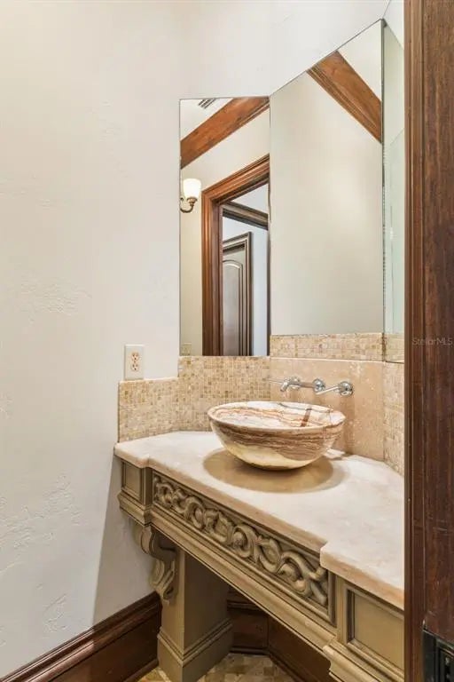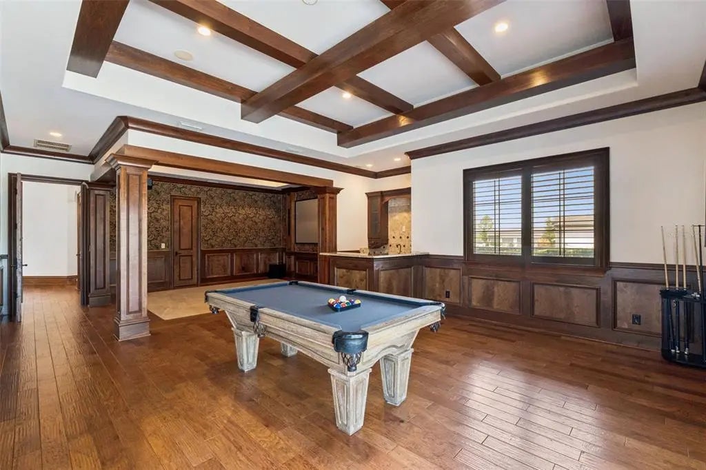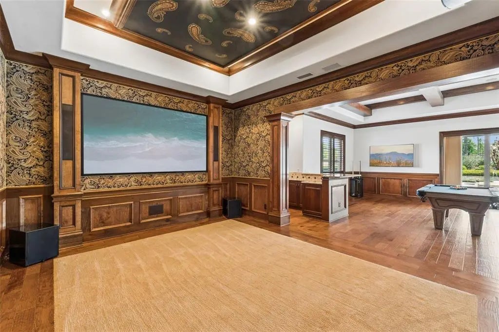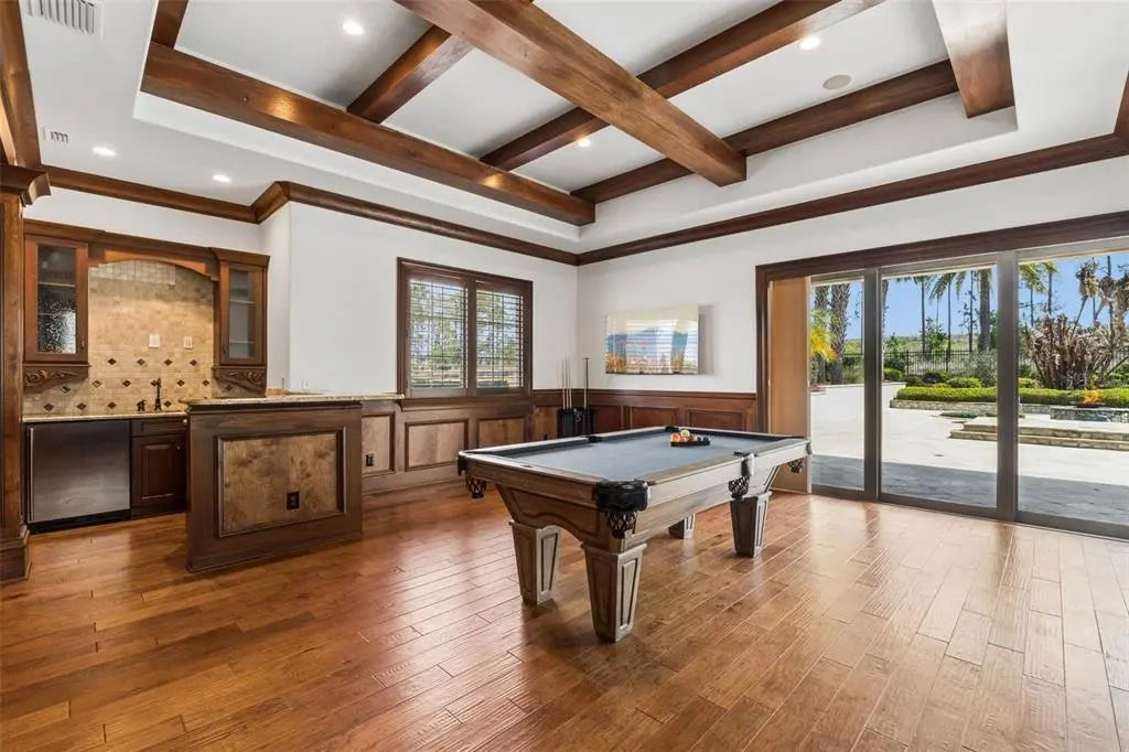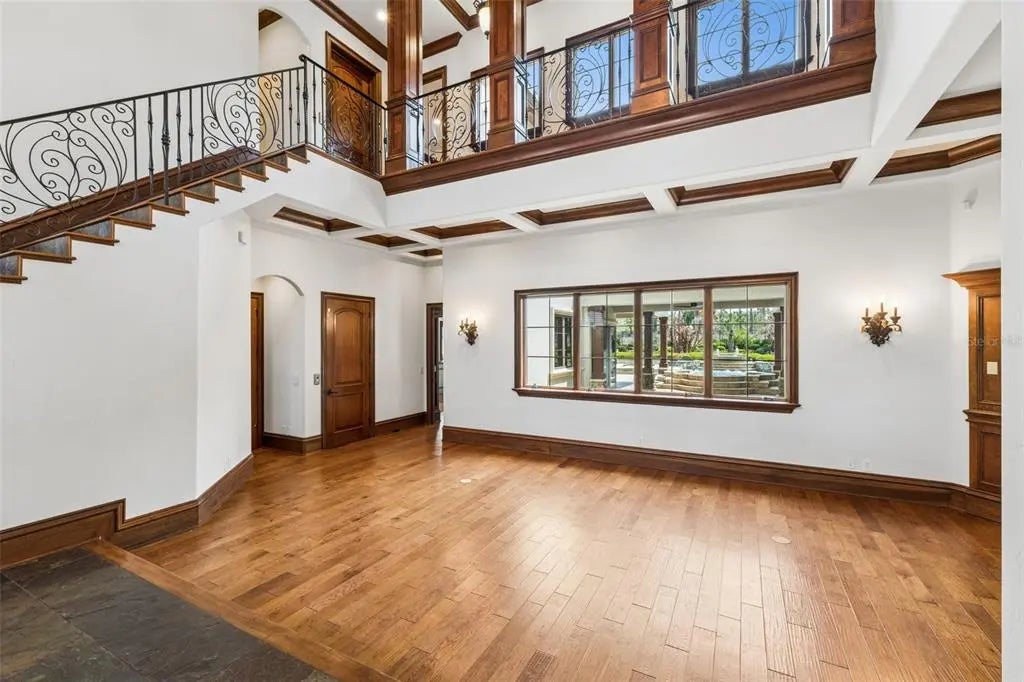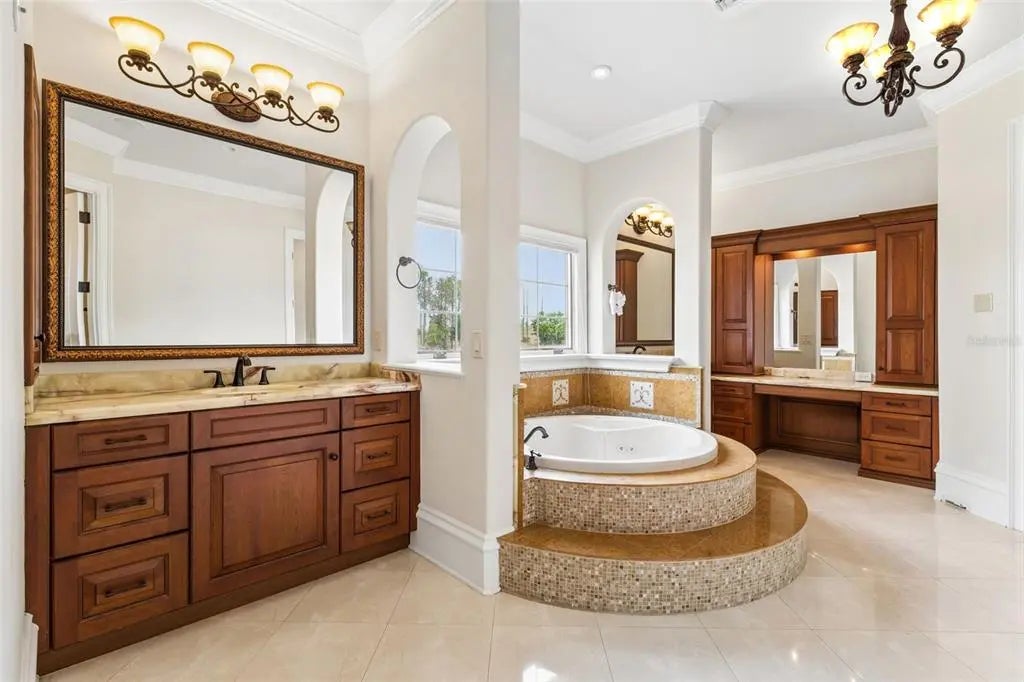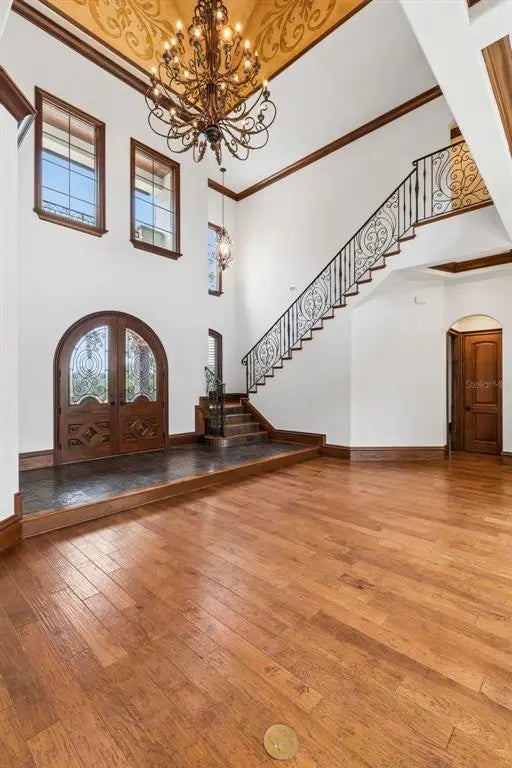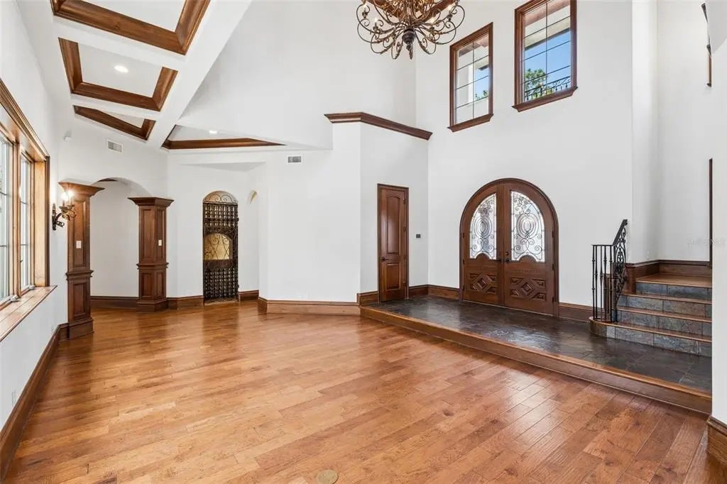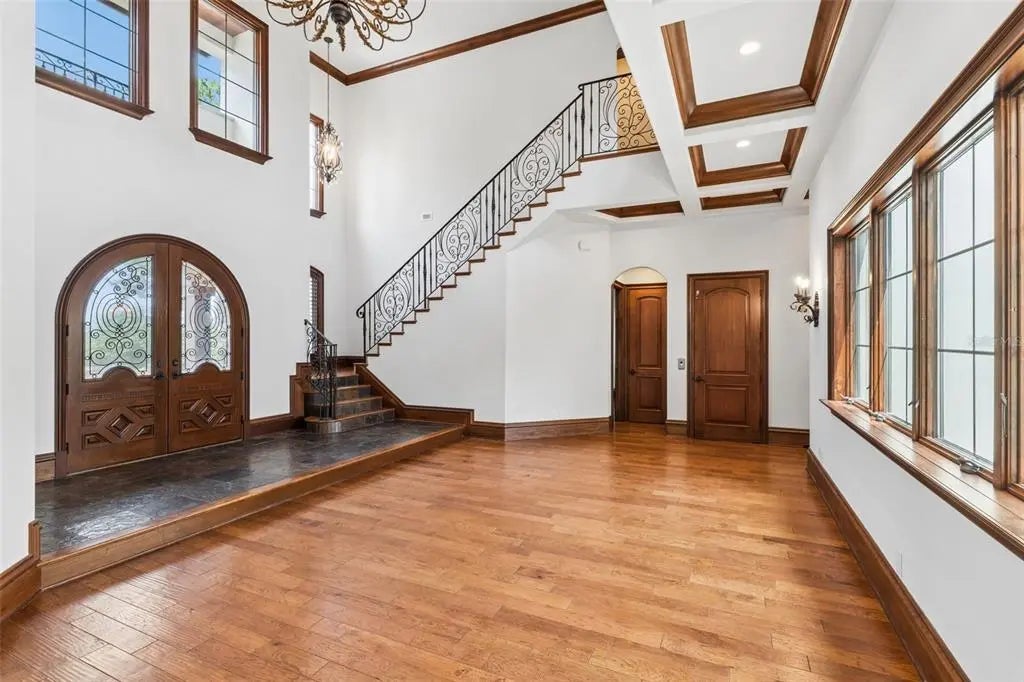Welcome to this extraordinary custom estate in Bella Collina, Central Florida’s premier private, guard-gated golf community. Perfectly positioned on an expansive homesite framed by mature trees and lush landscaping, this grand residence blends timeless architecture with modern luxury and exceptional privacy. From the moment you arrive, the impressive stone elevation and stately presence set the tone for what awaits inside. Ornate double doors open to a dramatic two-story atrium, introducing oak plank-style flooring throughout the main level and refined architectural details including custom oak panels, pillars, and designer millwork. The expansive chef’s kitchen is a true showpiece, featuring a six-burner Wolf range, dual Sub-Zero refrigerator/freezers, prep bar, hidden butler’s pantry, and adjoining laundry room (the first of two). The kitchen flows seamlessly into the generous living area, where 90-degree mitered sliding glass doors and a massive picture window frame breathtaking views of one of the finest resort-style pool environments in the community. The first floor also offers a guest suite and a fully equipped entertainment/media room with wet bar and direct access to the pool deck—ideal for hosting gatherings of any scale. A full-home Crestron automation system enhances convenience, comfort, and control throughout. Upstairs, accessible by a secondary staircase off the dining area (and elevator service), you’ll find a versatile flex room, private office, two additional guest bedrooms, a second laundry room, and the secluded owner’s retreat. The primary suite is a true sanctuary, featuring exposed beams, tray ceiling detail, custom baseboards, private balcony overlooking the pool, and an expansive spa-inspired bath with separate water closets, spa tub, dual vanities, and custom oak closet systems. Outdoor living rivals the finest luxury resorts. The custom-designed pool showcases travertine pavers, multi-person spa, swim-up seating, sun shelf, and elegant fountain features. All pool equipment has just been completely replaced, offering peace of mind and enhanced efficiency for years to come. A large fire pit gathering space, fully equipped summer kitchen with custom hood, and a private courtyard with pergola, fireplace, and television create multiple venues for entertaining year-round. Additional highlights include: Elevator servicing multiple levels Two double garages with generous parking Above-garage apartment with full kitchen and bath featuring engineered wood flooring. Mature landscaping providing exceptional privacy Residents of Bella Collina enjoy a lifestyle unlike any other, with a Nick Faldo-designed championship golf course, resort-style pool, fitness center with complimentary classes, tennis and pickleball courts, full-service spa, and multiple dining venues - all just minutes from Montverde Academy and major highways. This is a rare opportunity to own a truly grand custom estate designed for luxurious everyday living and unforgettable entertaining. A private showing is highly recommended to fully appreciate everything this exceptional home provides. Seller will Defer $40,000 Sports Membership Deposit at Closing.