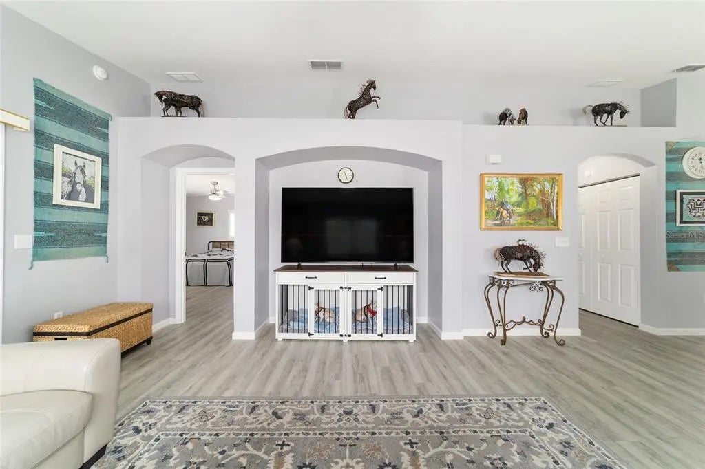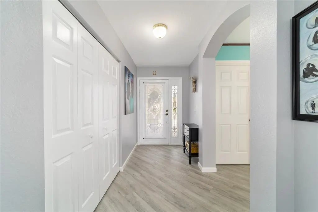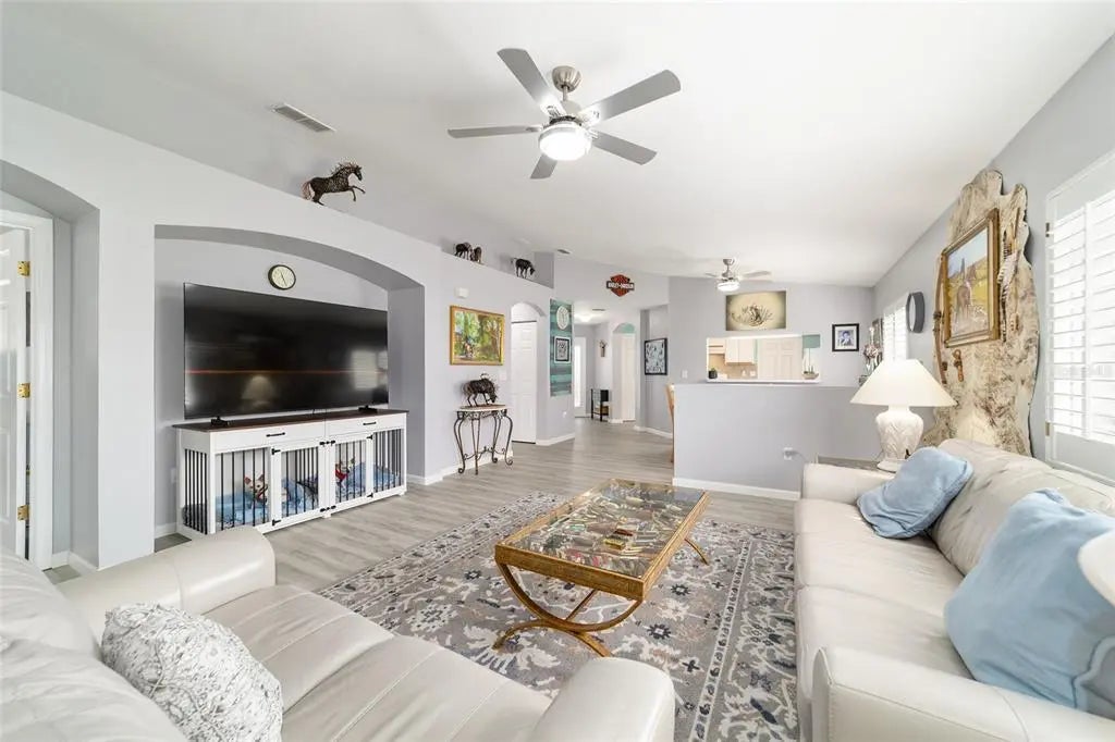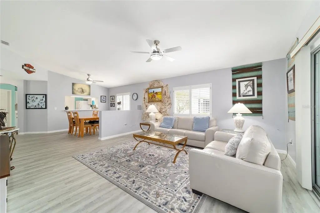 Enjoy the ease and convenience of villa living in Del Webb Spruce Creek, where maintenance-free lifestyle is more than a promise—it’s a reality. With one low fee covering irrigation, lawn care, shrub maintenance, and weed control, you’re free to travel and enjoy life without worry.This move-in ready Cypress II Villa is impeccably maintained and truly shines in every room. Featuring luxury vinyl flooring throughout, newer ceiling fans with lighting, plantation shutters, and new window screens, the pride of ownership is evident the moment you step inside. Enter through the leaded glass front door and immediately appreciate the open-concept design, enhanced by vaulted ceilings and an abundance of natural light. The home offers a desirable split layout, complete with a spacious primary suite featuring plantation shutters, a large walk-in closet, and an ensuite bath with a walk-in shower. Additional highlights include a full 2-car garage, inside laundry room, and an enclosed lanai—perfect for relaxing year-round. Major updates provide peace of mind, including: Roof (2017) HVAC (2025) Hot Water Heater (2025) Vinyl Windows (2025) Toilets (2014) This meticulously cared-for home is the total package—style, comfort, and low-maintenance living. Don’t miss your opportunity—schedule your showing today!
