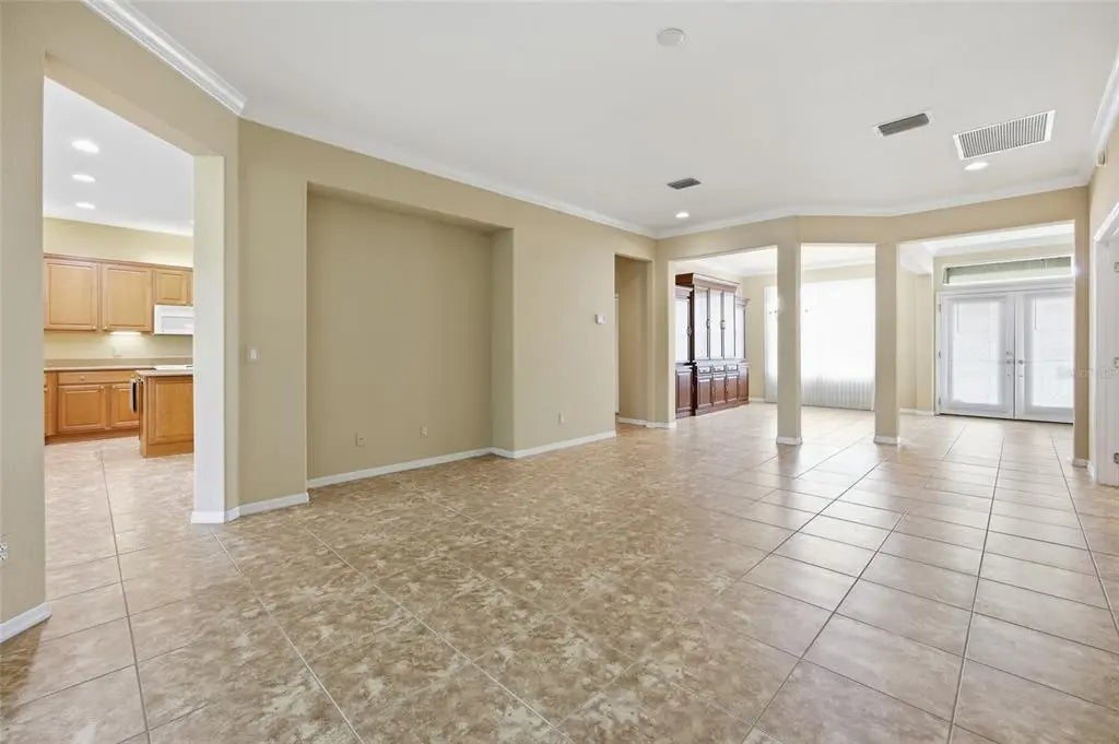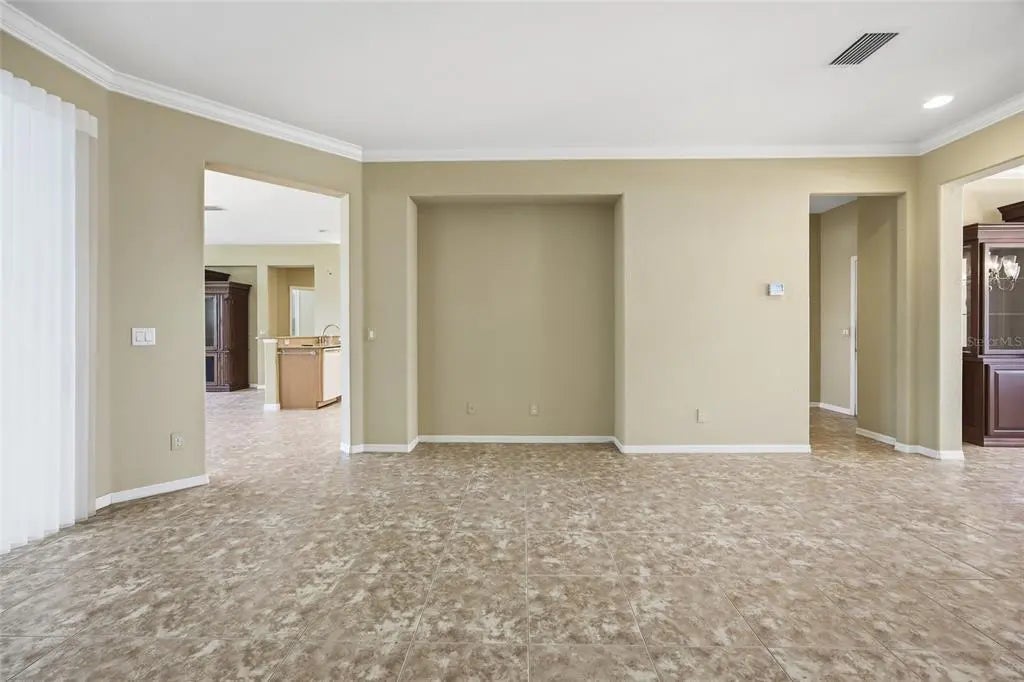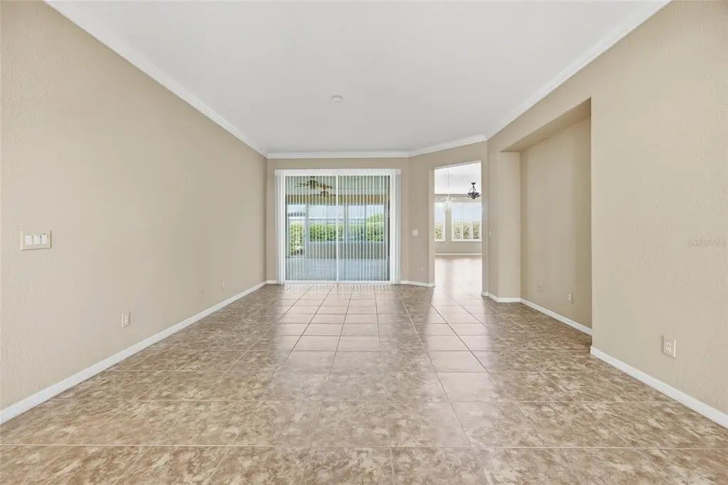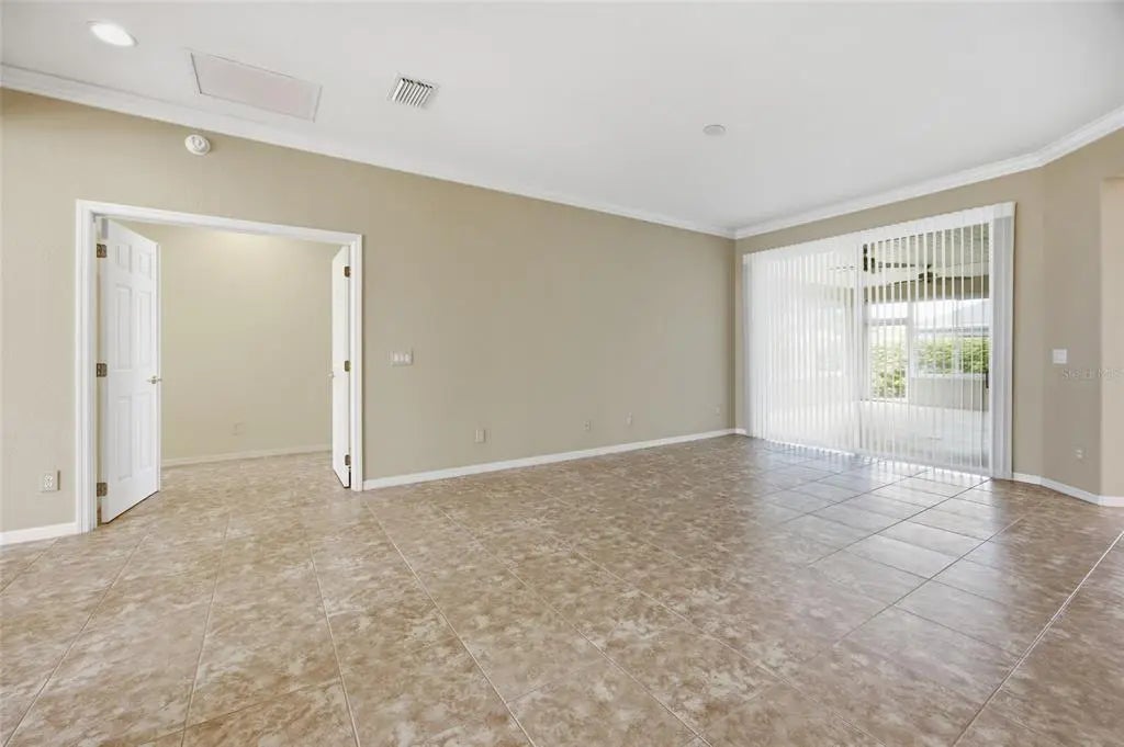 One or more photo(s) has been virtually staged. Located in the desirable Echo Glen area of the 55+ community of Del Webb Spruce Creek Golf & Country Club, this well-maintained 3-bedroom, 2-bath home sits on a corner lot and offers a spacious and functional split floor plan designed for both comfort and entertaining. The home features two separate living areas, including a formal living room and a family room, providing flexible space for everyday living and hosting guests. A formal dining room welcomes you just off the front entry and is accented with crown molding, adding a touch of elegance. The open-concept kitchen is centrally located and equipped with a breakfast bar, coffee bar, and center island, offering ample space for meal prep and gathering. The layout flows seamlessly into the main living areas, making it ideal for entertaining. The primary suite features a vaulted ceiling and carpeted flooring, creating a comfortable retreat. The primary bathroom includes tile flooring, dual vanities, a walk-in shower, and a separate soaking tub. On the opposite side of the home, you’ll find two guest bedrooms and a second bathroom, with convenient access from one of the bedrooms, making it ideal for guests or extended stays. A dedicated den with French doors offers additional flexible space, complete with wood flooring, built-in desk, and shelving—perfect for a home office or hobby room. Enjoy Florida living year-round in the large screened lanai with sliding windows, providing a comfortable outdoor space to relax or entertain. The home also features a 2-car garage with an additional golf cart garage, offering plenty of space for storage, hobbies, and the active lifestyle this community is known for. Major update includes a NEW ROOF installed in 2023, providing added peace of mind for years to come. This home offers the perfect blend of space, functionality, and lifestyle within one of the area’s premier active adult communities.