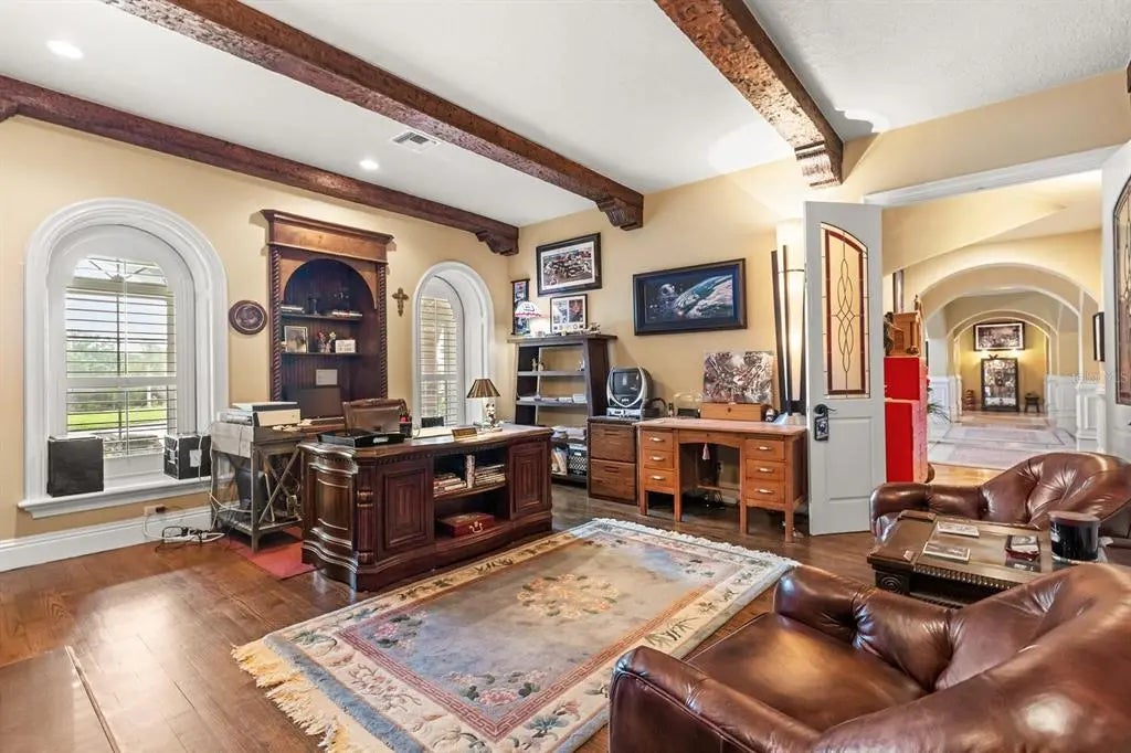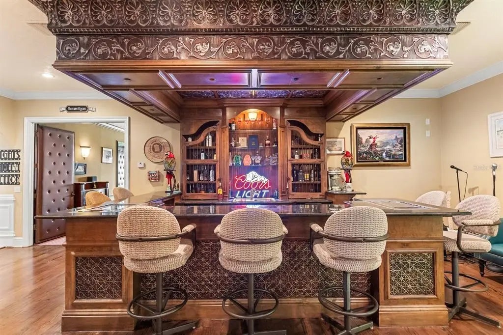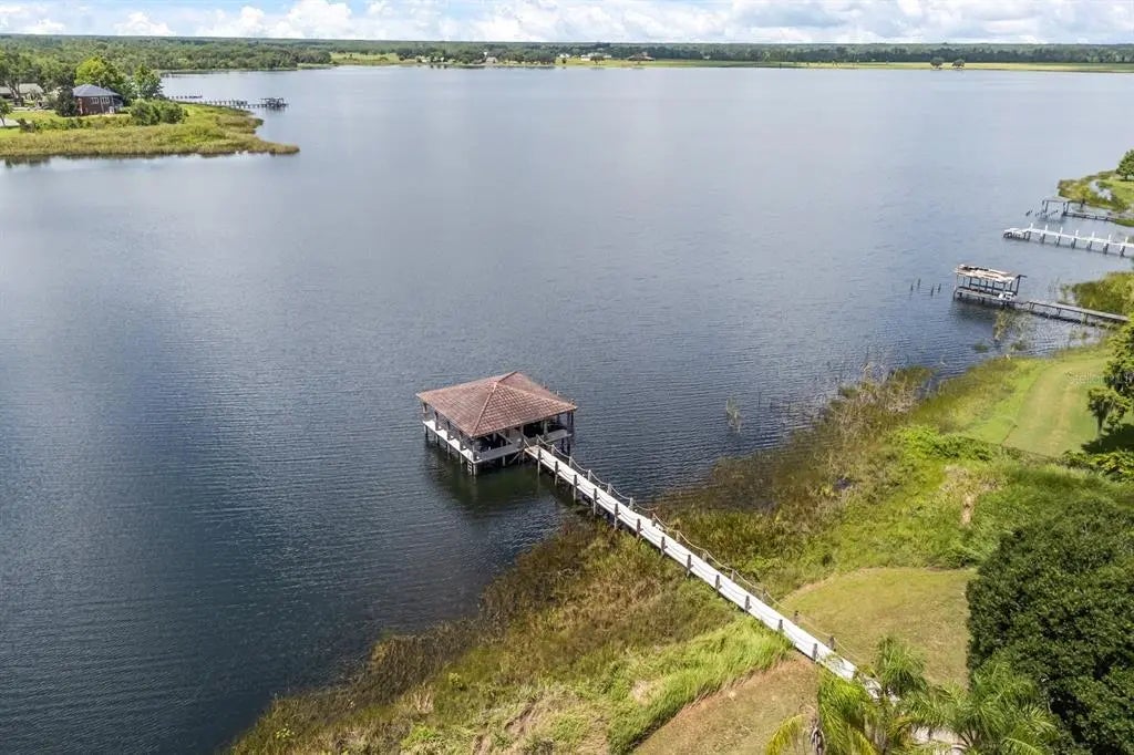 Lakefront one-of-a-kind architectural masterpiece with over 12,000 square feet of living space situated on your private gated compound of 10.9 acres. Soaring 25-foot ceilings define the expansive interiors, while custom high-end design details elevate every space. The gourmet kitchen is a chef’s dream including a massive kitchen island, professional-grade appliances, gas range and butler’s pantry. Property features two primary suites, private elevator, home theater, office, steam shower, wine room, grand stone curved staircase, full bar and second-story entertainment lounge. Outdoor amenities include resort-style pool and spa, covered summer kitchen area, two balconies with scenic views, two private gates, two long brick paved driveways, ample parking space for cars, RVs and boats and a boathouse with two slips on the private Kirkland Lake. Additional recent upgrades include newer roof, air-conditioning units, water heaters and whole-home generator. Enjoy seclusion and beautiful lakeside scenery while being close to major highways, airports, hospitals, Disney, Universal and more.