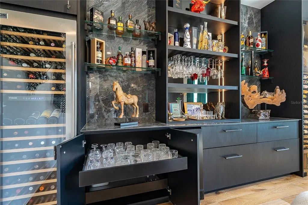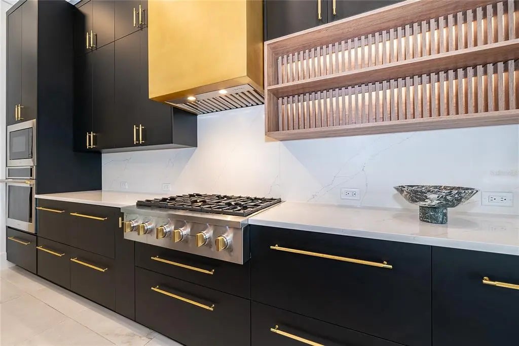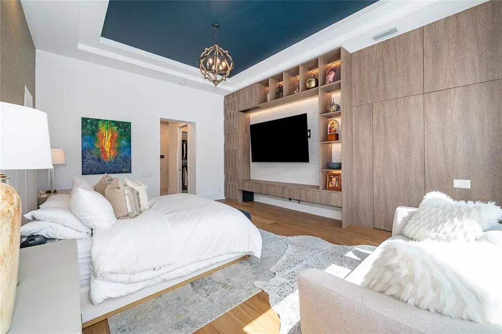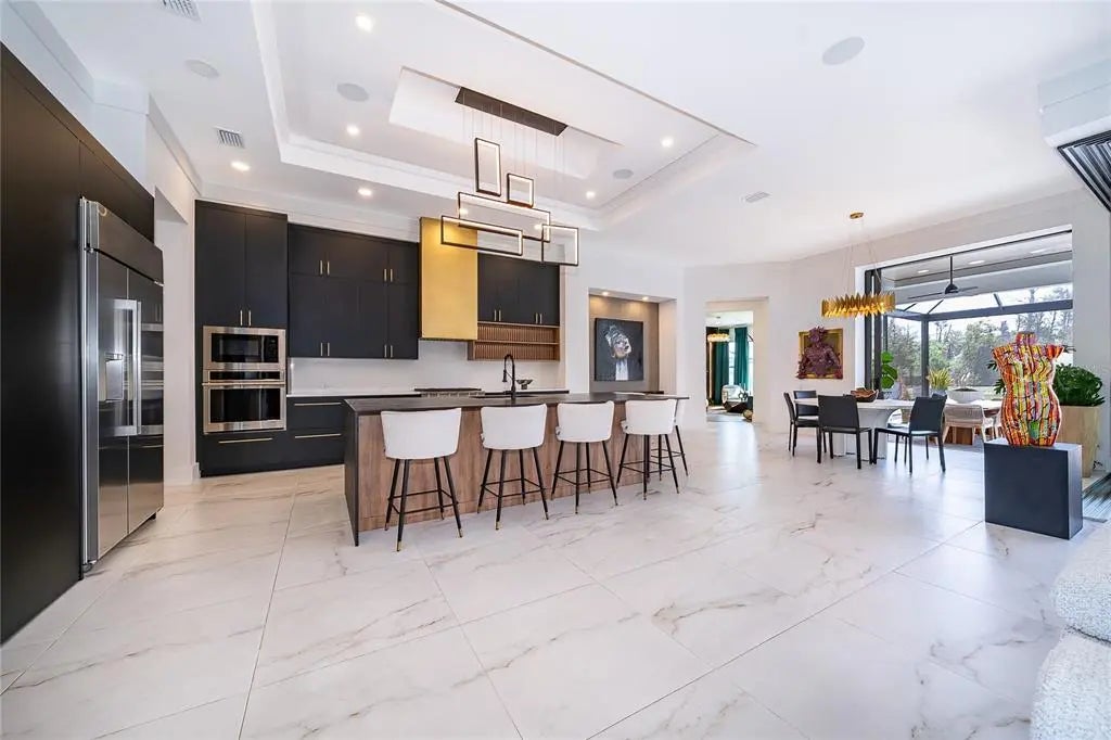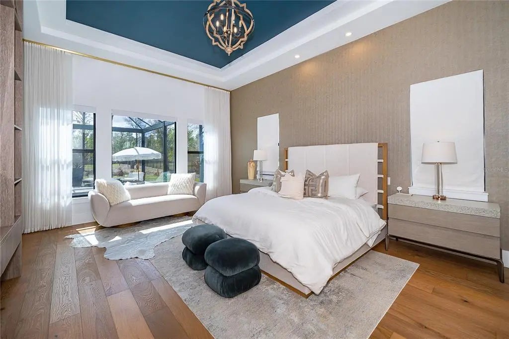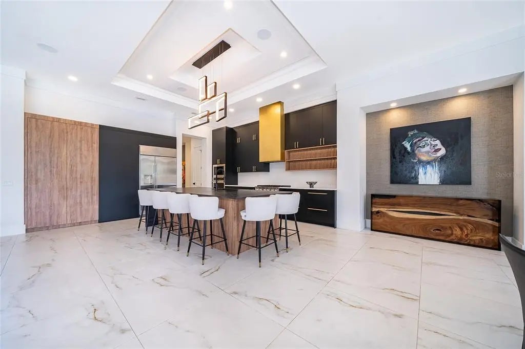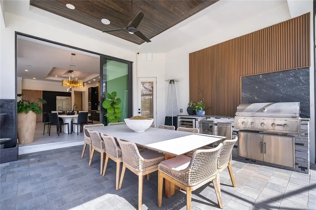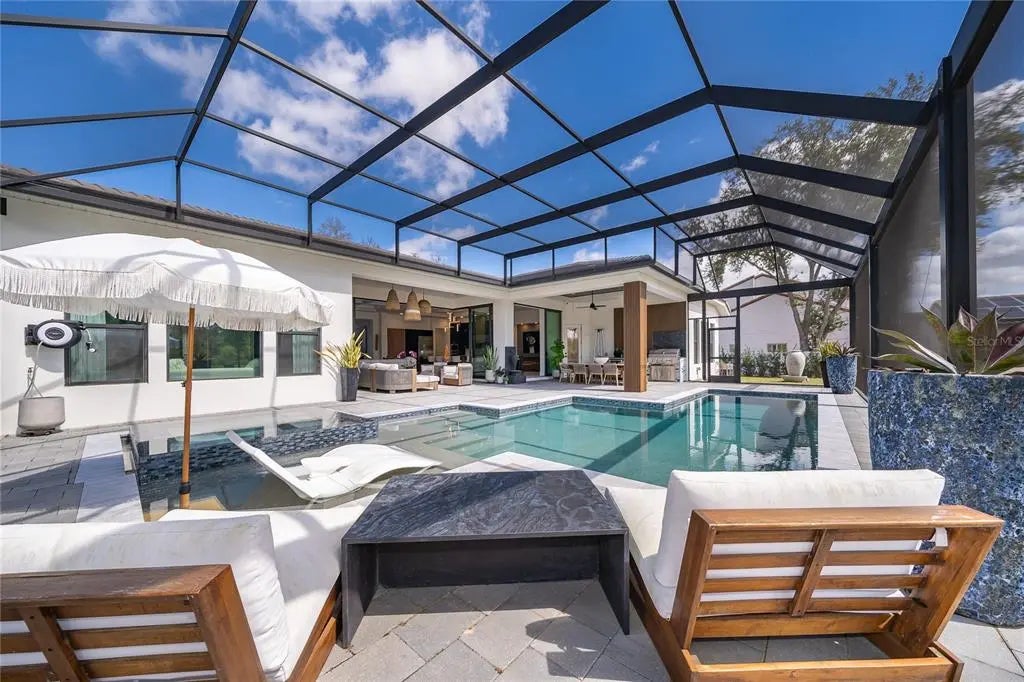 Located within the guard gated community of Bella Collina, this custom-designed 4 Bedroom 4 Bath plus office and game room residence offers a refined blend of architectural presence, curated interiors, and elevated functionality. Set on a flat, fully cleared 1.19-acre homesite, the property provides exceptional usability, privacy, and flexibility—ideal for outdoor entertaining, recreation, or future enhancements within a beautifully maintained and easily manageable setting. Light-filled living spaces feature soaring ceilings, expansive 30" x 30" porcelain tile flooring, and hardwood floors throughout all four bedrooms, the office, and bar areas. The chef’s kitchen serves as the centerpiece of the home, highlighted by a custom CopperSmith brass hood, oversized Dekton island, sleek custom cabinetry, and premium Monogram appliances—designed for both everyday living and large-scale entertaining. A fully integrated in-ceiling sound system throughout the primary living areas—including the kitchen, living room, bar, lanai, and outdoor kitchen—creates a seamless indoor-outdoor entertainment experience. An integrated wine bar with a 160-bottle dual-zone wine refrigerator further enhances the home’s entertaining appeal. The primary suite offers a private retreat with serene wooded views, full-wall custom cabinetry, and a spa-inspired bath featuring custom shower tile, LED-lit engineered wood panels, designer wallpaper, and premium countertops. Disappearing glass sliders from the great room open to a covered lanai with a resort-style pool, heated spa, and summer kitchen—providing effortless indoor-outdoor living year-round. Additional highlights include a dedicated home office with 16’ ceilings, custom cabinetry, and a glass-and-aluminum door, along with professional landscape lighting and an extended paver driveway that enhances the home’s overall architectural presence. Residents enjoy access to The Club at Bella Collina, featuring Har-Tru tennis courts, pickleball, a resort-style pool complex, fitness center, spa, complimentary fitness classes, and a Nick Faldo–designed championship golf course, along with year-round social and culinary programming.