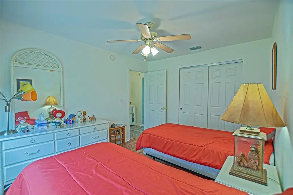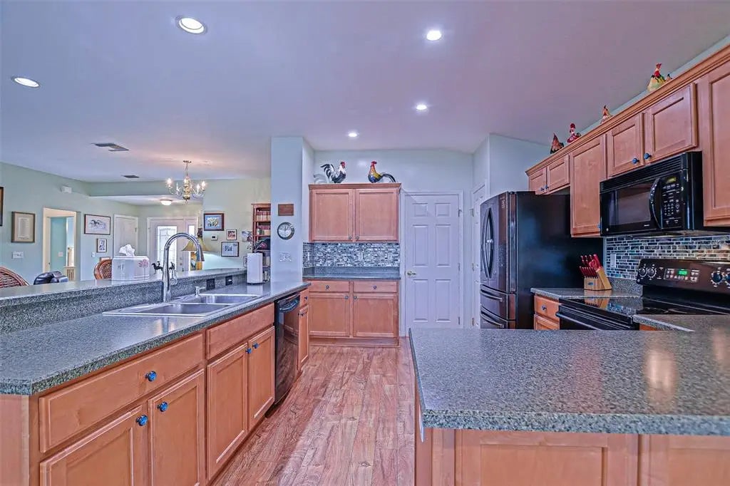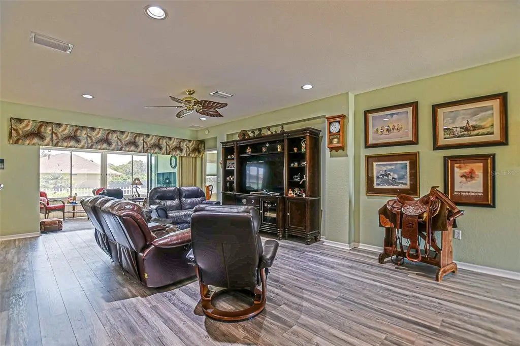 Price improvement !! Wonderful Elkridge model located on a cul-de-sac 3 bedroom and 2 bath open floor plan on a semiprivate serene lot, centrally located in the community. Enclosed lanai is under heat and air for year-round use adding an extra 280 sq ft of living space (not included in heated sq footage ) . Backyard has a fenced area for your pet. Upgraded Maple cabinets with newer appliances. Inside laundry. No carpet in the house, either luxury vinyl laminate or ceramic tile. Roof re-shingled 2021 and HVAC replaced 2019. and so much more! Wonderful home in a superb location.