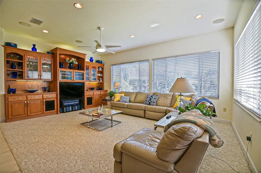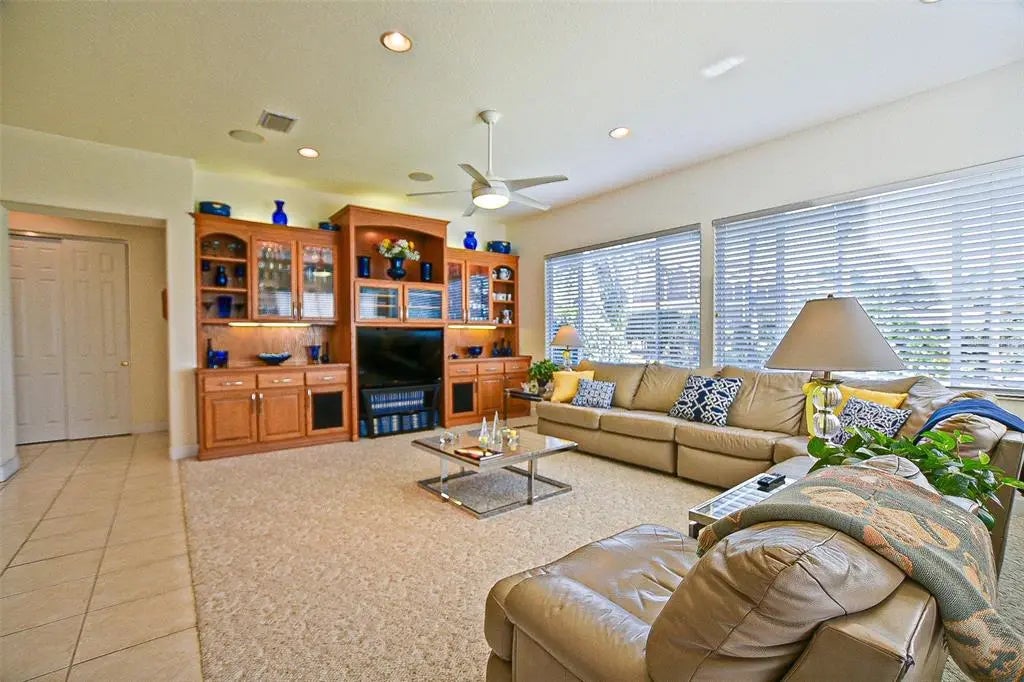 Under contract-accepting backup offers. Attractive price change!!!! Stunning are the words you will use when you view this beautiful Hampton model that boasts three bedrooms and two and one-half baths, split bedroom plan, an extended garage area for storage, workshop, and a golf cart garage. Enlarged great room and Large gourmet kitchen with Corian countertops and wood cabinets, built in double oven and microwave and a large pantry and lots of cabinet space. Roomy inside laundry room. Some plantation shutters in the home and 5 " baseboards throughout. Extended screened lanai and luscious landscaping. Speaker system on lanai. Water heater replaced 2013, roof re-shingled 2020, All of this on a deep privacy landscaped yard in the Tamarron with front views to the lake and located near fitness center and softball field and preserve walking path.