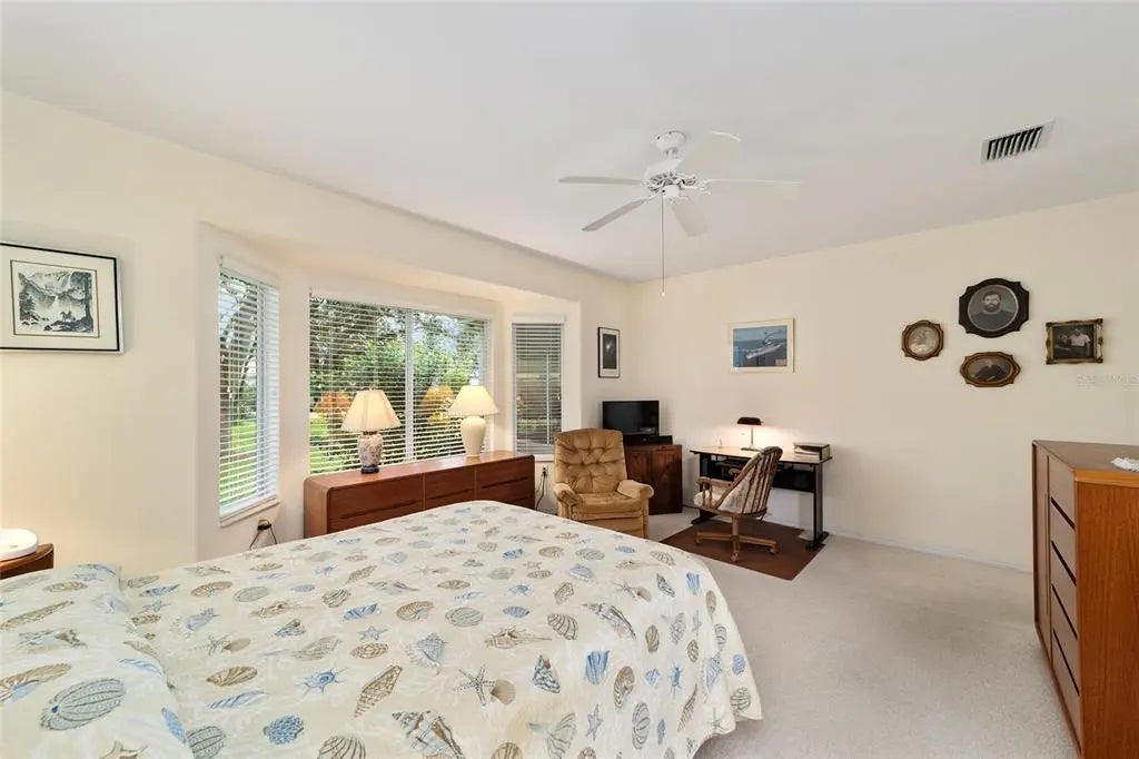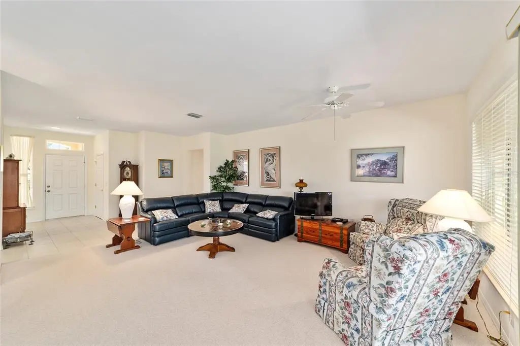 MOTIVATED SELLER! SELLER IS OFFERING A $5000 CREDIT AT CLOSING. BRAND NEW HVAC (12/2025), NEW ROOF (2021), IRRIGATION WELL, EXTENDED GARAGE, EXTENDED GOLF CART GARAGE, CUL-DE-SAC LOT ON THE GOLF COURSE, HUGE SHADED BACKYARD, STUCCO HOME! This Sanibel residence has had a single owner and includes a THIRD BEDROOM. The kitchen features Corian countertops and a full wall of built-in cabinets in the breakfast nook. The screened lanai was re-screened in 2018. The interior laundry room currently serves as an office, while the laundry area has been moved to the garage. Additional updates include screens installed on both the main garage, a designer driveway, walkway, and front porch. The spacious backyard provides ample opportunity for a pool or outdoor recreation. NO ONE DIRECTLY BEHIND YOU! Located within Del Webb Spruce Creek Golf & Country Club, residents have access to four 9-hole golf courses, a restaurant, pro shop, three pools and hot tubs, a softball field, fitness center, and more. The home is protected by a TRANSFERABLE TERMITE BOND, and the seller is offering a 1-YR Broward Factory Service HOME WARRANTY. Call for your private showing today!