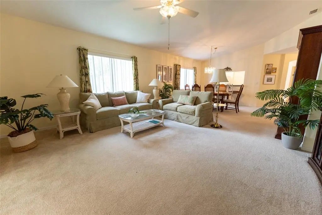 Under contract-accepting backup offers. This Cypress II Villa offers 2 bedrooms, 2 bathrooms, 1,356 sq ft of living space, and a two-car garage on a desirable lot within Del Webb’s Spruce Creek Golf & Country Club. Features include, tile backsplash in the kitchen, large walk-in closet, an enclosed lanai, and a laundry area in garage. The HOA fee covers lawn care, weeding, trimming, and irrigation. Enjoy access to over 70 clubs, three pools and spas (including indoor and outdoor options), fitness center, tennis, pickleball, golf, dining at Liberty Grille, and more. Located near The Villages with convenient shopping, restaurants, and medical facilities. Move-in ready and perfect as a primary residence, seasonal home, or investment opportunity—schedule your showing today!