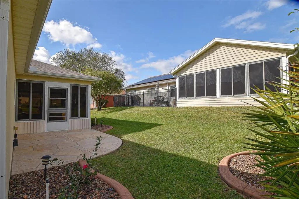 Welcome to your new beginning. Well maintained home, close to the clubhouse in desirable Spyglass Hill. Driveway and sidewalk have stamped concrete for great curb appeal. The Dogwood model boasts three bedrooms, and a 2-bath split plan affords a spacious living room with crown molding and cathedral ceilings. The heart of this home is undoubtedly the kitchen, a culinary haven that is large light and bright with a solar tube and direct access to the garage for ease in unloading. The dining room has a nice chair rail, and room for a large table and hutch. From the living room step into a roomy enclosed Florida room with its own heat and air unit (new) and window blinds. Enjoy the Florida weather or perfect for grilling the open patio has stamped concrete finish. Glass entry front door plus a hide-a-screen. The garage is extended and has a utility sink, pull down attic steps and loads of storage and floor has a fresh paint finish. INCLUDES A GENERAC GENERATOR AND AN ADDED BONUS, HOME COMES WITH A GOLF CART.