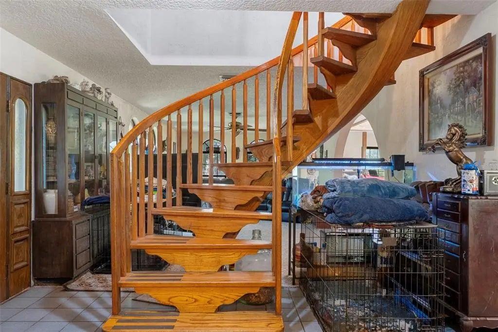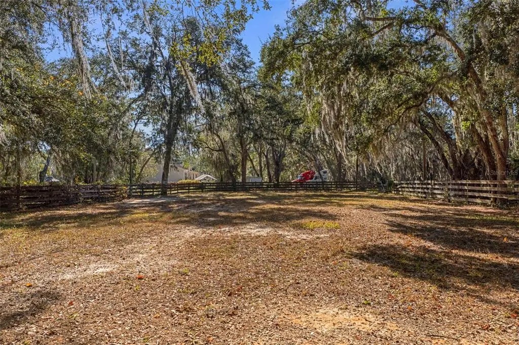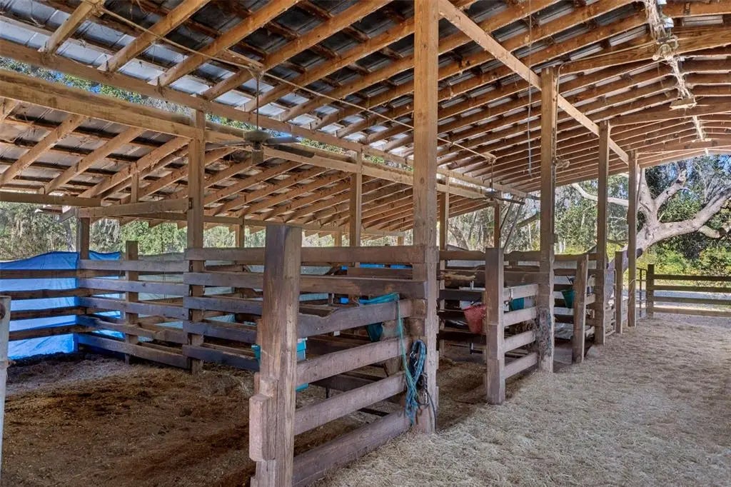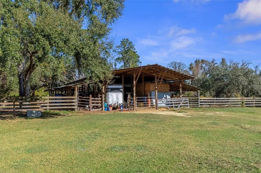 Rare opportunity to own a 25-acre multi-home farm estate offering privacy, versatility, and income potential. This exceptional property features three residences across multiple parcels, making it ideal for multigenerational living, rental income, or a private rural compound with thoughtfully designed equestrian amenities. The custom-built main residence sits on a scenic 14-acre parcel and offers 3,564 sq ft with 4 bedrooms and 2.5 baths. Both stories are concrete block and complete with double pane glass windows and doors. Inside, the home is anchored by a striking two-story stacked NC Cherry Long stone fireplace, creating a dramatic focal point in the main living area. It is flanked by a wall of windows for an abundance of natural light. A floating oak staircase adds warmth and craftsmanship, while the new kitchen installed in 2022 flows seamlessly into generous living spaces designed for everyday comfort and entertaining. Outdoor highlights include a custom resort-style pool with slide, firepit, pool equipment house, two tranquil koi ponds with a waterfall and expansive grounds framed by mature trees and open pasture views. The 2 story, 864 sq ft detached garage features a finished, screened-in Florida room above, ideal for gatherings, hobbies, or enjoying the outdoors year-round bug-free. You’ll enjoy walking across the bridge from the primary bedroom to the Florida room. The property also includes two additional income-producing residences: 27750 Debbie Rd with ~6 acres, 3-bed/2-bath mobile home, 1,152 sq ft (1993). 27720 Debbie Rd with ~5 acres, 3-bed/2-bath mobile home, 1,560 sq ft (2010). Both homes are currently tenant-occupied offering immediate income opportunities. Designed with equestrian use in mind, the property offers a comprehensive layout including a 72’ x 144’ riding arena shaded by mature oak trees, a 60’ round pen, and lighting throughout the property and into multiple pastures (may need updating). An extra-wide pole barn with metal roof and center aisle allows for configurable stall layouts ranging from 7 to 13 stalls (currently 10x20), complete with a wash rack. Ask about the farm equipment included. The land is thoughtfully arranged with eight total pastures, two small turnout paddocks, and is cross-fenced with no-climb fencing for safety and ease of management. A pond with viewing gazebo adds both function and a peaceful gathering space. This property offers the ideal balance of country living with modern convenience, located just minutes from shopping, dining, and services in The Villages. Publix and Aldi’s are just down the road. For active equestrians, it is also well positioned near established venues including Sumter Equestrian (24mi), Grand Oaks (14mi), Rocking Horse (29mi), Three Lakes (13), Florida Horse Park (31mi) and the World Equestrian Center WEC Ocala (44mi). The Florida Turnpike is approximately two miles away, providing efficient access throughout Central Florida. With expansive acreage, multiple residences, immediate income, and well-appointed equestrian infrastructure, this property presents a rare combination of lifestyle, flexibility, and accessibility in a highly desirable setting.