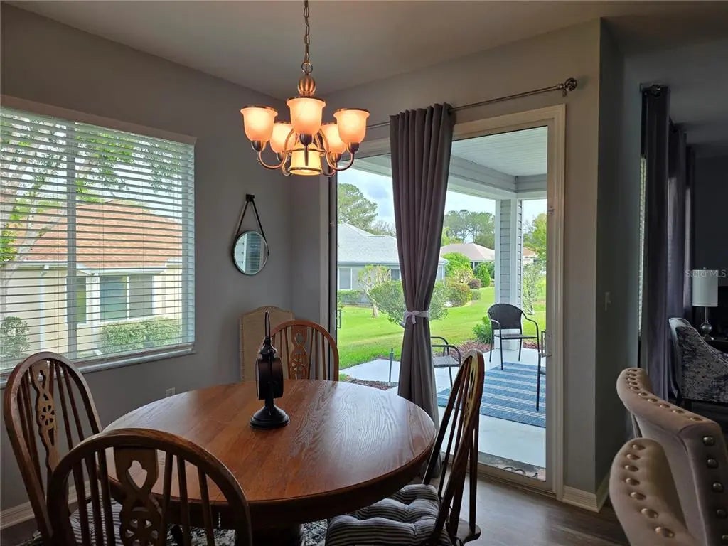 This Amelia model residence, featuring two bedrooms and two bathrooms, is situated within the esteemed Del Webb Spruce Creek Golf & Country Club—a premier 55+ active adult community. The property has undergone numerous recent upgrades designed to enhance both comfort and modern living standards. Notable improvements include a brand new HVAC system and water heater installed in December 2025, as well as a roof replacement completed in 2021. The home showcases luxury vinyl plank flooring, granite kitchen countertops with coordinating backsplash, and a stainless steel sink—all updated in 2021. Interior enhancements consist of new doors, fresh paint (2021), updated window blinds, and contemporary light fixtures and ceiling fans. The primary and guest bathrooms received updates in 2026, and the front entry boasts a beveled glass insert and full-view storm door with screen and glass options for ample natural light. The garage offers a painted floor, sliding screen system, and plumbing for a slop sink. Exterior improvements include freshly painted driveway, sidewalk, and both porches as of 2026. The home is being offered partially funished. This meticulously maintained home provides an exceptional opportunity to enjoy refined living in one of Summerfield’s most desirable communities—Del Webb Spruce Creek Golf & Country Club. Private showings are available by appointment.