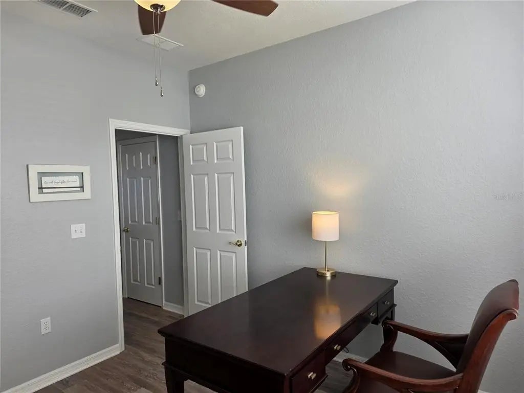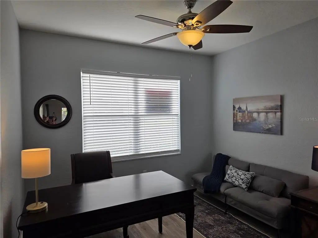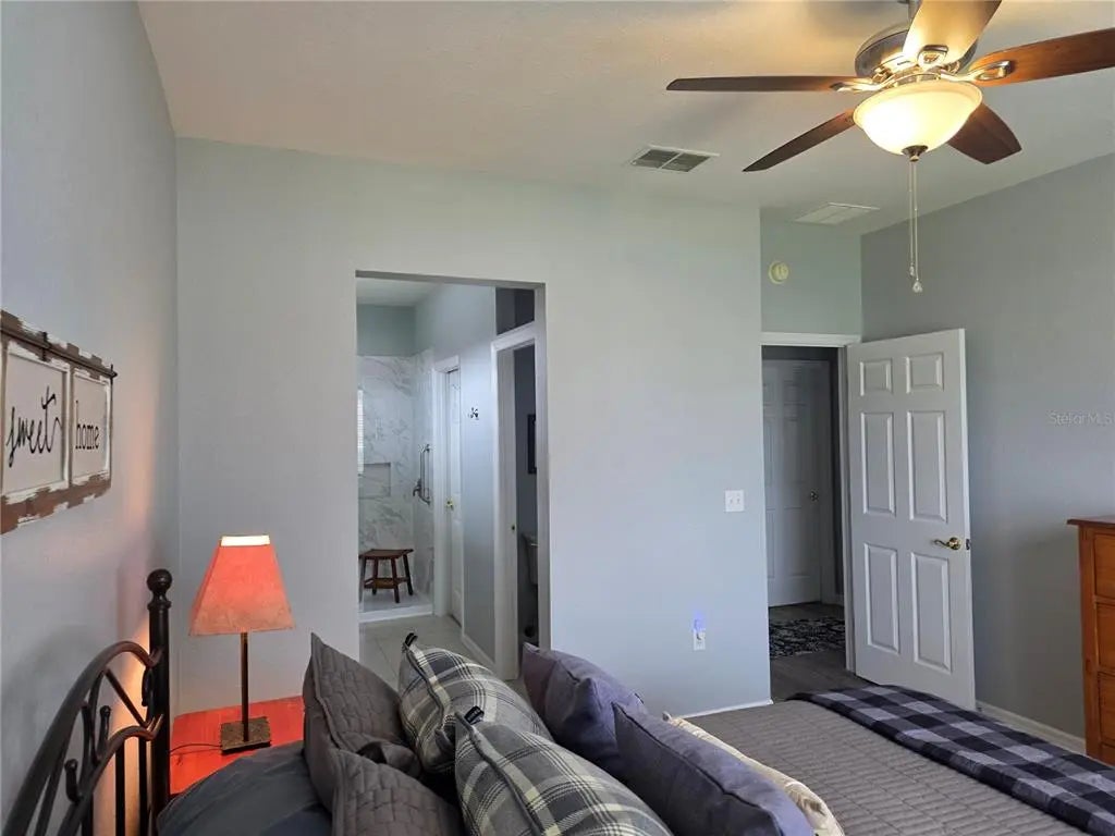 - Attic Fan, Ceiling Fan(s), High Ceilings, Split Bedroom, Stone Counters, Thermostat, Walk-In Closet(s), Window Treatments