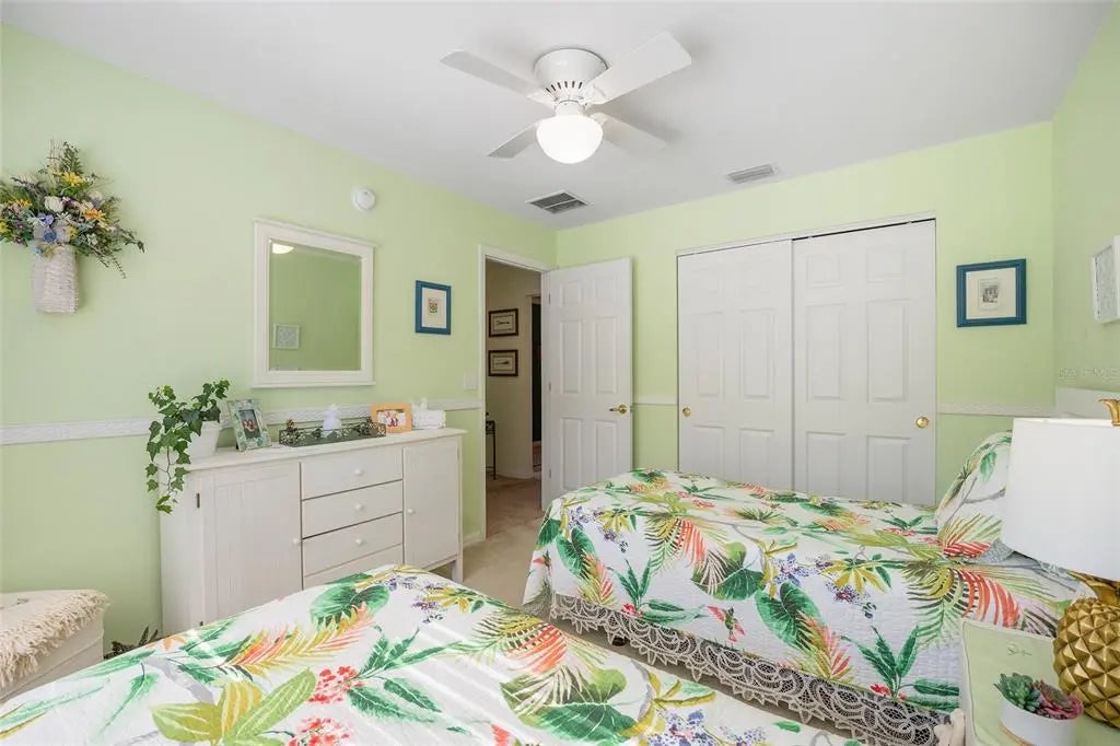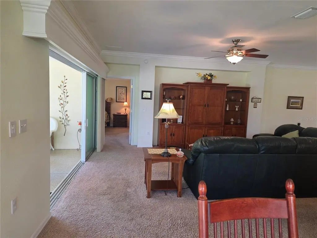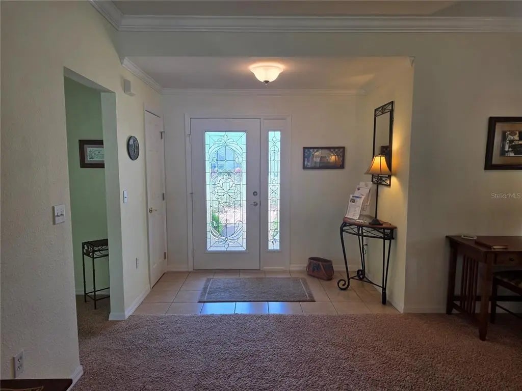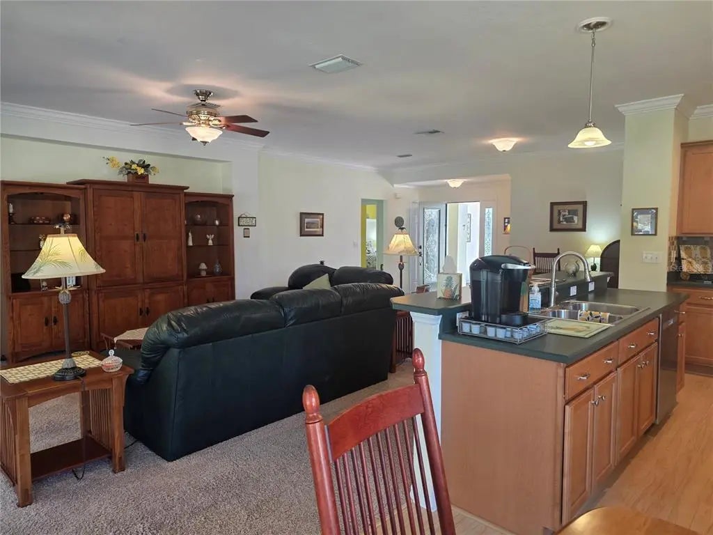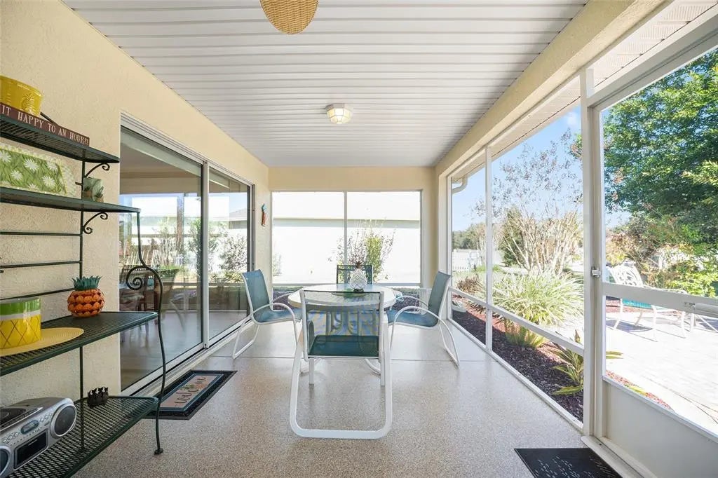 SELLER GIVING $2500 CREDIT AT CLOSING! This popular Elkridge model (3/2/2) is being offered to the market for the first time. The current owner, a seasonal resident, has ensured the home remains well-maintained and gently used. This attractive property features numerous upgrades and updates, including new smoke alarms (2024), a new garage door opener (2024), and a new water heater (2024). Stainless steel appliances were installed (2023), and custom wooden window cornices were added. As a preventative measure, the home was re-piped (2021). A new roof was installed (2019). Crown molding enhances the family room. The front door includes a decorative glass insert and sidelight, while the screened lanai with painted flooring provides a comfortable setting to enjoy the backyard. Outdoor amenities include a circular paver patio and BACKYARD LANDSCAPED GARDENS DESIGNED FOR TRANQUILITY with hacienda landscaping in the front. Additional features comprise a paver driveway, sidewalk, and front porch. The kitchen boasts Tarkett Oak laminate flooring. (The green accent walls have been repainted.) ***This property is offered TURNKEY with limited exceptions.***