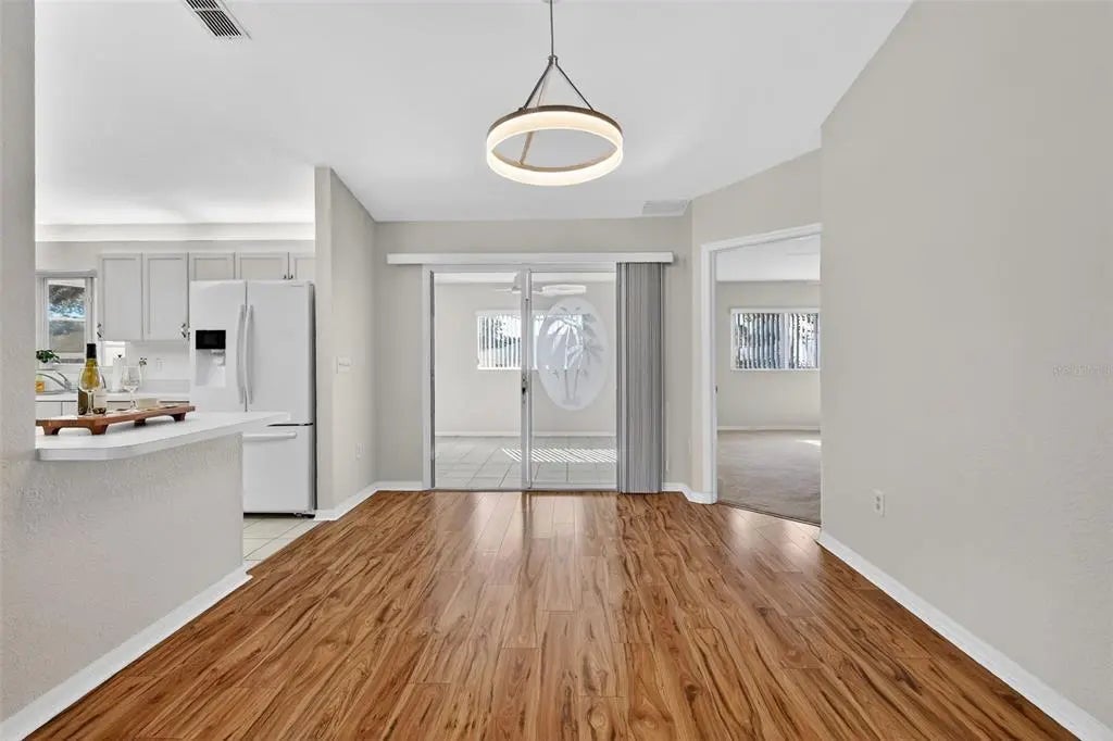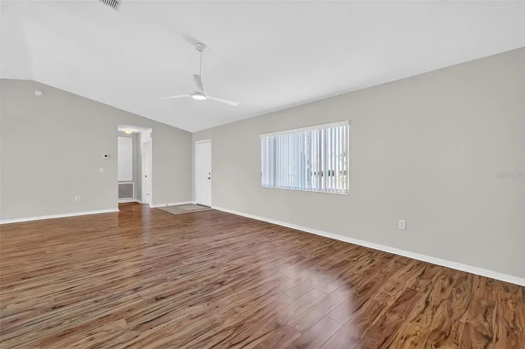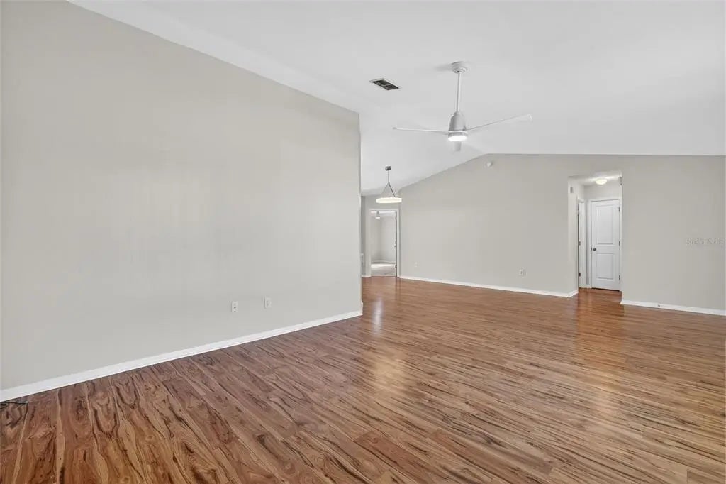 - Ceiling Fan(s), Eating Space In Kitchen, High Ceilings, L Dining, Living Room/Dining Room Combo, Open Floorplan, Primary Bedroom Main Floor, Thermostat, Vaulted Ceiling(s)