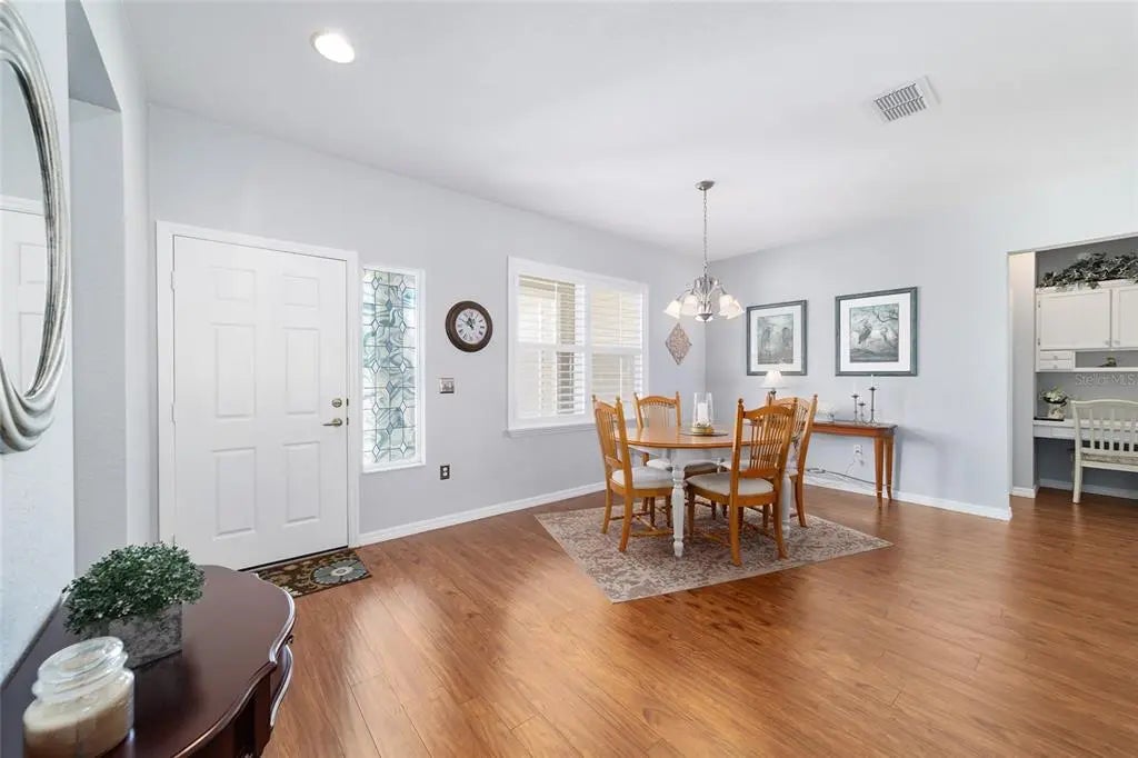 Discover charm and comfort in this San Mateo model! Home is being offered "nearly" turnkey with furniture, furnishings and decor included. Featuring wooden laminate floors, plantation shutters, a tiled kitchen with granite counters and stainless appliances, and a bay-windowed primary bedroom. Enjoy versatile living with a Murphy bed in the second bedroom, inside laundry, and a cozy enclosed lanai. Step outside to a private backyard with room for a pool. ROOF - 2014 HVAC - 2015 . AWARD-WINNING Del Webb Spruce Creek Golf & Country Club is a GATED, 3,250 home, +55 Community with over 70 clubs, 3 pools, 3 spas, a Clubhouse, a Fitness Center, Bocce Ball, Shuffleboard, 12 Pickle ball Courts, 7 Tennis Courts, Sand Volleyball, Water Volleyball, Lake Vista Gazebo, Pavilions, Walking Paths and so much more! Come see this beautiful community with a GORGEOUS Tree Canopy on the Boulevard and its Restaurant, Liberty Grille. Come, enjoy the four (4) 9-hole Golf Courses today and begin living your BEST LIFE! DON'T WAIT TO SEE THIS BEAUTIFUL HOME