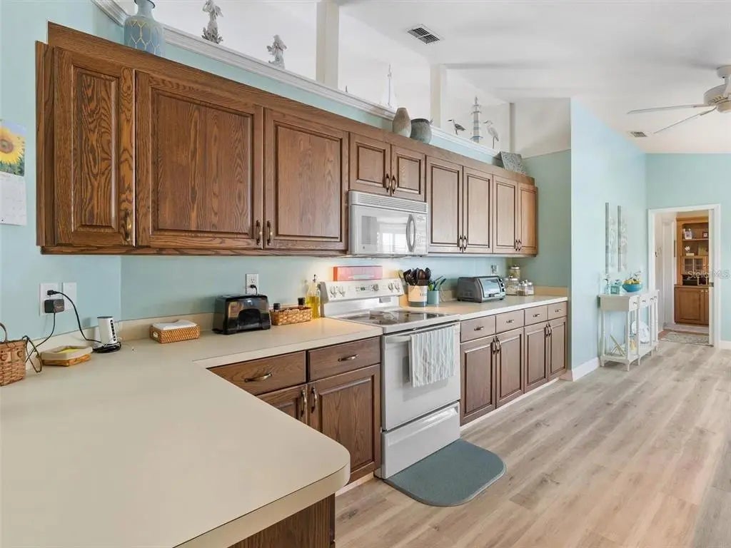 WOW, WHAT A VIEW, WHAT A PRICE AND ASSUMABLE VA MORTGAGE TOO! DEL WEBB GOLF & COUNTRY CLUB HOME WITH SPECTACULAR VIEW OF #8 MASTERS GOLF COURSE. IMMACULATE PALM II, LOCATED IN A CUL-DE-SAC CONVENIENT TO FRONT GATE ENTRANCE, HORIZON CENTER AND POOL, GOLF COURSE AND LIBERTY GRILL. SPACIOUS DINE-IN KITCHEN, ABOVE COUNTER LIGHTING, BAY WINDOW, PLANTATION SHUTTERS, LOTS OF COUNTER SPACE & AN OFFICE WITH BUILT-INS & POCKET DOOR OFF KITCHEN. LAMINATE FLOORING IN LIVING ROOM, DINING ROOM & KITCHEN. TILED BATHROOMS WITH GRANITE COUNTERS. 24' X 12' TILED FLORIDA ROOM & ENCLOSED LANAI BOTH UNDER AIR & HEAT. OPEN PATIO WITH FENCED AREA. EVERYTHING NEEDED TO ENJOY THE BEAUTIFUL VIEWS FROM INSIDE AND OUTSIDE. EXTRA LONG DRIVEWAY. GARAGE HAS SLIDING SCREENS, ACRYLIC FLOOR, UTILITY SINK, WASHER, DRYER AND PULL DOWN STAIRS WITH ATTIC STORAGE. YOUR OWN IRRIGATION WELL WILL SAVE ON WATERING BILLS. ADT SECURITY SYSTEM. GAS WATER HEATER 2023, ROOF 2014, HVAC 2013. ONE YEAR BROWARD FACTORY SERVICE WARRANTY. MUST SEE!