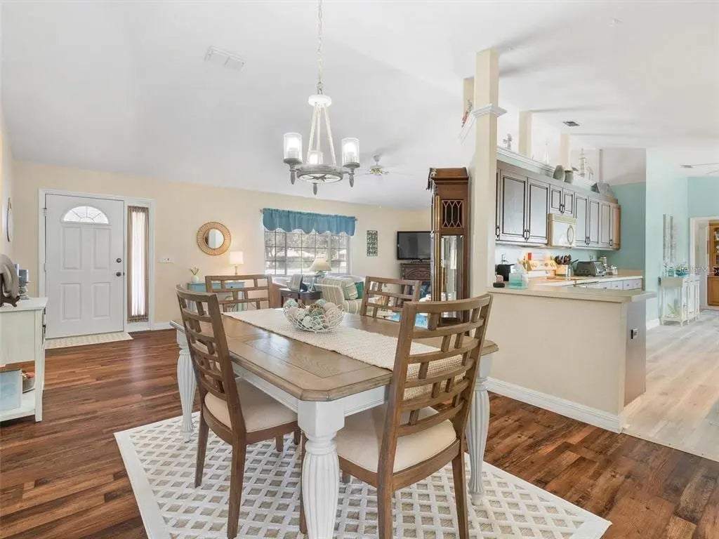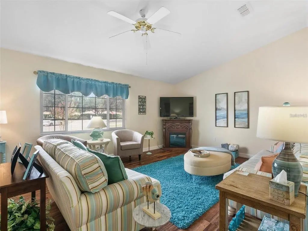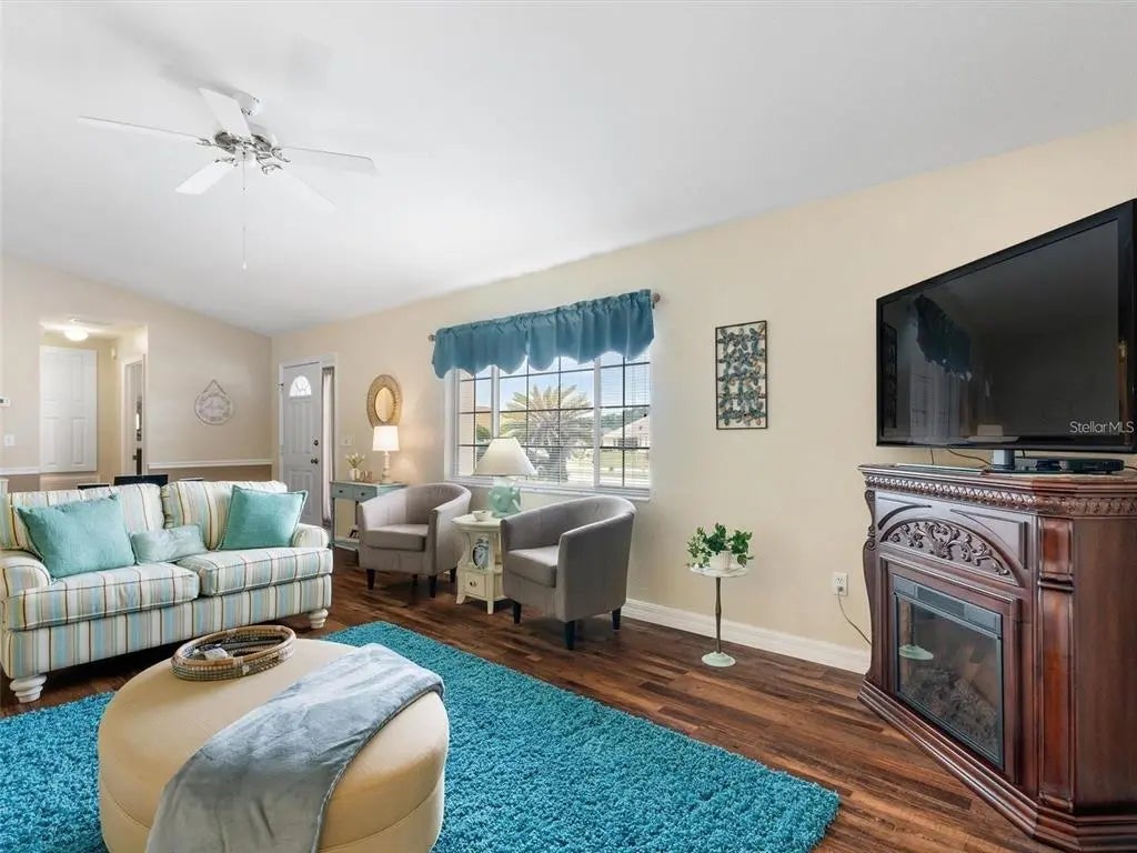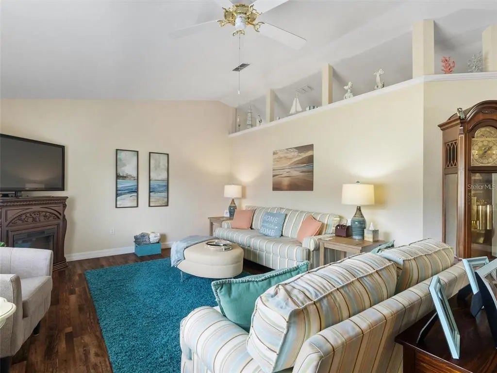 - Ceiling Fan(s), Eating Space In Kitchen, L Dining, Living Room/Dining Room Combo, Open Floorplan, Primary Bedroom Main Floor, Split Bedroom, Vaulted Ceiling(s), Walk-In Closet(s), Window Treatments