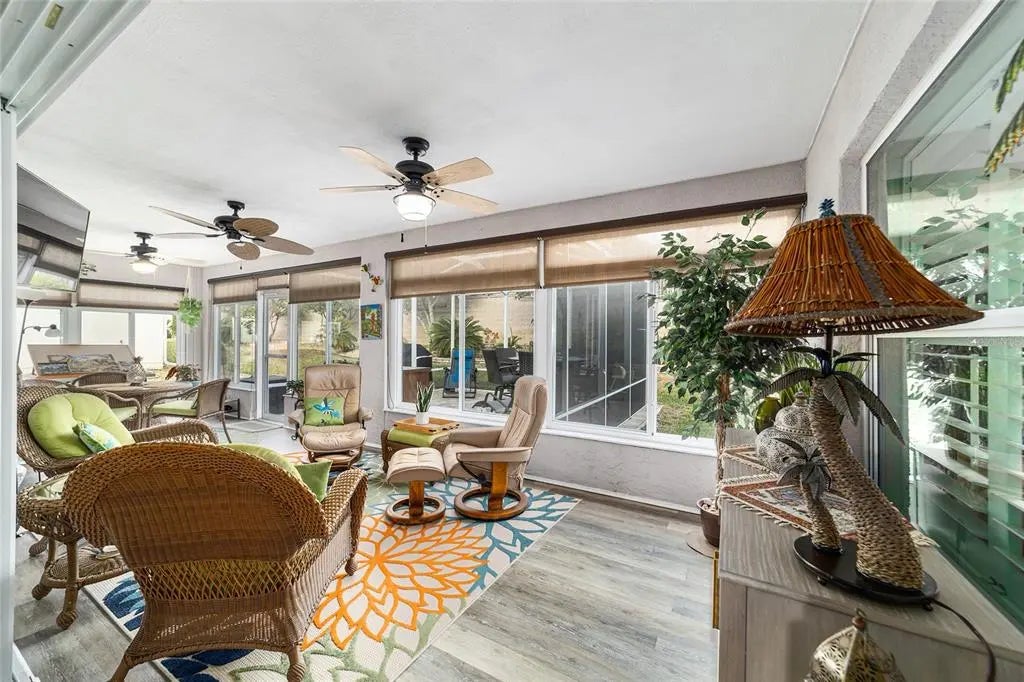 LARGE BIRD CAGE Located in the Hampton hills neighborhood of Spruce Creek Golf and Country Club. This lovey citation model home is a 2 bed 2 bath with den/office. The kitchen has stainless steel appliances. granite counter. This home is located in the middle of the community with easy access to all the amenities. The home has been well maintained including the installation of a New Roof in 2019, the HVAC was repalced in 2017. Community offers many fantastic amenities included in your monthly HOA fee 2 outdoor pools, 1 indoor pool, fitness center, pickleball, tennis courts, and top notch golf courses (requires extra fees) just to name a few