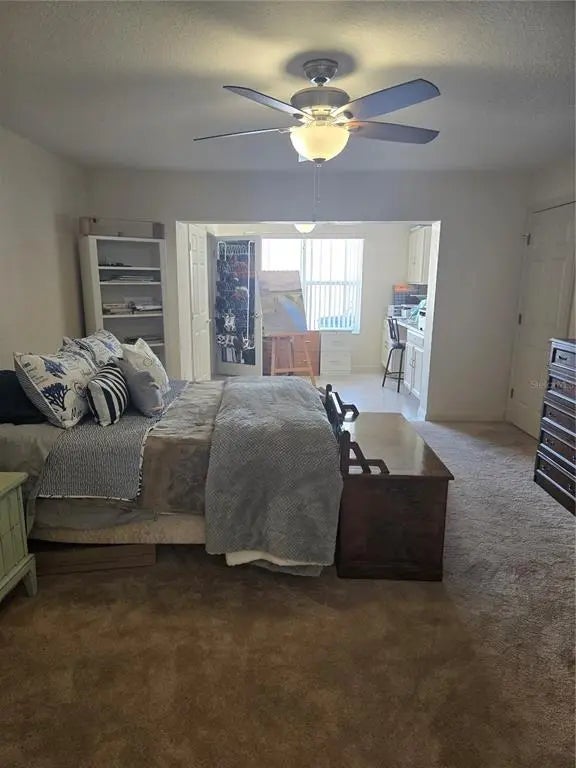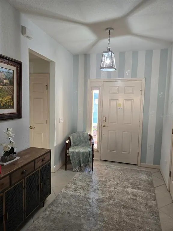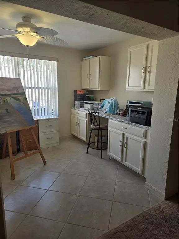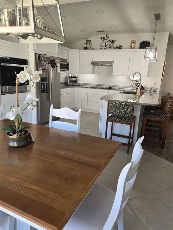 Located in the desirable Del Webb Spruce Creek Golf & Country Club in Summerfield, this extensively updated expanded Citation Model combines quality craftsmanship with thoughtful design. Surrounded by scenic golf views, ponds, and tree-lined streets, the community sets the tone for relaxed, active living. Inside, the home offers 2 bedrooms, 2 bathrooms, a den, and an added 10' x 15' flex room that includes a 9-foot closet along with built-in cabinetry and countertops, providing valuable additional living space perfect for work or creative pursuits. Natural light fills the home, enhancing the open and inviting layout. 2025 Roof, 2021 A/C. The fully remodeled kitchen features 23 solid wood cabinets, a generous 10.5-foot granite breakfast bar, specialty cabinetry, two pantries, and a built-in work desk. Under-cabinet and upper cabinet lighting add warmth and sophistication, making this kitchen both practical and impressive. Designed for entertaining, triple sliding glass doors lead to a screened lanai, while an additional set of quadruple sliders opens to a spacious 29’ x 18’ poured concrete patio. Surround sound in the common areas adds to the entertainment appeal. Recent improvements include gutters, garage door opener, and bottom garage seal installed in 2025, along with a whole-house water filtration system and electrical surge protection. The garage also features a dedicated dog wash station, and the landscaping has been thoughtfully designed for low-maintenance upkeep. With quality upgrades throughout and meticulous care evident in every detail, this home offers comfort, functionality, and peace of mind in one exceptional package.
