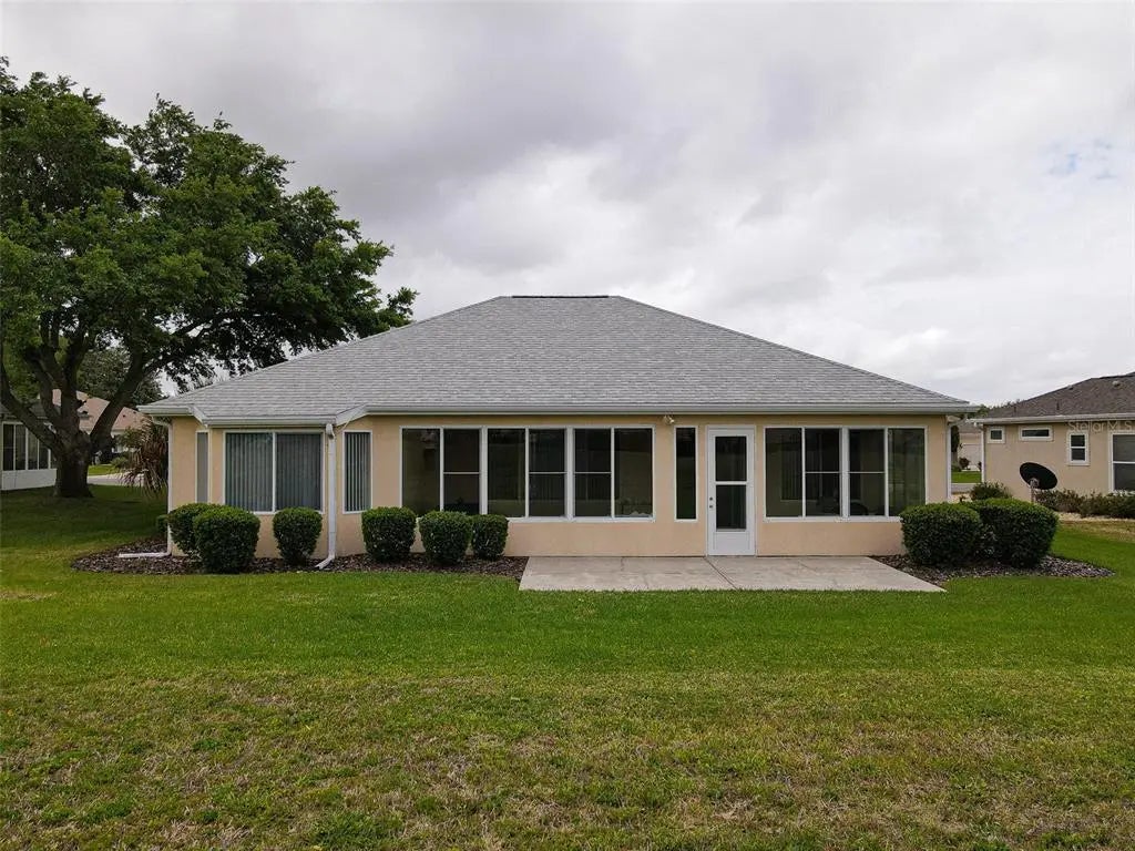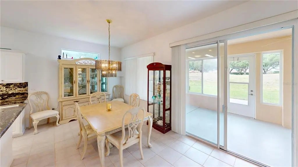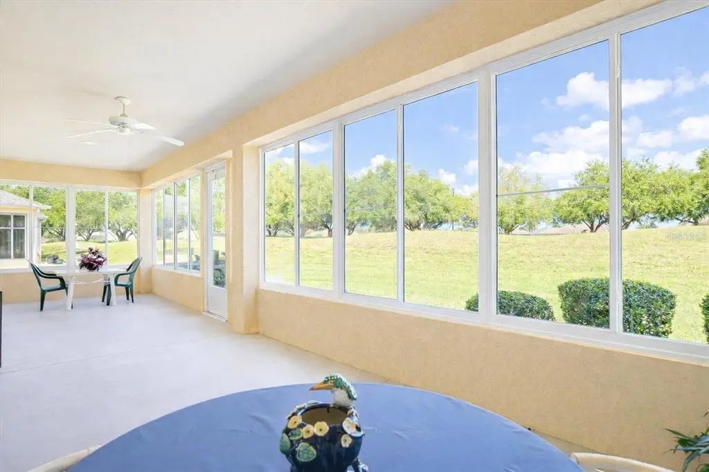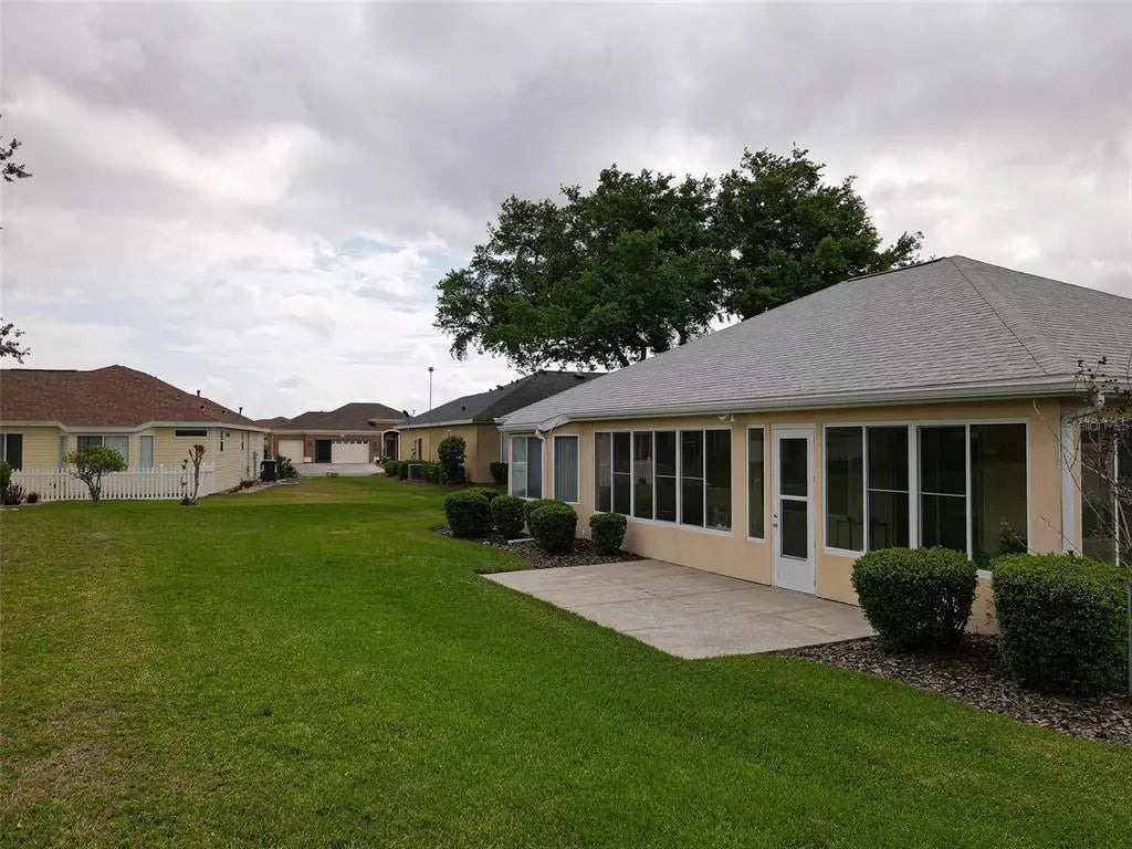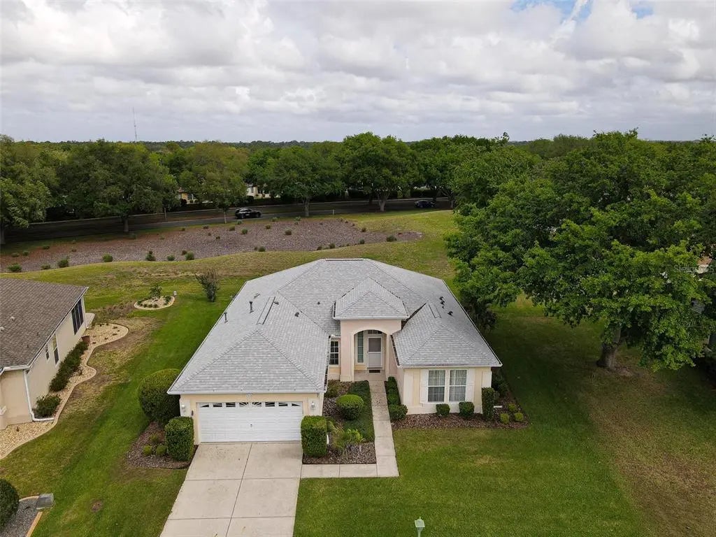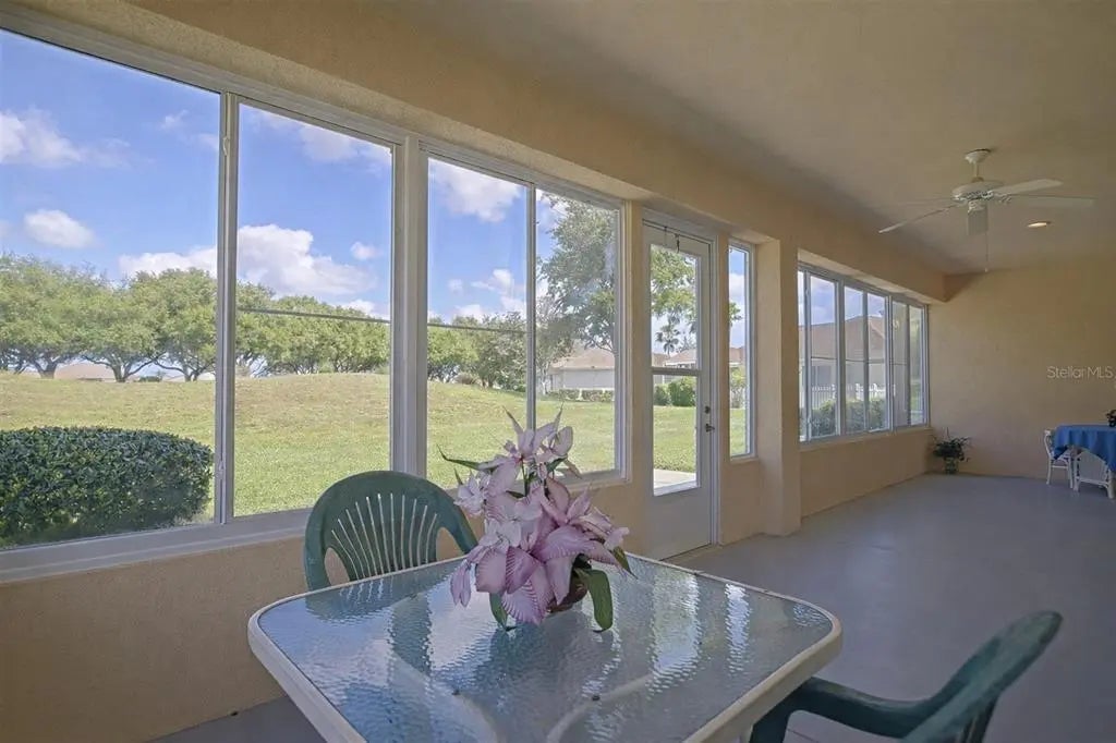 Desirable Madiera floor plan boasts 2 bedrooms and 2 bathrooms plus a den. Ceramic tile in kitchen, dining room and baths. Open floor plan, light kitchen cabinets and beautiful granite countertop. Spacious Primary bedroom with a bay window. Roof was re-shingled in 2021, HVAC new in 2023 and has a new water heater. Storm door on front entry door, enclosed lanai with glass windows. Extended garage. The interior of the home has been freshly painted. All of this on a beautiful private lot. Freezer in garage conveys and furniture can stay with home. The St. Andrews location is centrally located in the community, so it is close to the clubhouse, golf course and fitness center. Don't miss this great opportunity to own this home in Del Webb Spruce Creek Golf & Country Club at a great price!