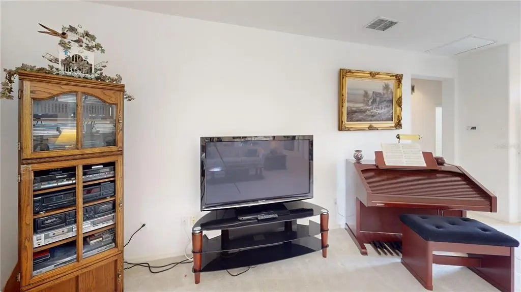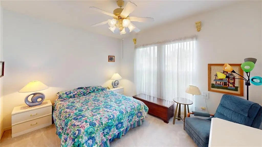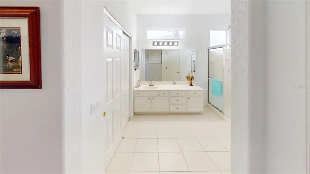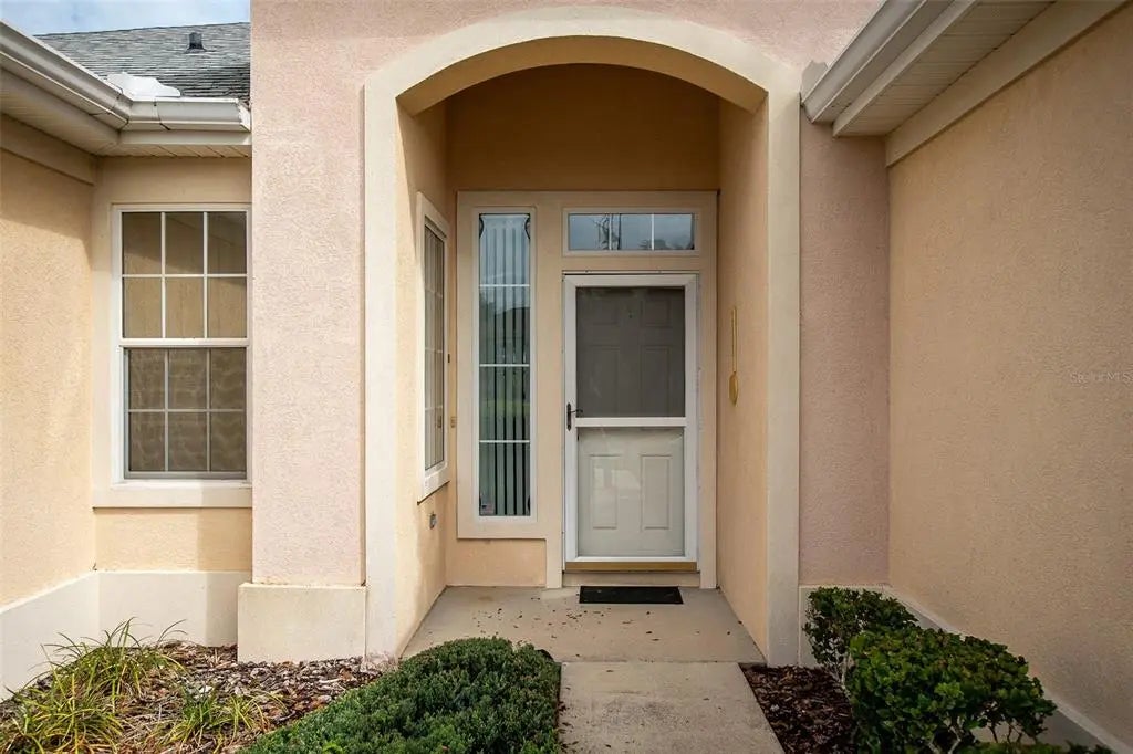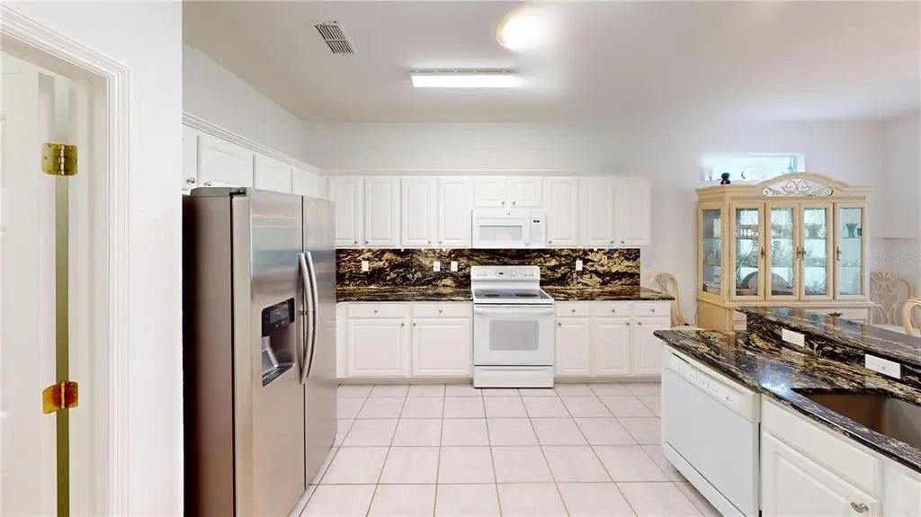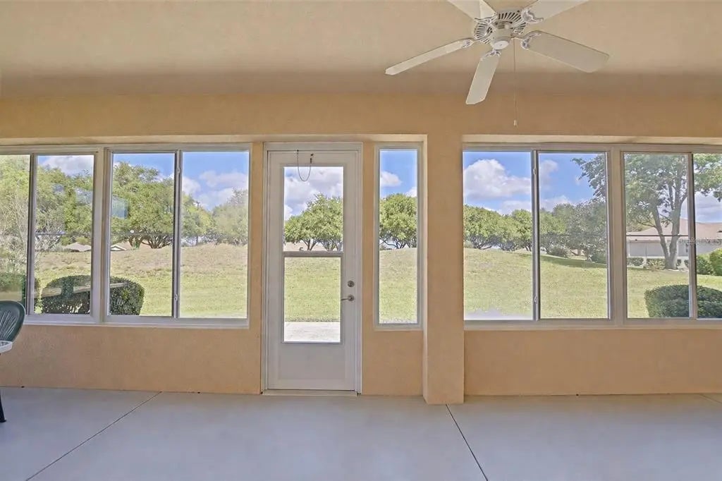 Desirable Madiera floor plan boasts 2 bedrooms and 2 bathrooms plus a den. Ceramic tile in kitchen, dining room and baths. Open floor plan, light kitchen cabinets and beautiful granite countertop. Spacious Primary bedroom with a bay window. Roof was re-shingled in 2021, HVAC new in 2023 and has a new water heater. Storm door on front entry door, enclosed lanai with glass windows. Extended garage. The interior of the home has been freshly painted. All of this on a beautiful private lot. Freezer in garage conveys and furniture can stay with home. The St. Andrews location is centrally located in the community, so it is close to the clubhouse, golf course and fitness center. Don't miss this great opportunity to own this home in Del Webb Spruce Creek Golf & Country Club at a great price!