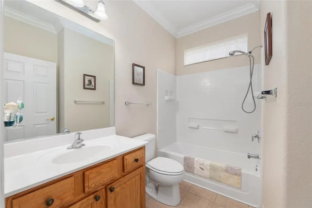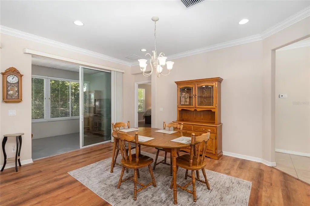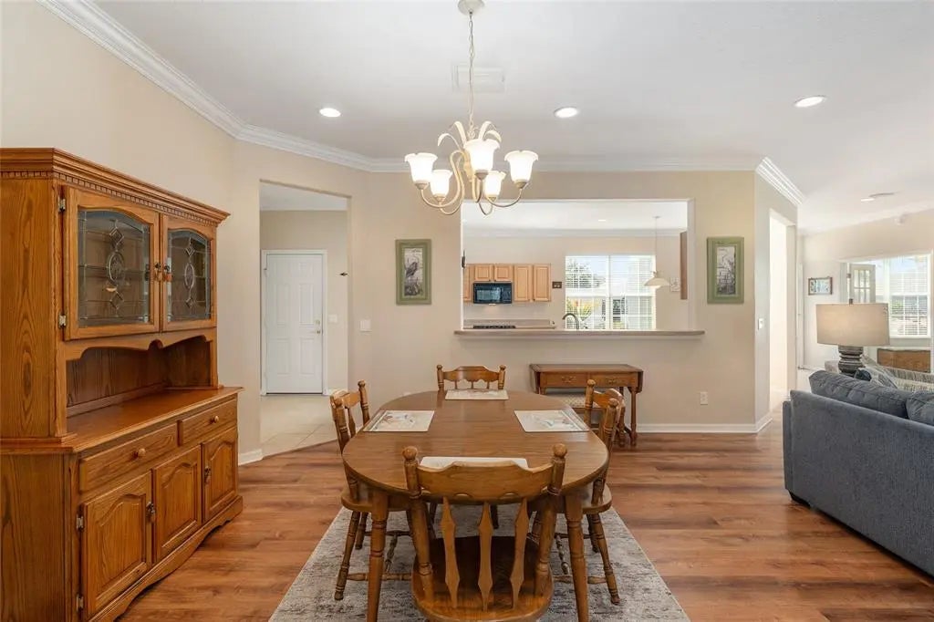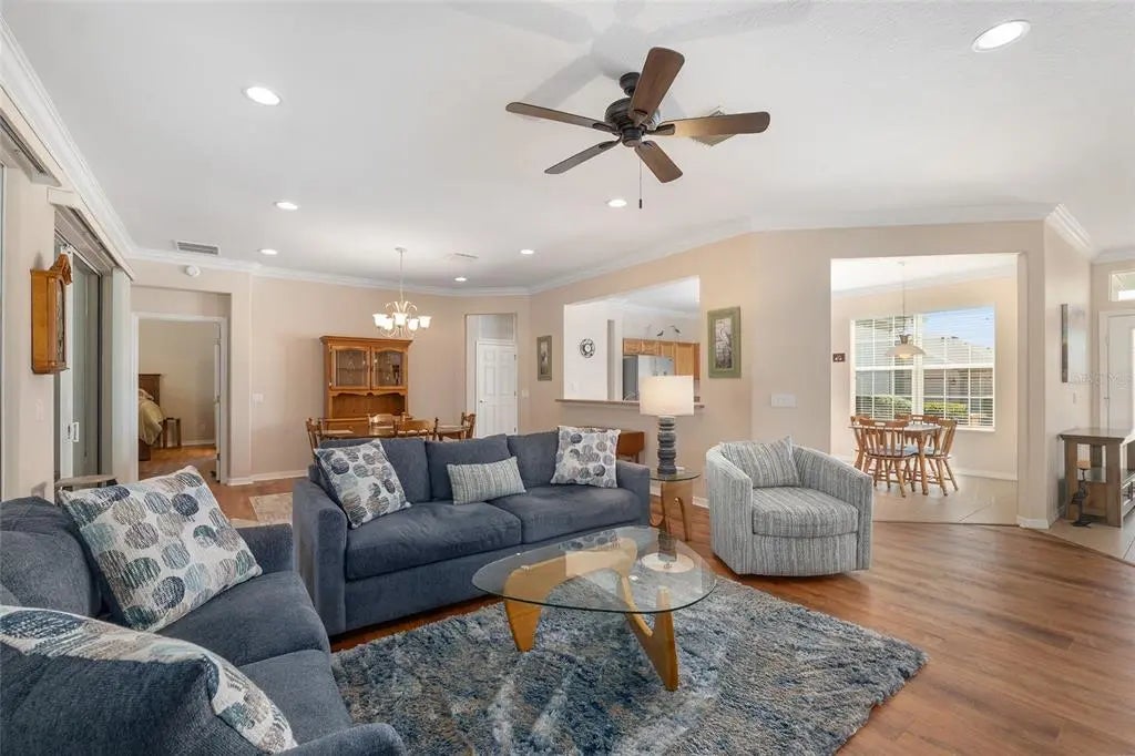 Exceptional and well-maintained Granville home featuring 2 Bedrooms, 2 Bathrooms, a Library/Den, and an extended garage with a golf cart space. The Foyer, Bathrooms, Kitchen, Laundry Room, and Back Hall are finished in ceramic tile, while the Family Room, Dining Room, and Primary Bedroom feature brand new luxury vinyl plank (LVP) flooring. The Library/Den has engineered hardwood flooring and French doors. Fresh interior paint and crown molding throughout add elegance to the living spaces. Additional updates include: New Roof (2024) New HVAC (2021) New Water Heater (2019) Spacious indoor Laundry Room. Re-piping Completed Solar Blanket Barrier (Attic) Whole-House Surge Protector 50 AMP Generator Control with Interlock New Smoke Detectors, Ceiling Fans Enclosed 40' x 10' Lanai, concrete curbing, flagpole, and landscaped backyard Move-in ready with modern systems, elegant finishes, and thoughtful upgrades throughout. AWARD-WINNING Del Webb Spruce Creek Golf & Country Club is a GATED, 3,250 home, +55 Community with over 70 clubs, 3 pools, 3 spas, a Clubhouse, a Fitness Center, Bocce Ball, Shuffleboard, 12 Pickle ball Courts, 7 Tennis Courts, Sand Volleyball, Water Volleyball, Lake Vista Gazebo, Pavilions, Walking Paths and so much more! Come see this beautiful community with a GORGEOUS Tree Canopy on the Boulevard and its Restaurant, Liberty Grille. Come, enjoy the four (4) 9-hole Golf Courses today and begin living your BEST LIFE! DON'T WAIT TO SEE THIS BEAUTIFUL HOME