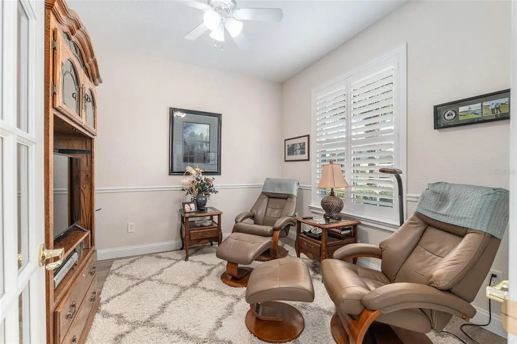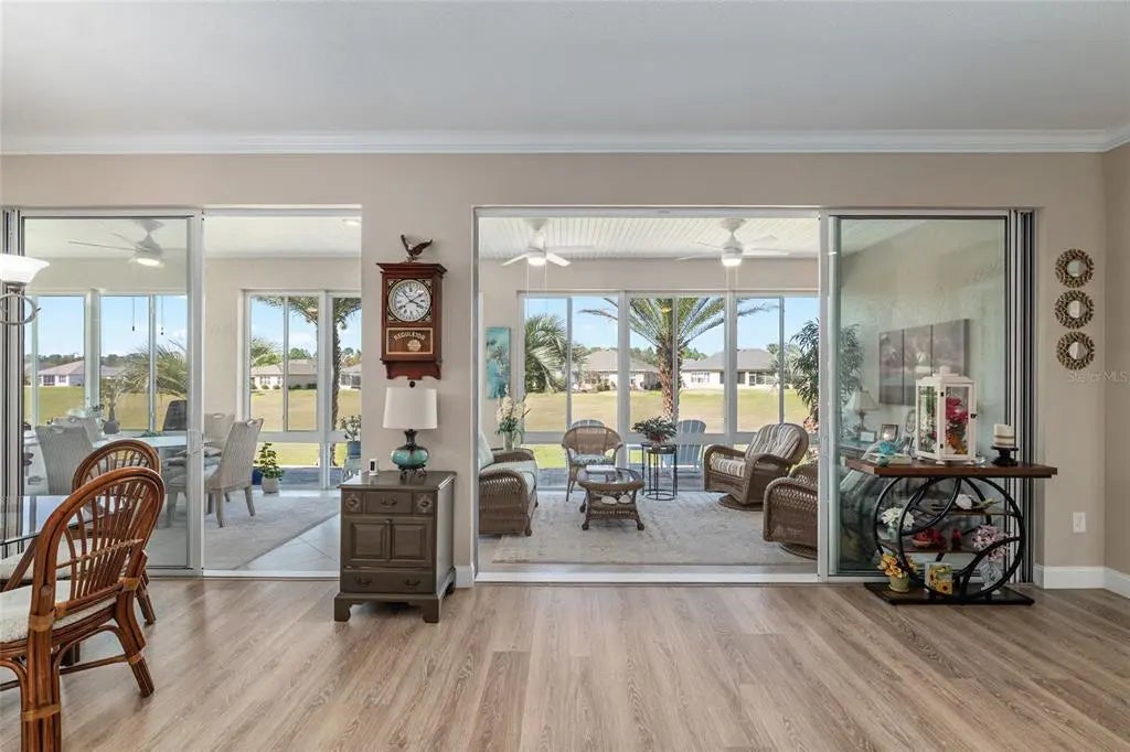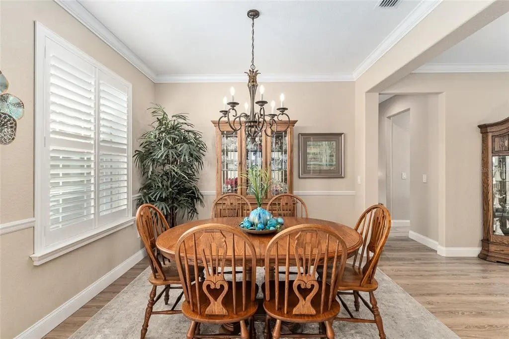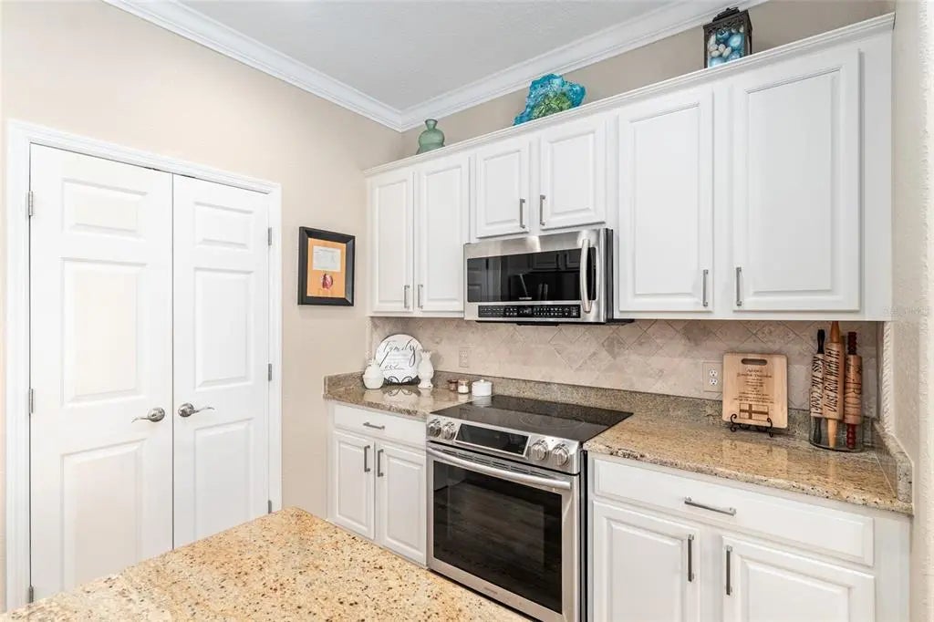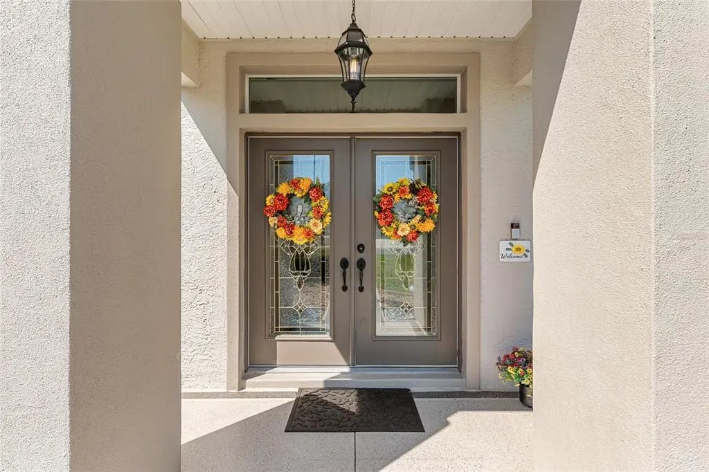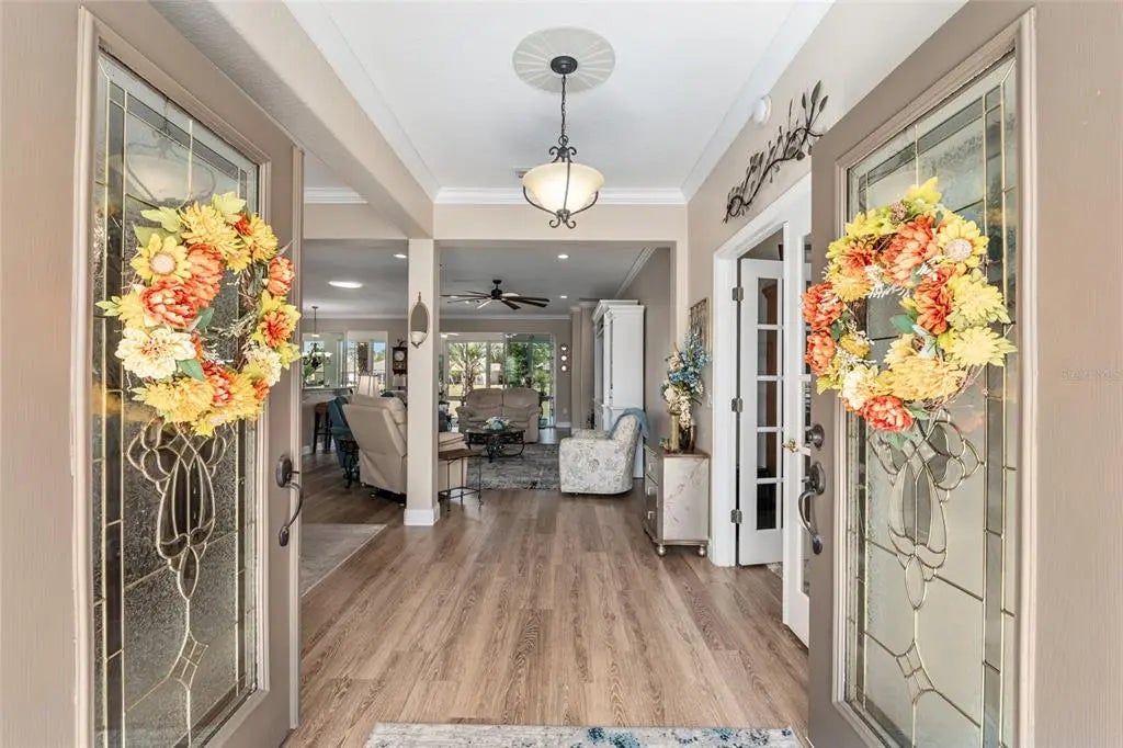 How about a 10-acre backyard that is maintenance free, you do not have to care for?? This beautifully upgraded Johnstown model features a custom-coated driveway and walkway leading to an elegant double-door foyer with decorative cut glass inserts. Inside, you’ll find a private library with French doors, crown molding, and thoughtful finishes throughout. The climate-controlled, north-facing tiled lanai is enclosed with full-length thermal pane glass windows, creating a perfect year-round retreat. Natural light fills the home through two solar tubes, enhancing the bright and airy feel. The kitchen is equipped with granite countertops, white cabinetry, and stainless steel appliances. The primary suite boasts a luxurious custom walk-in Roman shower and upgraded double vanities with quartz countertops. Additional upgrades include new ceiling fans, a remodeled guest bath with a granite countertop, and NEW durable vinyl plank flooring throughout the home. The extended garage features an epoxy-coated floor and overhead storage racks for added convenience. Outdoor living shines with a beautiful paver patio accented by a palm tree island, easy-care stone landscaping, concrete curbing, and even a flagpole. Energy-efficient features such as a solar attic fan and whole-house water filtration system add even more value. ROOF – 2020 HVAC - 2016 AWARD-WINNING Del Webb Spruce Creek Golf & Country Club is a GATED, 3,250 home, +55 Community with over 70 clubs, 3 pools, 3 spas, a Clubhouse, a Fitness Center, Bocce Ball, Shuffleboard, 12 Pickle ball Courts, 7 Tennis Courts, Sand Volleyball, Water Volleyball, Lake Vista Gazebo, Pavilions, Walking Paths and so much more! Come see this beautiful community with a GORGEOUS Tree Canopy on the Boulevard and its Restaurant, Liberty Grille. Come, enjoy the four (4) 9-hole Golf Courses today and begin living your BEST LIFE! DON'T WAIT TO SEE THIS SHOW QUALITY HOME! This is a very special home…Don’t miss it!