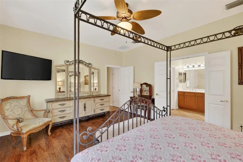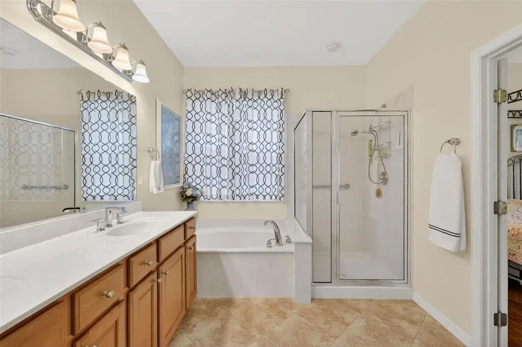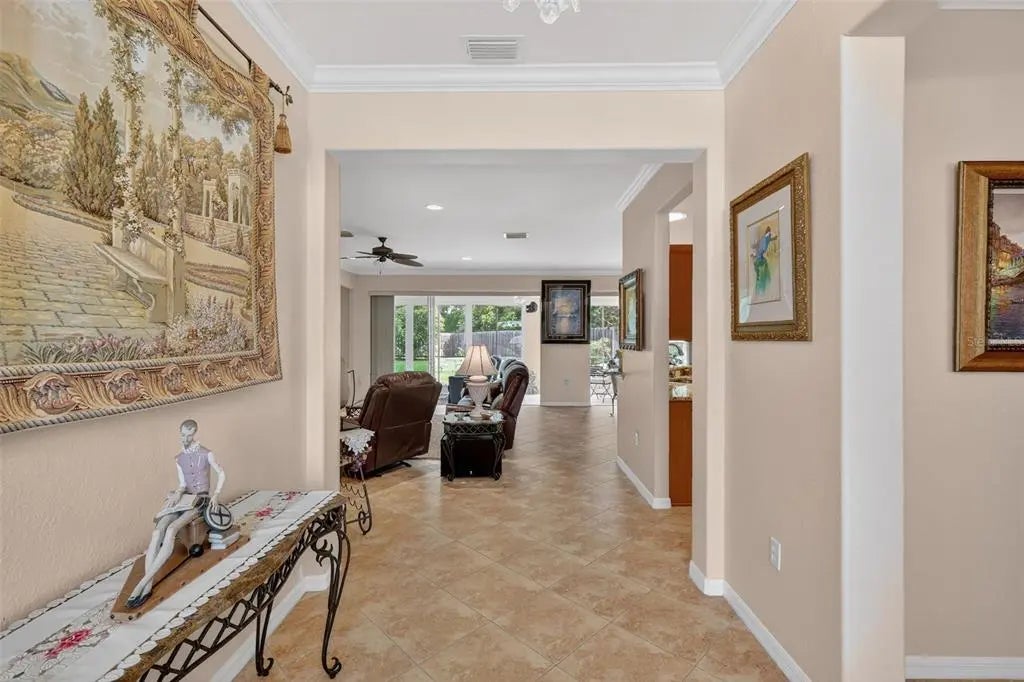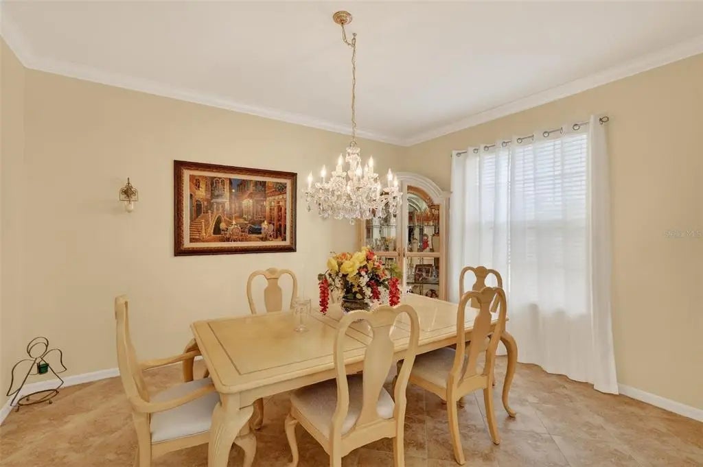 - Ceiling Fan(s), Crown Molding, Eating Space In Kitchen, In Wall Pest System, L Dining, Open Floorplan, Primary Bedroom Main Floor, Stone Counters, Window Treatments