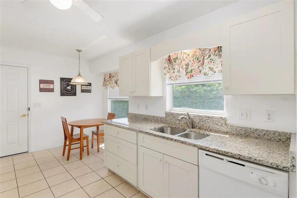 A seldom found LOW MAINTENANCE VILLA combines comfort, style and truly effortless living. With exterior upkeep, landscaping, weeding & irrigation system included in the monthly HOA fee, it's designed for those who value their time and want to enjoy a worry-free lifestyle. A great choice for a seasonal home away from home or a full time residence, this property is a stand-out choice. The interior features an open, inviting layout with a well-appointed eat-in kitchen including granite countertops & new cabinets and newer appiances. Great room/dining area is bright and opens to good sized enclosed climate controlled lanai... a perfect extra flex space for relaxation, office/den or workout area. Back yard is private. Home features 2 nice sized bedrooms, 2 bathrooms and an inside laundry room with washer/dryer. The roomy primary bedroom suite features walk-in closet and ensuite bath with a walk-in shower. Waterproof Luxury vinyl plank flooring throughout, and tile in kitchen & foyer..... No carpet in this home. HVAC 2023; Roof 2014 AWARD-WINNING Del Webb Spruce Creek Golf & Country Club is a GATED, 3,250 home, +55 Community with over 70 clubs, 3 pools, 3 spas, a Clubhouse, a Fitness Center, Bocce Ball, Shuffleboard, 12 Pickle ball Courts, 7 Tennis Courts, Sand Volleyball, Water Volleyball, Lake Vista Gazebo, Pavilions, Walking Paths and so much more! Come see this beautiful community with a GORGEOUS Tree Canopy on the Boulevard and the fabuous Liberty Grille Restaurant which offers a grreat menu and musical entertainment. Come, enjoy the four (4) 9-hole Golf Courses today and begin living your BEST LIFE!
