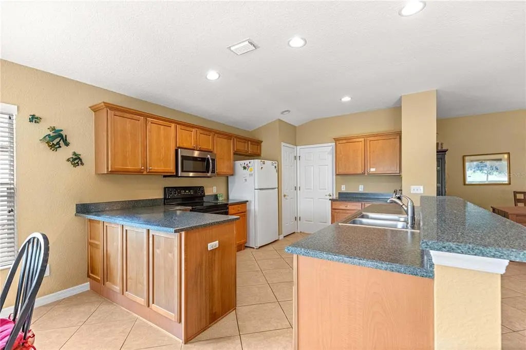 Welcome to this beautifully maintained Elkridge model home, perfectly positioned with stunning golf course views in the highly sought-after Del Webb Spruce Creek Golf & Country Club. Overlooking the tee boxes and green of a scenic par-3 on the Memorial Golf Course, this 3-bedroom, 2-bath residence offers both tranquility and an active lifestyle. Spanning 1,720 square feet, the home features large neutral ceramic tile throughout, creating a clean and cohesive feel. Recent upgrades provide peace of mind, including a 2023 A/C system and a 2020 roof. The home has been freshly painted inside and out, and the primary bathroom has been tastefully renovated with a modern shower and new glass enclosure. Also, has a shared well for irrigation that costs $60 yearly. Enjoy resort-style living with access to 36 holes of championship golf, a state-of-the-art fitness center, and a vibrant community center. Residents also enjoy an on-site restaurant, three pools (including one indoor), and a wide range of activities such as pickleball, tennis, softball, bocce ball, and shuffleboard—perfect for staying active and social year-round. With low HOA fees and an unbeatable combination of upgrades, views, and amenities, this home offers exceptional value in one of Central Florida’s premier 55+ communities. Don’t miss your opportunity to own a slice of golf course paradise—schedule your private showing today!