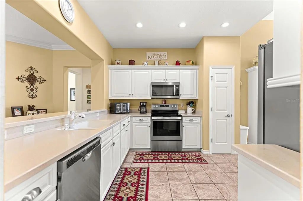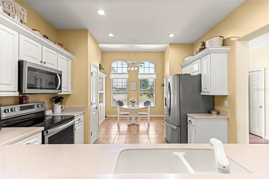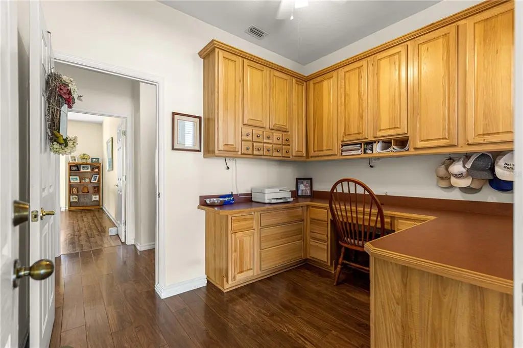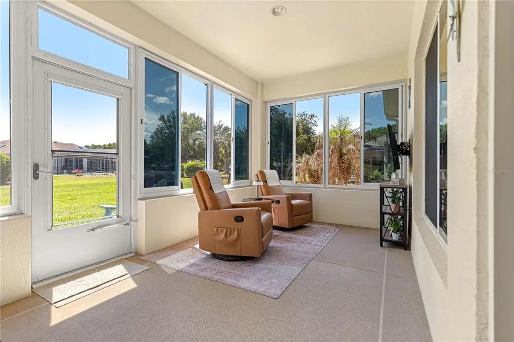NEW MEMORIES START HERE — Welcome to your next chapter in this vibrant Del Webb 55+ community, where lifestyle and comfort come together effortlessly. This move-in-ready home with 2123 Square Feet offers a spacious split floor plan with soaring 10-foot ceilings and the rare convenience of two primary suites—ideal for hosting family and friends. A versatile bonus room provides the perfect space for a den, home office, or additional living area. The home is filled with natural light, highlighted by beautiful windows in the breakfast nook, complete with a built-in china hutch that can easily be transformed into a stylish coffee bar. Crown molding enhances the living and dining areas, adding a touch of elegance throughout. Step into the enclosed lanai, featuring new acrylic windows (2025), creating a seamless indoor-outdoor living experience—perfect for relaxing or entertaining year-round. Additional upgrades and features include: Extended garage with remote-controlled screen Roof (2019) HVAC (April 2024) Brand New High, Double Sink, Primary Bath Vanity and faucets Tankless water heater Water softener Designer driveway Freshly painted exterior Enjoy the unbeatable location—just a short walk to the Fitness Center, Nature Trail, and Softball Field—and take full advantage of the incredible amenities Del Webb has to offer. From championship golf and resort-style pools to pickleball, tennis, fitness classes, and nearly 100 clubs and activities, there’s truly something for everyone. From the moment you walk in, this home brings a smile. The abundance of natural light, open French doors to the lanai, and high ceilings create a bright, airy feel that makes the home truly special. The spacious yard even offers room to add a pool if desired. Combined with its prime location and the warm, welcoming community, this home delivers the perfect Florida lifestyle.