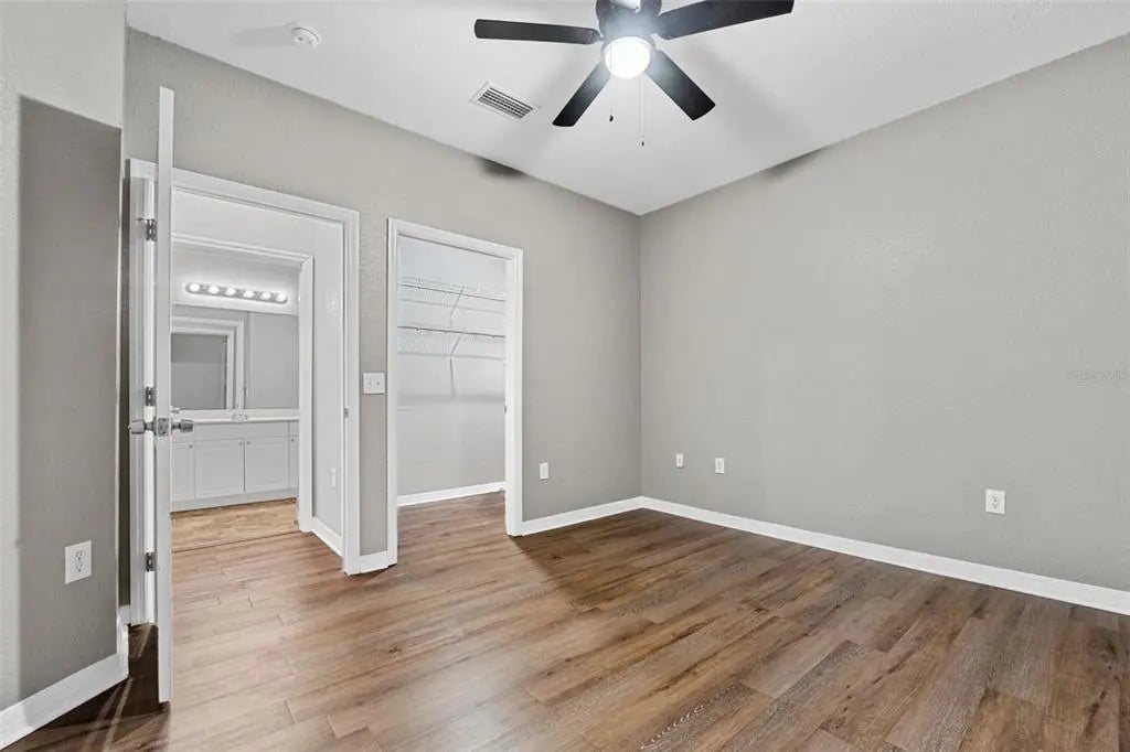 - Ceiling Fan(s), Open Floorplan, Primary Bedroom Main Floor, Solid Surface Counters, Thermostat, Walk-In Closet(s)