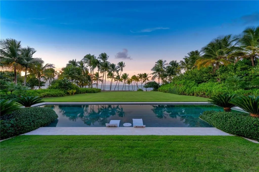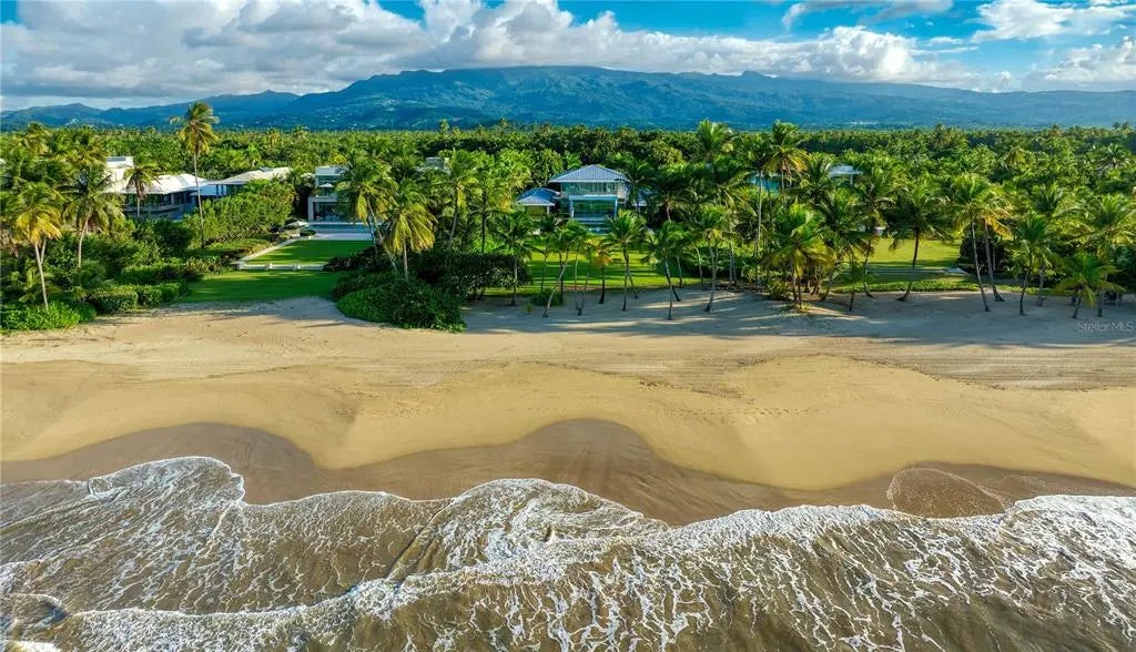 One or more photo(s) has been virtually staged. ***UNDER CONTRACT*** Set amidst lush tropical vegetation on just under 2 acres of mature landscaped terrain by the ocean. Within the prestigious Four Seasons Resort and Residences Puerto Rico in Rio Grande, an extraordinary retreat with state of the art security features. Experience the allure of a truly unique resort lifestyle within one of the most expansive beachfront estates in Puerto Rico, where your feet are nestled in the sand, bringing the beauty of the outdoors in. 12 Las Estancias is the largest lot on this exclusive street. Enjoying a prime location at the end of a quiet cul-de-sac flanked by a serene, secluded beach on one side and the 17th hole of the highly acclaimed Trent Jones Jr.-designed golf course with the magnificent Audubon International Nature Reserve beyond. This awe-inspiring compound consists of a main residence and 4 casitas. The main residence promises unparalleled luxury with every amenity a discerning homeowner could desire. Encompassing throughout the entire compound 11,000 interior Sq. Ft., 9 bedrooms, 10 full baths and 3 powder rooms, this oasis is shielded from view by lush landscaping; including a graceful archway of Hong Kong orchids. The estate was built by the owner to provide the best privacy and luxurious living a lifestyle can offer. The additional 4 properties include a wellness casita, and 3 well appointed casitas that provide for the utmost comfort and convenience for guests. Upon entry, you are greeted by a winding driveway framed by blooming flora and manicured landscaping revealing the main residence's grand double-height atrium with water features, leading to a great room bathed in natural light. The main residence's beautifully appointed primary suite encompasses the entirety of the second floor for the utmost privacy, showcasing breathtaking vistas from its expansive terrace overlooking the impressive 65-foot swimming pool and Atlantic Ocean. The suite is equipped with dual bathrooms, custom-built walk-in closets and private sitting room. Additionally, the main residence boasts two independent en-suite bedrooms on the first floor, along with an office, library and a media room. Outside, immerse yourself in the remarkable scenery from large terraces seamlessly connecting the interior spaces to the outdoor paradise. The expansive lawn stretches effortlessly towards a pristine two-mile beach haven, evoking the feeling of your own secluded oasis. The alfresco space is perfect for hosting and large scale entertaining. The compound's 3 guest casitas, each with two en-suite bedrooms, living room, and kitchen, ensure all needs are catered to. The wellness casita was designed for serenity and rejuvenation in mind. Featuring a fitness center with ballet barre, sauna, massage room, bathroom, and a steam shower. Ready to move in, welcome to your dream retreat within the Four Seasons Resort and Residences Puerto Rico, a Five-Star, Five Diamond Resort and only Certified Gold Audubon Signature Sanctuary in the entire Caribbean. Access to tennis and pickleball courts, beach club with oceanfront pool, two miles of picturesque beaches, 70 acres of lakes and an 18-hole golf course designed by Trent Jones Jr. is enjoyed by residents. Near the Yunque National Rainforest, one of the island's most celebrated natural wonders. Photos 6 through 10, and 13 through 19 are virtually staged and do not reflect the current state of the property.