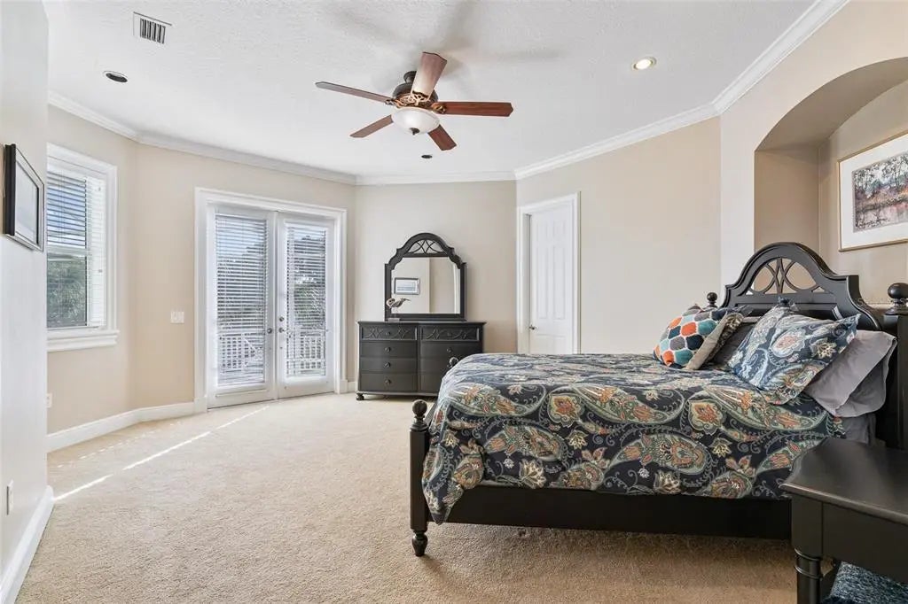 - Ceiling Fan(s), Central Vacuum, Coffered Ceiling(s), Crown Molding, Eating Space In Kitchen, High Ceilings, Kitchen/Family Room Combo, Open Floorplan, Primary Bedroom Main Floor, Split Bedroom, Stone Counters, Thermostat, Tray Ceiling(s), Walk-In Closet(s)