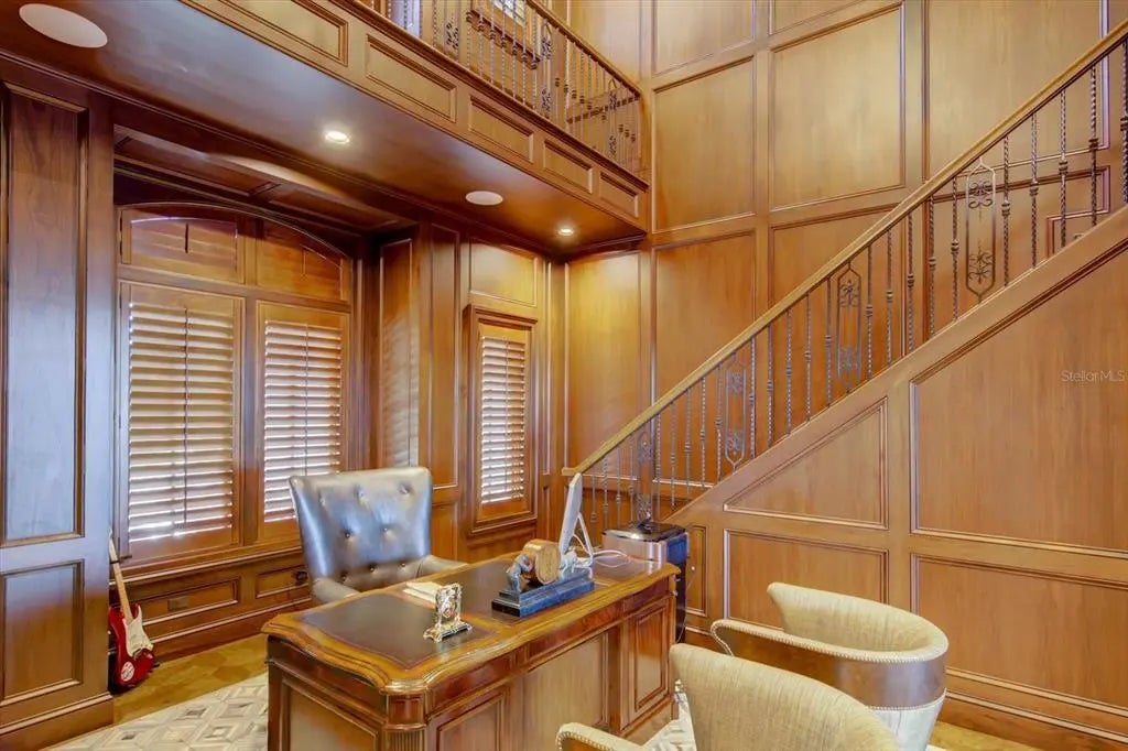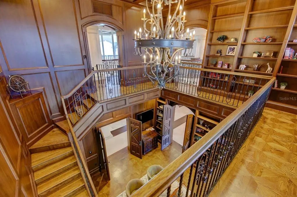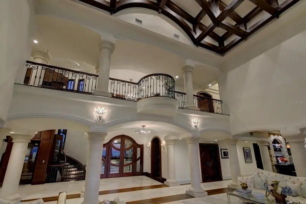 - Cathedral Ceiling(s), Ceiling Fan(s), Central Vacuum, Coffered Ceiling(s), Crown Molding, Elevator, High Ceilings, Kitchen/Family Room Combo, Living Room/Dining Room Combo, Open Floorplan, PrimaryBedroom Upstairs, Smart Home, Solid Wood Cabinets, Stone Counters, Walk-In Closet(s), Window Treatments
