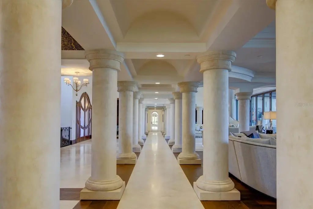 Welcome to Sandcastle on the Gulf! This one-of-a-kind Beachfront Estate embodies unparalleled luxury and resort-style living. This Mediterranean-inspired architectural masterpiece spans three lots and was built to the highest quality and design. This irreplaceable home showcases breathtaking Gulf views with 200 feet of private beachfront in the exclusive Town of Belleair Shores. Outdoors, enjoy a spectacular resort-style pool with a lazy river and a fully equipped grill area featuring refrigeration and ice - ideal for entertaining. Inside, discover a bowling alley, adding a unique experience. A temperature-controlled wine room and bar area complete with an ice maker, wine fridge, and kegerator elevate your hosting experience, while a cozy home theater offers the perfect space to unwind. The main kitchen and butler’s kitchen are outfitted with top-of-the-line appliances, designed for both functionality and style. For every day ease, the home includes four laundry rooms thoughtfully placed throughout. Wellness is redefined in the private gym, featuring a steam shower and sauna for complete relaxation. A separate 5,000+ square foot guest home with a private entrance provides comfort and privacy for your visiting friends and family. This is coastal living elevated to its highest form. With a price positioned more than $10 million below its estimated replacement cost, this offering is a rare opportunity to secure a legacy property and own a true Gulf-front Masterpiece at a compelling value.
