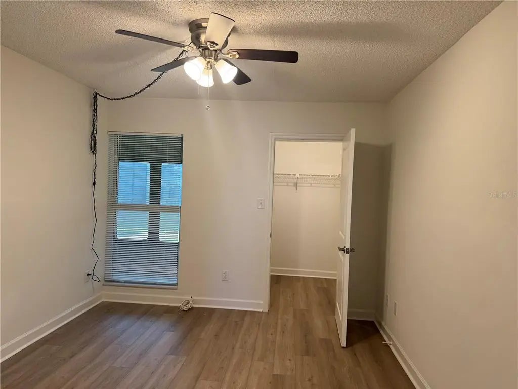 - Attic Fan, Living Room/Dining Room Combo, Thermostat, Walk-In Closet(s), Window Treatments