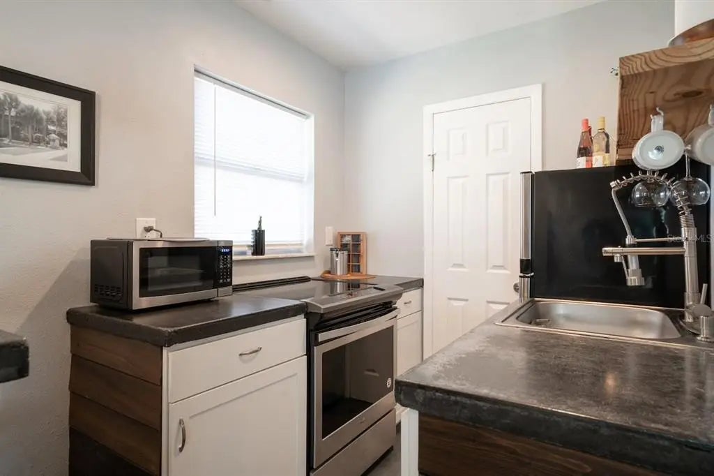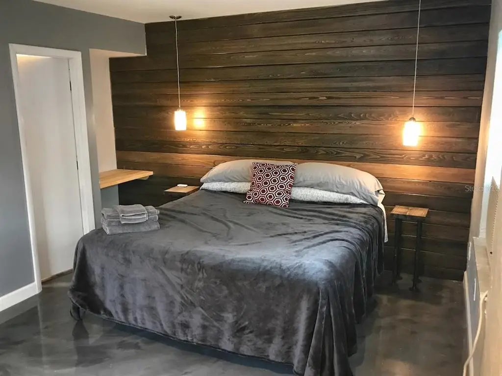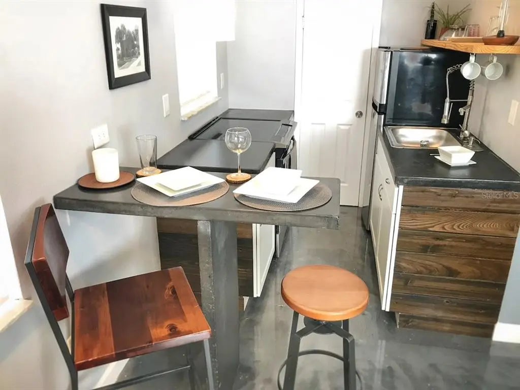 Rare Gem: Studio Style - Modern Living at its Finest! Don't miss out on this rare opportunity to call this studio your home sweet home. Thoughtfully designed to maximize every inch of its 505 SF, this residence boasts a blend of modern aesthetics and functional living spaces. Efficient Design, Stylish Finishes! Step inside to discover an open-concept layout featuring a spacious kitchen and living room area. The sleek polished concrete flooring sets the stage for contemporary living, while the gourmet-style kitchen dazzles with stainless steel appliances, cabinetry, and built-in shelves and hooks. Indulge in relaxation in the hall bath, complete with a tub-shower combination. Every detail, from the lighting fixtures to the cabinetry, exudes quality craftsmanship and modern sophistication. Unit is unfurnished so bring your furniture & supplies to give it your personal touch. Conveniently situated just off 9th St S, this duplex offers easy access to Tropicana Field and Downtown St. Pete. Enjoy the vibrant energy of city living while still having the tranquility of a residential neighborhood.