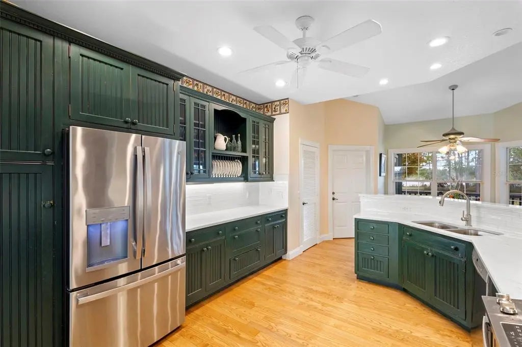 - Cathedral Ceiling(s), Ceiling Fan(s), Eating Space In Kitchen, High Ceilings, Kitchen/Family Room Combo, Primary Bedroom Main Floor, Stone Counters, Walk-In Closet(s)