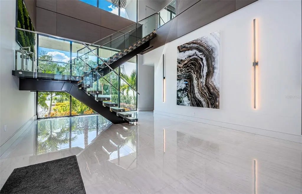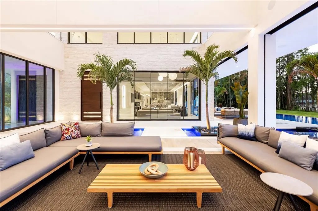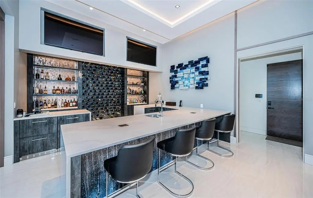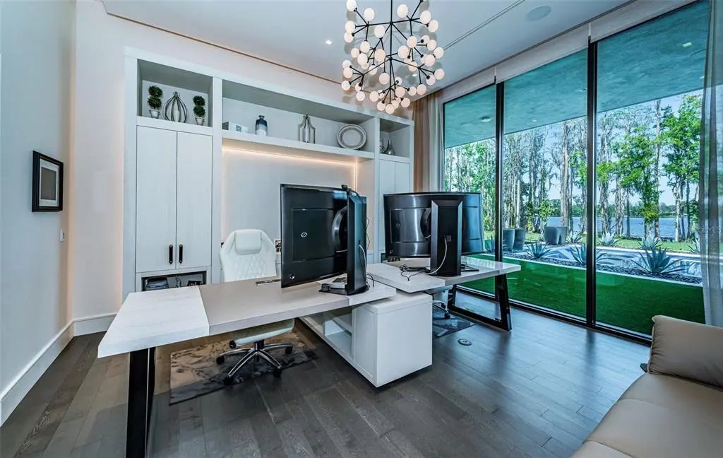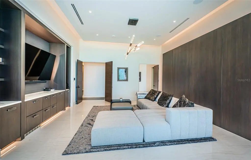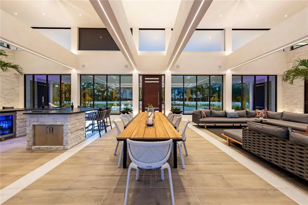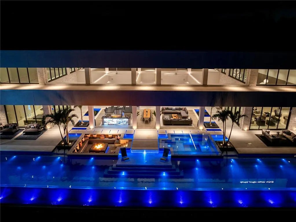 Welcome to a truly one-of-a-kind, ultra-luxurious estate that embodies the pinnacle of modern design and sustainable living. This newly built (2024), resort-style masterpiece by renowned architect Phil Kean showcases unparalleled craftsmanship and meticulous attention to detail, with no expense spared in every aspect of the home. This architectural sanctuary is set on a breathtaking nearly 5-acre lakefront homesite with expansive views of the private Island Ford Lake. The show-stopping multi-million dollar infinity pool, designed by Ryan Hughes and featured on the cover of Luxury Pool & Outdoor Living Magazine, is just the beginning. With a tennis court, pickleball court, and dock equipped with boat and jet ski lifts, this estate offers a true waterfront lifestyle. The covered lanai is nearly 4200 SF alone and features an automatic remote screen and full outdoor pool bath. Inside, you’ll discover an impressive movie theater, with a state-of-the-art sound system, captivating audio-visual, and lighting features throughout the home. The main residence boasts expansive living areas, 5 bedrooms, 7 bathrooms, and over 13,000 SF of living space, with a total of nearly 23,000 SF. The estate's total includes 6 bedrooms, 10 bathrooms, and features a total of 6-car garage bays with high ceilings, allowing for car lifts. Guests will enjoy a luxurious ADA-accessible 1-bedroom, 1.5-bath guest house, while the charming lake house cabin includes a full kitchen, bath, and screened porch for relaxing after a day on the water. For wellness and relaxation, the estate offers a state-of-the-art sauna room, a tranquil massage room, and a fully equipped fitness center, ensuring every need for rejuvenation and physical well-being is met. This home is enhanced with world-renowned Alex Turco art, which wraps the inside and outside bar as well as the pool water feature. The estate is fully enclosed by a stone wall for ultimate privacy and security, with gate access featuring facial recognition at the main entry and a separate service entrance. With too many features to list, this sanctuary offers the tranquility of lakeside living, just moments away from the vibrant Tampa Bay area.