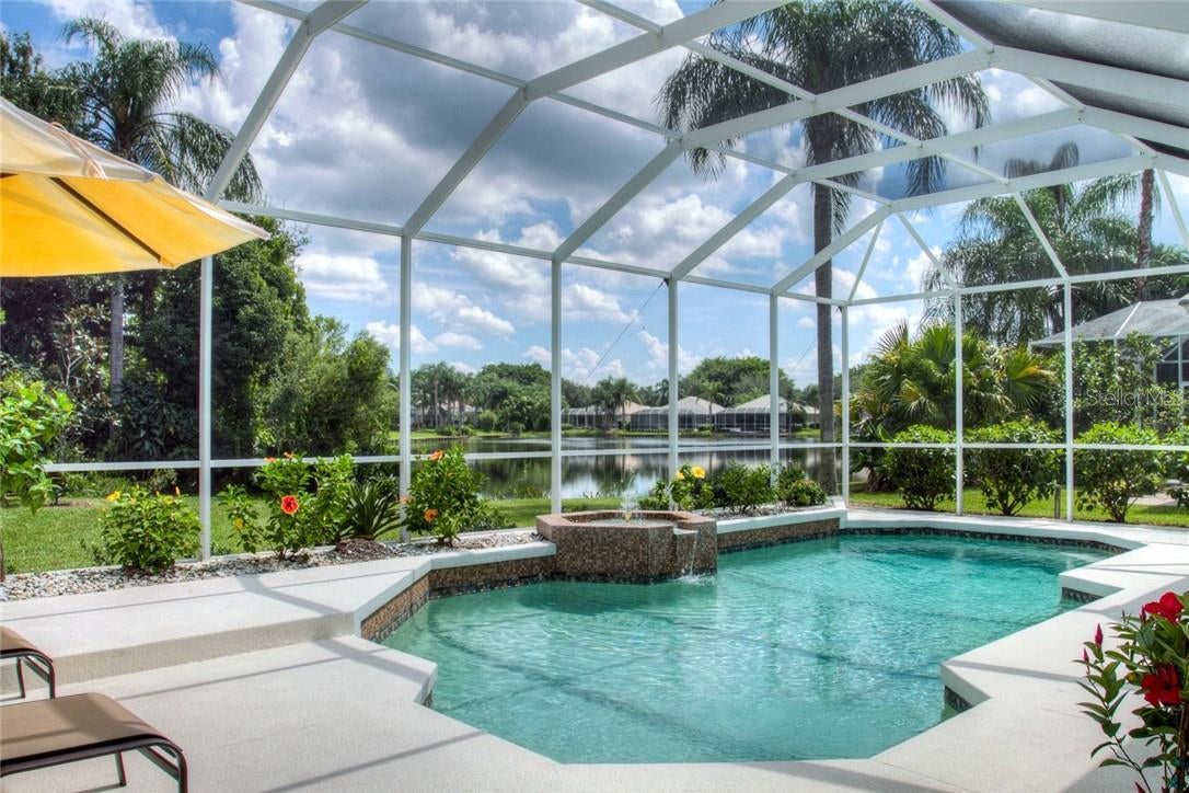 UNIVERSITY PARK COUNTRY CLUB in SARASOTA. Welcome to this sunny well maintained turnkey FURNISHED POOL HOME Enjoy the Florida lifestyle in the beautiful heated PRIVATE POOL and lanai with peaceful views of the lake. This well appointed home has been professionally decorated and offers all of the comforts desired for a relaxing stay. University Park Country Club Gated Community with available for golfers PUBLIC GREEN TIME. Granite in kitchen, closet pantry, large breakfast nook with window seat and gas range. TVs in living and master bedroom, surround sound with speakers throughout living area. Formal dining room, high ceilings, light and bright. King in master, queen in second bedroom and pull out sofa bed in office/den. Master Bathroom has a Soaking Garden Bath tub & walk in shower. Master Suite has a large walk in closet. Heated pool in a screened lanai READY FOR YOU TO ENJOY THE BEAUTIFUL FLORIDA weather. Sorry NO PETS.