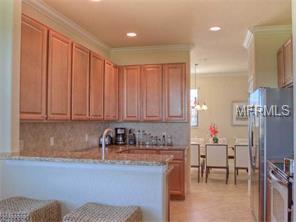 Sleek contemporary style 2nd floor coach home with tile through out living areas and carpet in bedrooms. Third bedroom is made into a nice media room for watching movies. Wonderful water and preserve views with golf course in the distance. Location of this unit is walking distance to the tennis courts and Main Club house with wonderful amenities that River Strand offers to tenants to use. This unit does come with a golf membership with a transfer fee.