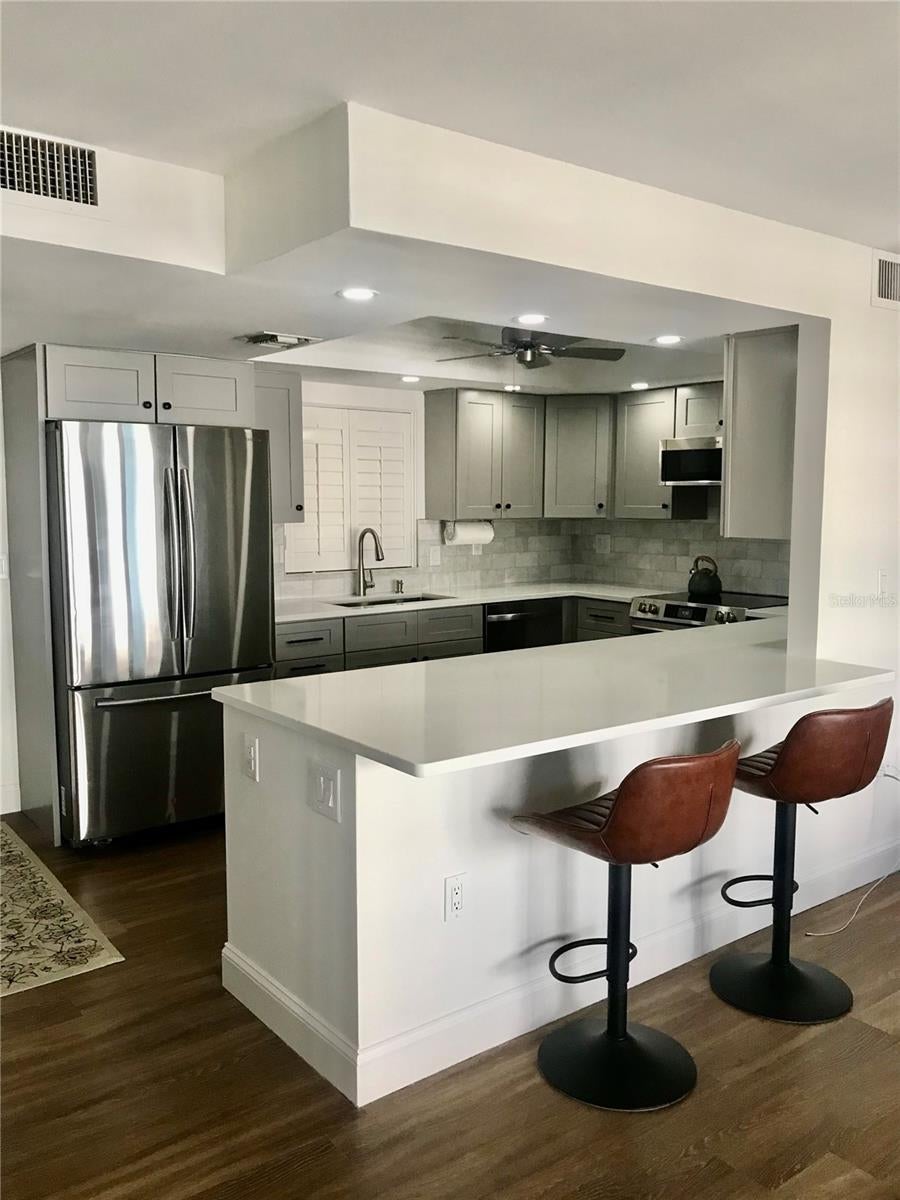 Beautiful beach condo located on Lido Key at the Lido Ambassador. This turnkey furnished condo has one bedroom and one and a half bathrooms. BRAND NEW KITCHEN AND PRIMARY BATHROOM PLUS NEW PAINT THROUGHOUT. Wood floors and tile throughout the condo. The kitchen has stainless appliances, quartz countertops and an open counter to living room/dining room with stools for eating and entertaining. Bedroom has a king sized bed, large walk in closet and an en suite bathroom with large tiled walk in shower, new cabinetry and flooring. Half bathroom has a granite counter top. The comfortable lanai looks directly out to the Gulf of Mexico for breathtaking sunset views. The community offers private access to Lido Beach. No pets and no smoking allowed. LIDO BEACH, CLOSE TO ST. ARMNAD'S CIRCLE, BEAUTIFUL SUNSETS, BEACH LIVING AT IT'S FINEST!!!