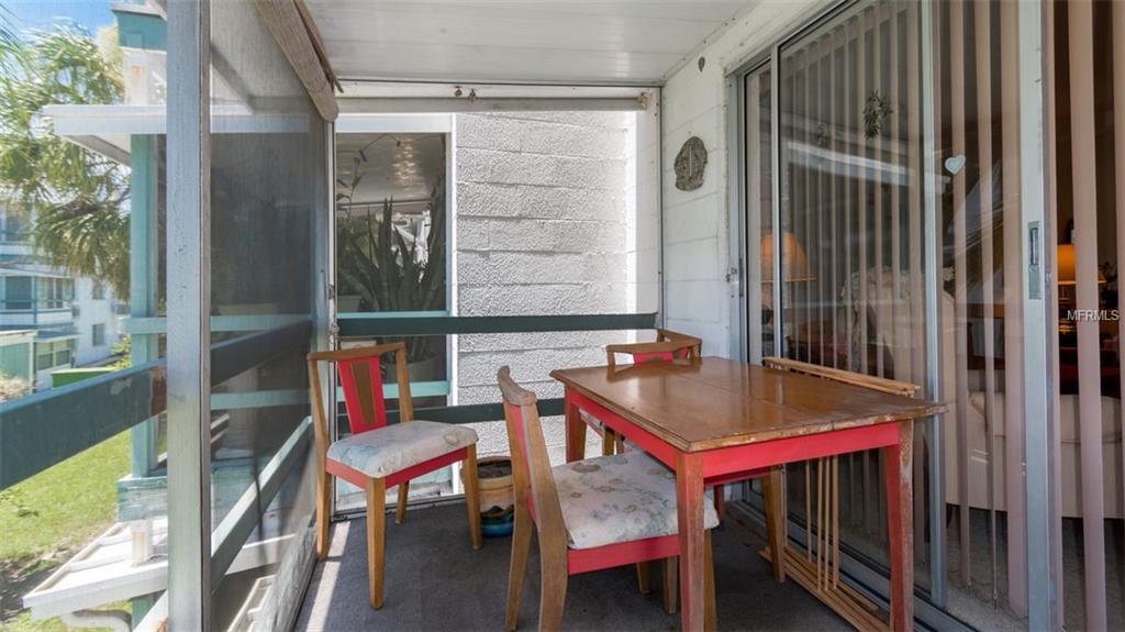Your condo is situated on the second floor in the 55 plus community of Bayshore Gardens. Walking into your condo you are immediately invited into an open floor concept featuring the dining space and living area. To the right of the front door is your kitchen fully stocked with all amenities you could need while on vacation. Enjoy seating at the breakfast nook in the morning with a nice cup of coffee. Walking back out of the kitchen you have your dining area that comfortably seats 4. The living room area is warm and cozy and boasts plenty of Florida sunshine. With plenty of seating and a large flat screen TV this is the ultimate place to kick back and relax. Through the sliding glass doors is a lanai and seating, a perfect spot to unwind and enjoy the scenery after a long days’ worth of fun activities.