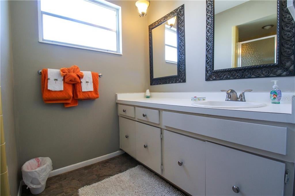 Unwind at this enchanting 2 Bedroom, 2 Bath home located in the very popular subdivision of Casa Del Sol, centrally situated in the heart of Bradenton. In need of some outdoor entertainment? This property boasts a large fenced in the back yard for you and your loved ones to enjoy! When walking to the front door of this home, you will notice nothing but an abundance of space flourishing with lush grass and beautiful plants. The large driveway provides plenty of space for parking. Upon entering the home, you will find a lovely open floor plan with a large work desk to the right where you will find working remotely, is a breeze. To the left, you will find the spacious living room that has two large couches, as well as a lovely day chair for you to rest your feet on after a long day of adventure. The open floor plan is a key feature of this home as it allows each room to flow ornately with one another. The kitchen can be seen from either the formal dining room or the living room has the chef's touch! Utilizing the double-sized stainless-steel sink and the gorgeous wood butcher block makes prepping meals a breeze. Off the kitchen, you will find the formal dining room, which can seat four comfortably. The large wooden dining table offers the perfect space for your family to enjoy any meal! When exiting the dining room you are greeted by a hallway leading to the bedrooms. The guest bedroom boasts a queen-size bed, with beautiful coastal designs. A large dresser offers plenty of space for your belongings. Two large chairs sit underneath a large paned window, allowing natural light in all day long. Adjacent to the guest room, you will find the updated bathroom that has a shower and tub combo with a beautifully designed vanity and sinks. Right down the hall, you will find the opulent master bedroom that offers plenty of space for you to enjoy. The queen size bed carries the coastal design, keeping it a light and airy atmosphere. Including two large dressers and a bi-fold closet, you will find plenty of space for your possessions. Adjacent you will find the pristine master bathroom that has a large tiled walk-in shower. The outdoor space is impeccable. Enjoying the screened-in lanai, you will find yourself entangled with the large fenced in backyard with outdoor seating to accommodate four. This space will be the go-to spot for barbecues and family gatherings. It is the guest responsibility to clean and maintain the grill, as well as replenish propane as required. The washer and dryer are located in the garage and available for guest use. Furry friends are welcome, max 2 pets, Please When you’re ready to explore, head out to the nearby white sandy beaches of Lido Key or Longboat Key – the choice is yours. The world-famous St. Armand’s Circle offers endless boutique shopping and dining experiences, or you can enjoy an array of artistic events in Downtown Sarasota, such as the Sarasota Opera.